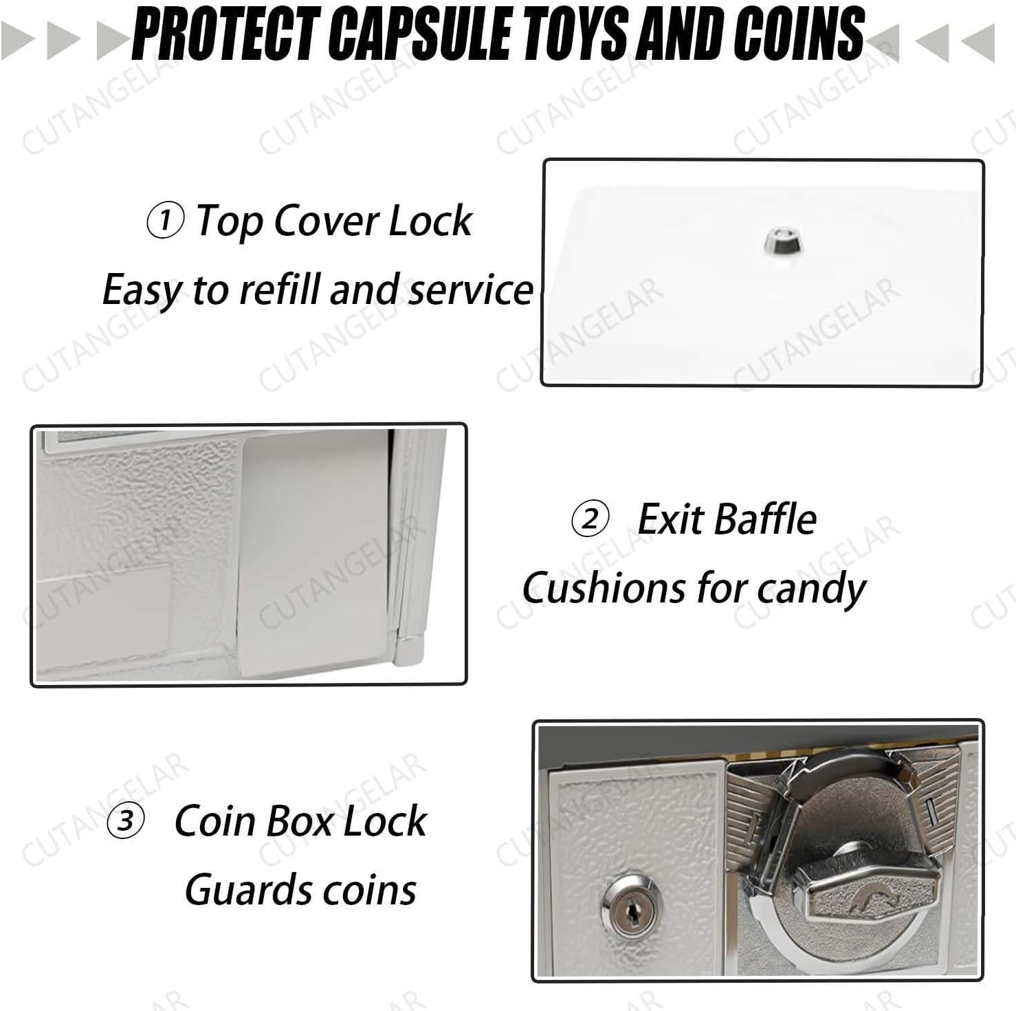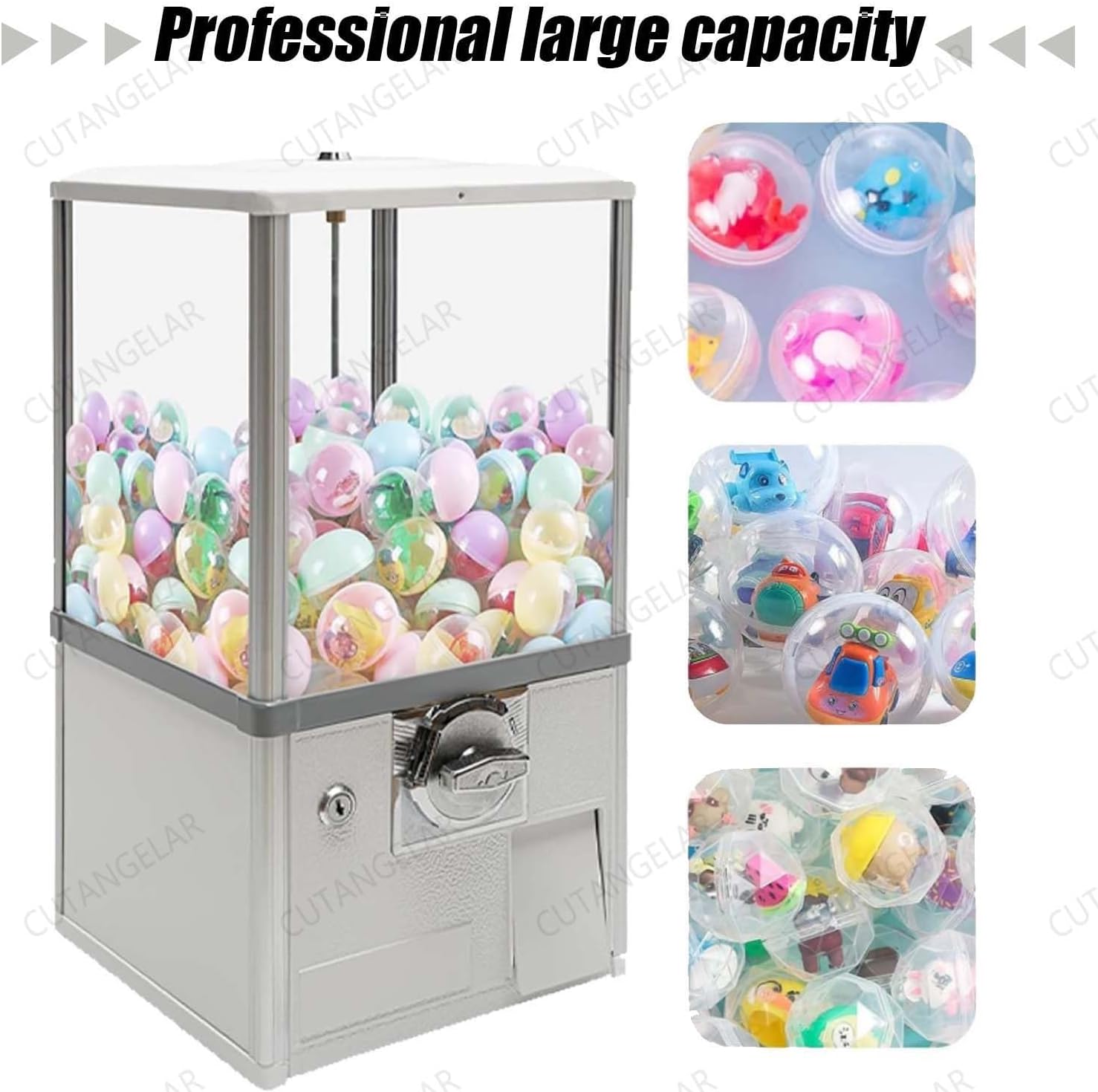 ⭐【Capacità ed Efficienza Professionale】: Questo distributore automatico commerciale ha una grande capacità di 26x29x53 cm, può ospitare 150 capsule standard da 4,8 cm o 200 capsule piccole da 4,3 cm ed è dotato di un salvadanaio che può contenere 800 monete. Progettato per luoghi ad alto traffico come centri commerciali e parchi divertimento. ⭐ 【Elevata sicurezza, robusto e durevole】: la macchina per capsule e caramelle, la gettoniera e la cassa principale adottano un sistema di chiusura a chiave per proteggere le entrate e le scorte. Il telaio rettangolare è realizzato in lega di zinco-alluminio rinforzata e materiale composito infrangibile ABS/Ps, supportando un carico di 7 kg. Il telaio ruota per visualizzare gli elementi. ⭐【Adattamento flessibile multi-valuta】: erogatore di monete, design internazionale con accettatore di monete personalizzabile (set per due monete da 25 centesimi). Accetta 1-4 pezzi (29-30 mm di diametro) provenienti da diversi paesi. Contattaci per regolare l'accettatore in base alla tua valuta, ideale per le zone turistiche. ⭐【Funzionamento meccanico a misura di bambino】: i mini distributori automatici funzionano senza elettricità o monitoraggio. Operazione in 3 passaggi (Inserimento parte → Ruota maniglia → Ricevi). Base Girevole a 360° Con Finestra Trasparente. Dispositivo Antiblocco e Anticaduta - Perfetto per i bambini. ⭐ 【Ampia gamma di usi, rendimento elevato】: distributore di caramelle portatile a distribuzione flessibile. Adatto a sale giochi, centri commerciali, negozi, ecc. È disponibile in sei colori vivaci (blu/rosso/giallo/verde/bianco/nero) che attira l'attenzione e aumenta le entrate.