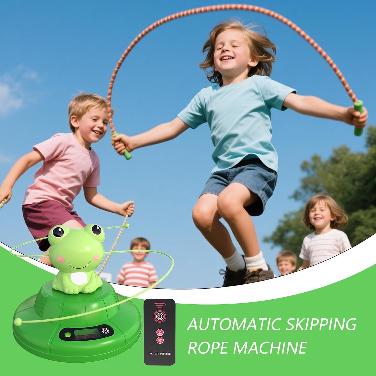 Flessibilità di velocità: regola tra 2 modalità di allenamento per soddisfare le tue esigenze di fitness, con simulazione ritmica realistica e funzionalità a doppia velocità. La macchina Smart Jump Rope aiuta a migliorare la durata cardio per un'esperienza di allenamento più intelligente Controllo remoto pratico: avviarsi senza sforzo, mettere in pausa o attivare le impostazioni da lontano con il telecomando a corda di salto intelligente, eliminando le interruzioni e massimizzando l'efficienza di allenamento HIIT senza piegarsi Allenamenti di gruppo sicuri: la macchina per corda di salto intelligente incoraggia gli allenamenti genitore-figlio e gli esercizi di gruppo, con una gamma di rotazione sicura per prevenire l'interruzione dei pericoli mentre promuove il familiare attivo Motion rotante continuo: la macchina per corda di salto intelligente presenta un motore stabile per una rotazione regolare e coerente, ideale per allenamenti a bruciore di grassi e addestramento alle prestazioni migliorando l'agilità e l'esplosività Servire per molto : progettata per la durata, questa macchina per la corda per saltare combina un motore tranquillo, una build resistente agli urti e cuscinetti di base non slip per gestire i corsi di formazione esterna senza sforzo. Corre con batterie 3xaa