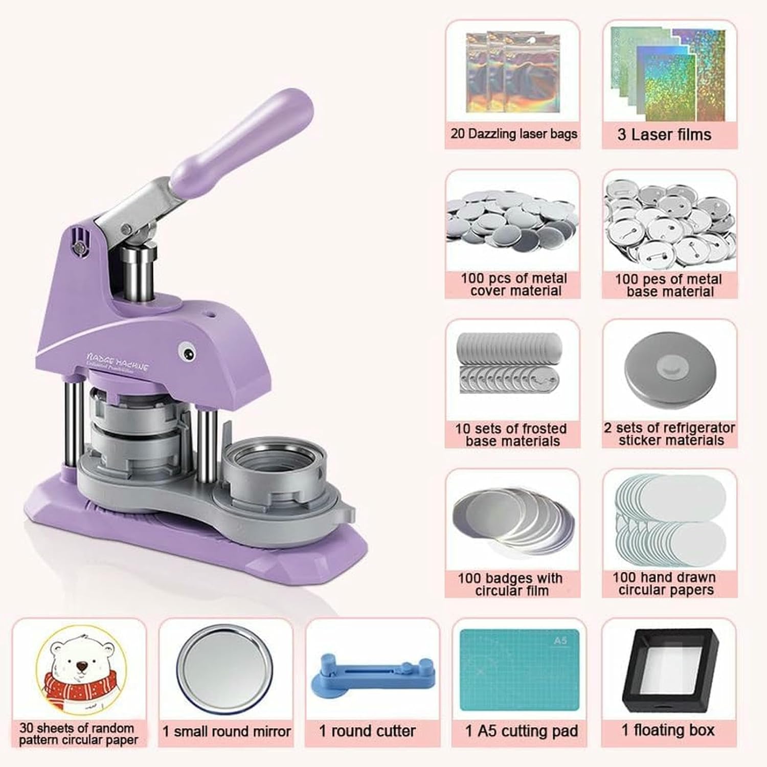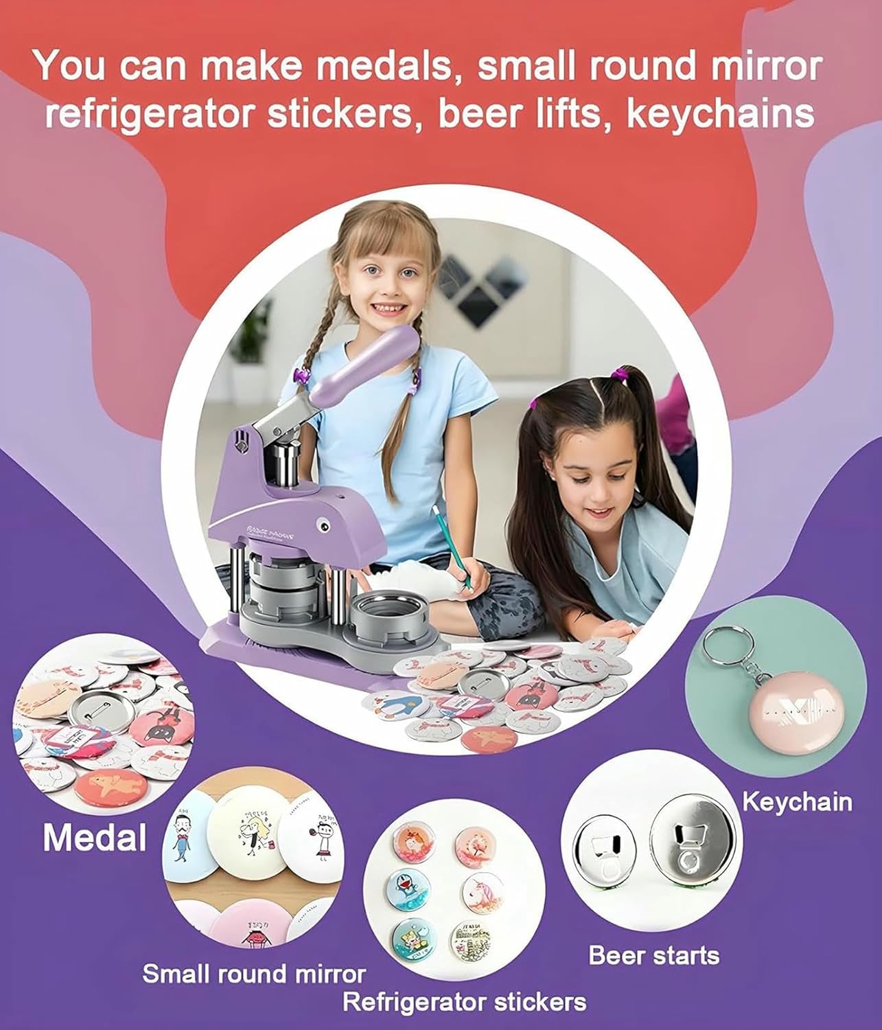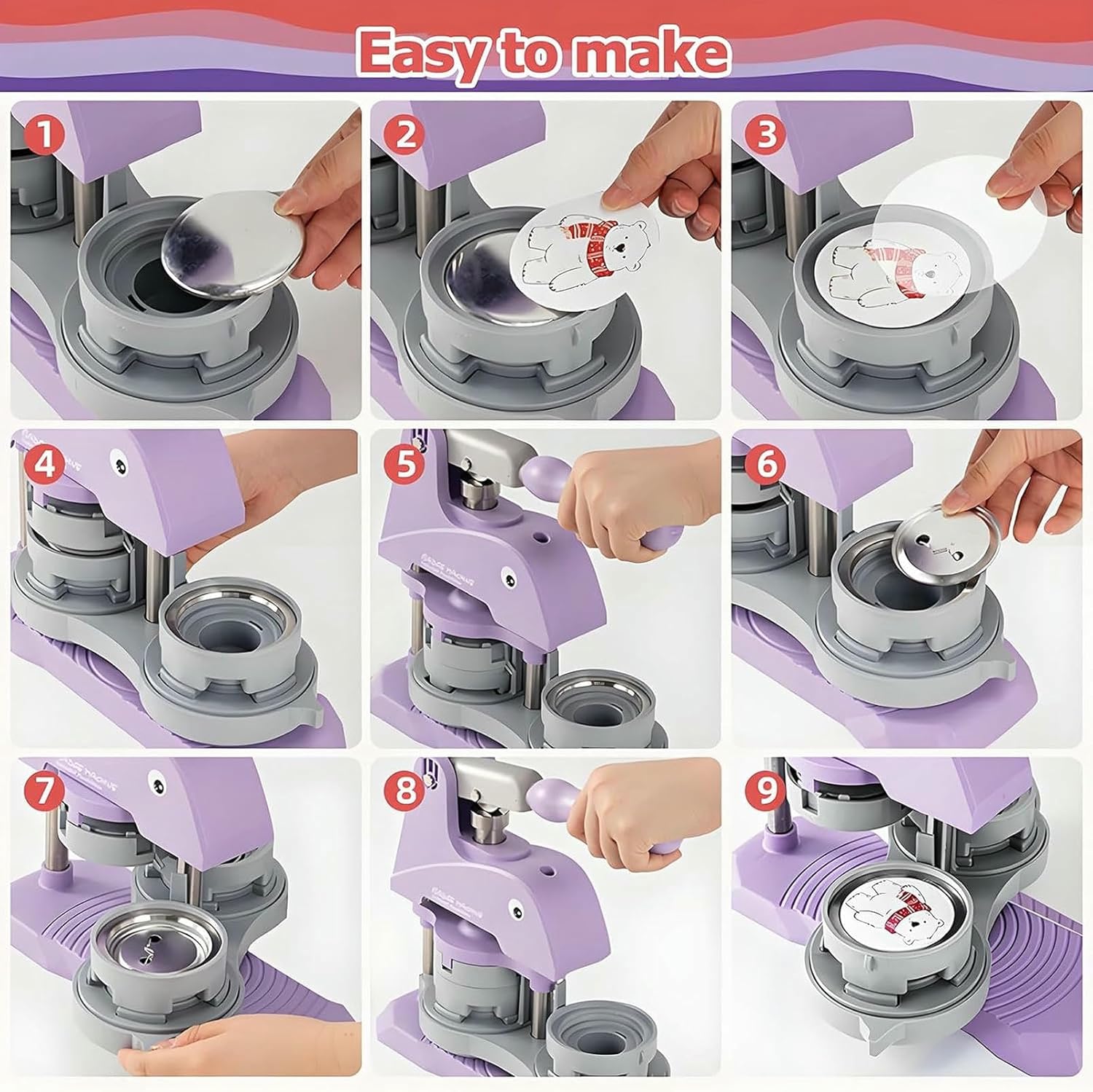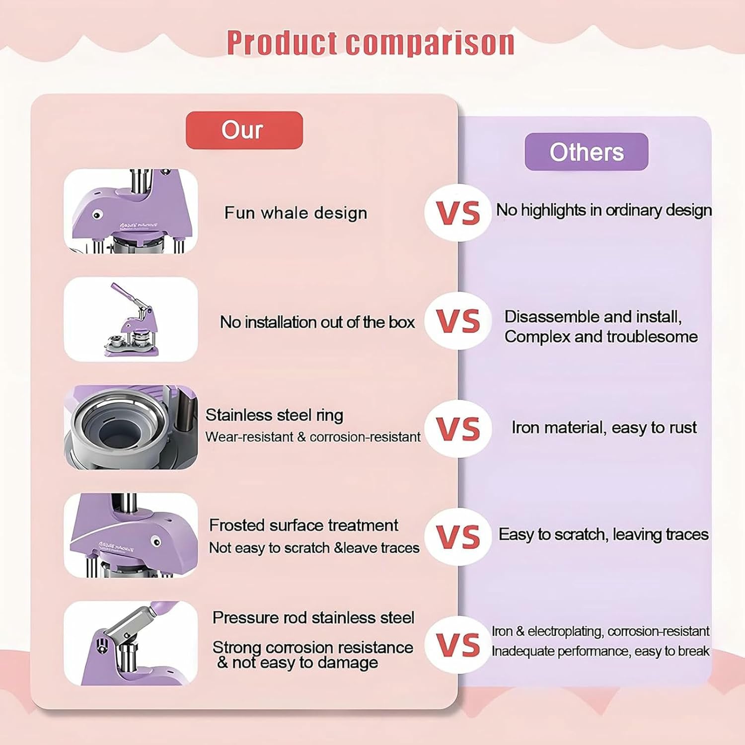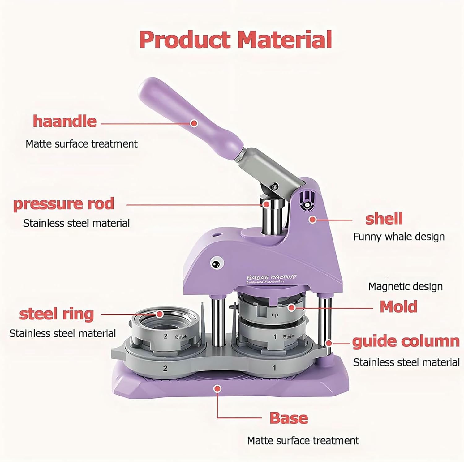 【Design unico】: La macchina per bottoni ha un nuovissimo look con un divertente design a forma di balena e una varietà di colori vivaci. È una gioia per gli occhi, perfetta per aggiungere un tocco di stravaganza al tuo lavoro. Indossa la macchina per spille per creare piccoli regali come spille, apribottiglie, ecc. 【Kit completo per la creazione di spille fai da te】: questo kit completo include tutto il necessario: 1 macchina per premere i pulsanti, 1 stampo da 58 mm, 20 sacchetti laser abbaglianti, 3 pellicole laser, 100 materiali di copertura in metallo, 100 materiali di base in metallo, 10 materiali di base smerigliati, 2 materiali adesivi per frigorifero, 100 badge con pellicola circolare, 100 carte circolari disegnate a mano, 1 piccolo specchio rotondo, 1 taglierina rotonda, 1 blocco da tagl 【Materiali di alta qualità】: la nostra pressa per badge a bottone, leggera e antiruggine, è realizzata in plastica tecnica ad alta resistenza per una maggiore portabilità e praticità. L'innovativo design a rotazione semplifica il processo di creazione dei badge, risparmiando tempo e fatica. 【Facile da usare】: Innanzitutto, tagliare l'immagine della dimensione corretta e facile da usare, facile da usare con una perforatrice circolare. In secondo luogo, posizionare la parte inferiore del badge e lo stampo superiore sulla macchina per bottoni. In terzo luogo, posizionare il coperchio metallico del badge nello stampo superiore e nell'immagine. In quarto luogo, posizionare i lucidi sull'immagine e premere il badge per creare la macchina. Infine, aggiungere un perno metallico a 【Regalo speciale】: Scatena la creatività di tutte le età! Questo produttore di spille fai da te permette a chiunque di creare spille personalizzate in diverse dimensioni. È il regalo perfetto per compleanni, feste o per divertirsi con amici e familiari. Immagina spille personalizzate per foto, decorazioni e persino regali sorprendenti: le possibilità sono infinite.
