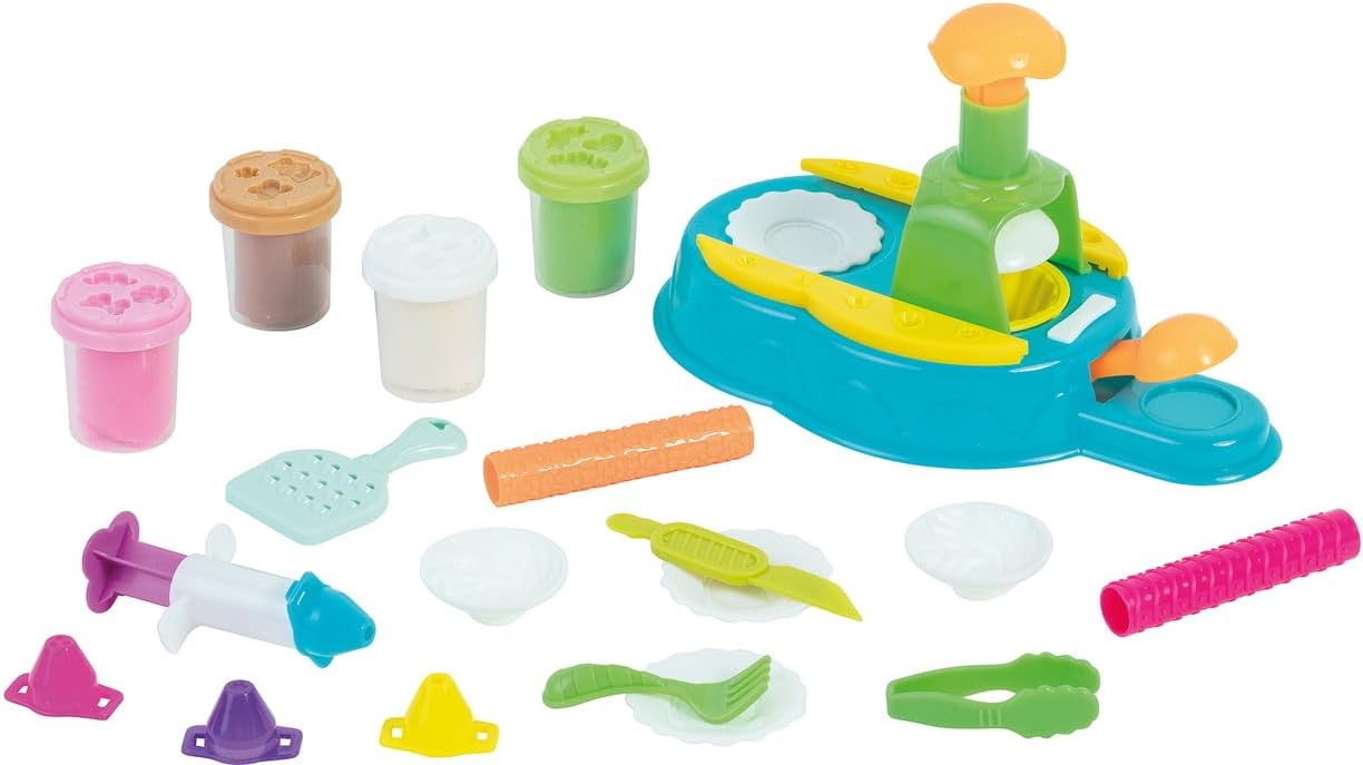 Macchina per cupcake con pasta modellabile: crea i tuoi cupcake con pasta modellabile! Include 1 macchina per cupcake, 4 vasetti di pasta da modellare in diversi colori (rosa, verde, bianco e arancione), utensili per creare tutti i tipi di forme. Dai 3 anni.