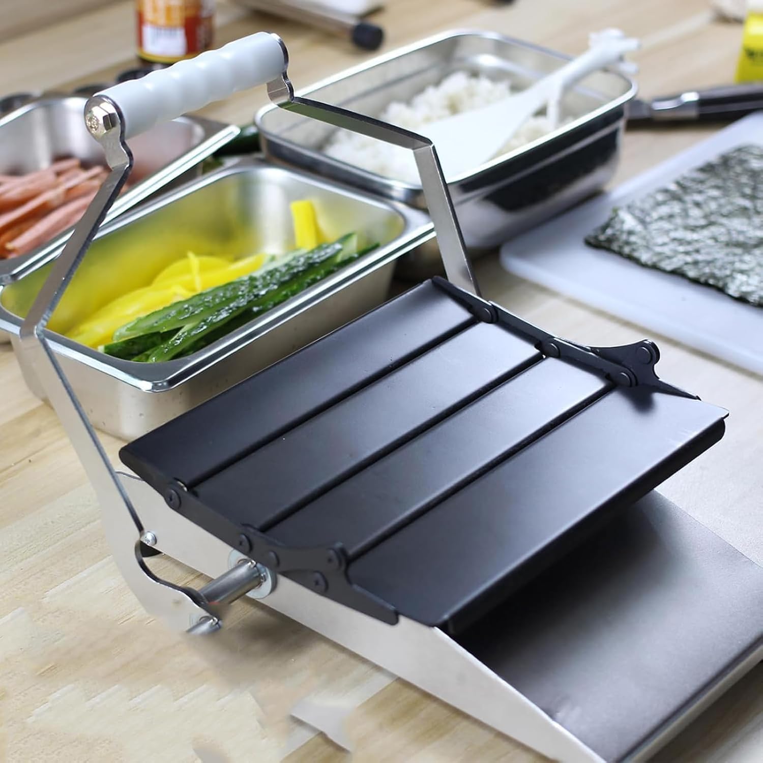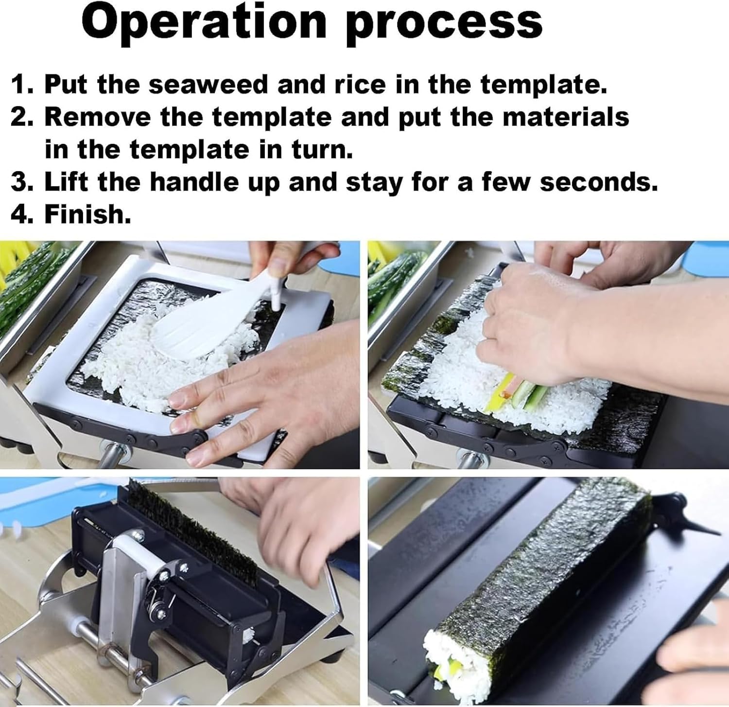 ➤Preparazione del sushi commerciale: modellatura facile con solo 1 pressione, alta efficienza. Semplice, non è richiesta alcuna formazione, anche i principianti possono operare. ➤Acciaio inossidabile: la macchina è realizzata in acciaio inossidabile per uso alimentare, resistente e facile da pulire. può essere utilizzato per molto tempo. ➤ Dimensioni adatte: le dimensioni di questa macchina per sushi manuale sono molto adatte per cucine familiari, ristoranti, hotel, ecc. ➤ Facile da usare: adatto a ristoranti giapponesi, caffetterie, buffet, ristoranti di sushi, ecc. ➤ Regali pratici: la macchina per sushi manuale è un regalo pratico e bello per la tua famiglia, amici o colleghi a cui piace preparare un delizioso sushi a casa.