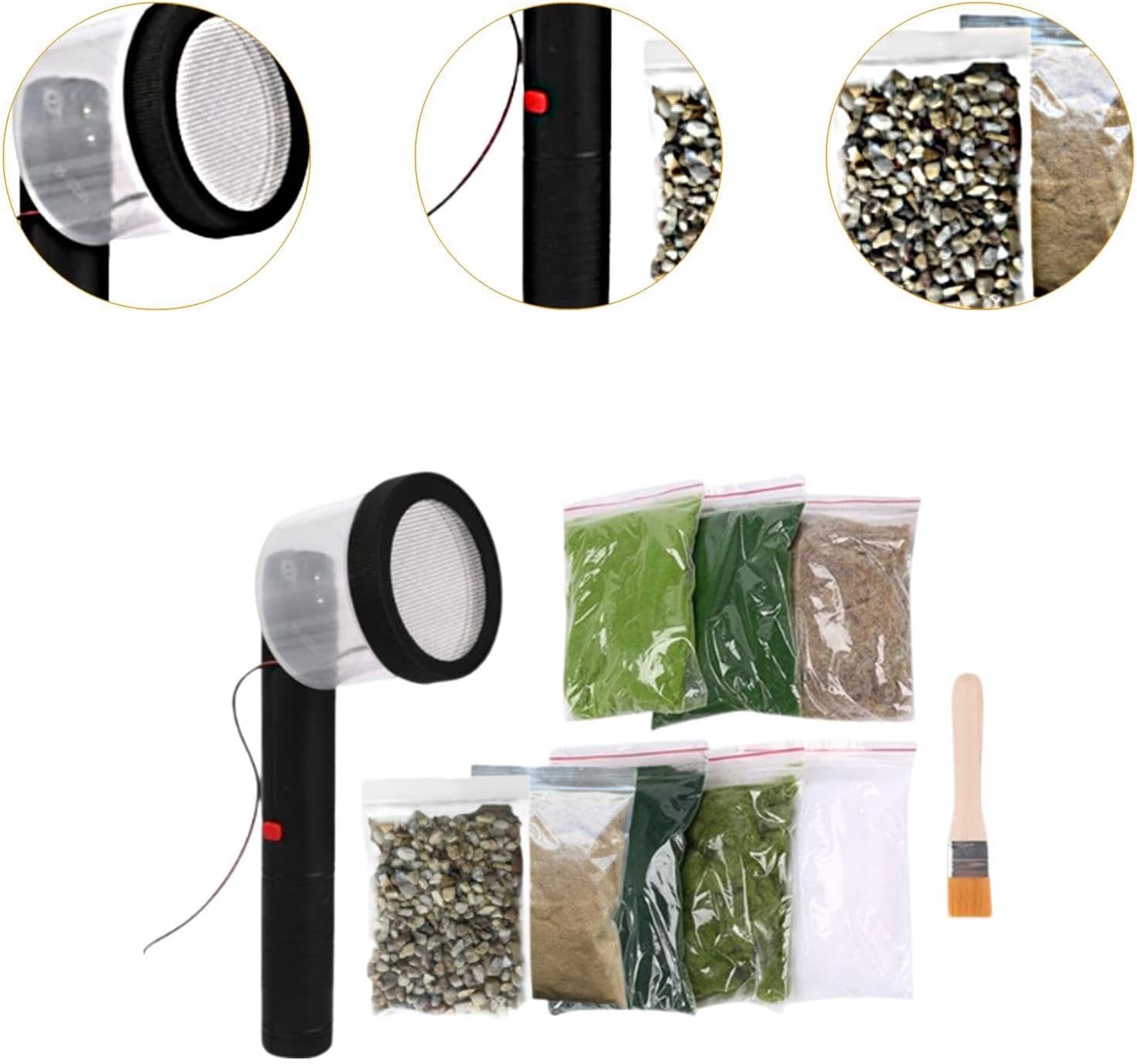 【Qualità】: Layout del tavolo di sabbia con materiale in pietra. Ottima macchina per realizzare floccaggio dell'erba 【Facile da usare】: Questo kit per floccaggio del modello di treno, incluso il nostro micro erba, fornisce tutto il necessario per creare il tuo layout di erba per argini 【】: La macchina per floccaggio dell'erba ha un'impugnatura antiscivolo e dimensioni moderate che la rendono più comoda da tenere, grande capacità di floccaggio 【Applicazione】: Macchina per floccaggio elettrostatica adatta per modelli di piantagione, modelli di costruzione di erba, modelli di paesaggio, modelli di costruzione, erba da tavolo di sabbia, varie scene fai da te 【Caratteristiche】: La macchina per floccaggio dell'erba statica renderà la scena del tuo modello più realistica e divertente da vedere