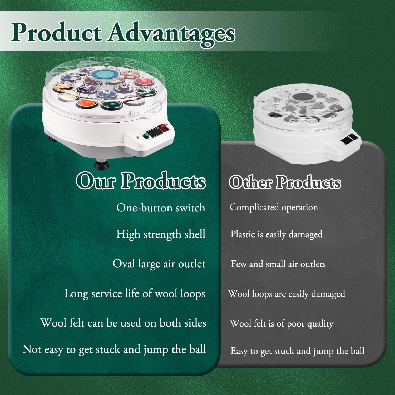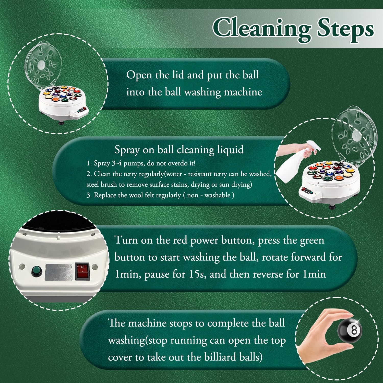 Macchina automatica per la pulizia delle palle da biliardo: la nostra macchina automatica per la pulizia delle palle da biliardo ha 16 porte per palle americane indipendenti e il suo anello in lana di alta qualità può pulire e lucidare rapidamente le palle da biliardo. Che si tratti di manutenzione quotidiana o di uso ad alta frequenza, può fornirti le migliori condizioni delle palle da biliardo. Pulitore per palle da biliardo a conchiglia: interruttore one-touch, indicatore luminoso rosso chiaro, pulsante verde e segnale acustico dopo aver terminato, consentono di pulire facilmente. Il fondo in feltro di lana double face è pratico e resistente e lascia completamente libere le mani. Macchina per la pulizia delle palle da biliardo elettrica: il nostro pulitore elettrico per palle da biliardo è progettato con fori ovali di dissipazione del calore e sistema di raffreddamento del motore per garantire una rapida dissipazione del calore e prolungare la durata. I doppi fusibili migliorano ulteriormente la sicurezza durante il funzionamento. Macchina portatile per la pulizia delle palle da biliardo: le 16 porte e i cuscinetti per le palle sono realizzati in feltro di lana di alta qualità, che può fornire un eccellente effetto lucidante mantenendo efficacemente l'integrità delle palle da biliardo. Garantisce praticità e bellezza senza frequenti sostituzioni. Macchina multifunzionale per la pulizia delle palle da biliardo: questa macchina per la pulizia delle palle da biliardo è ideale per sale da biliardo private, club, tornei e campi di allenamento. Può ospitare set di bilie 16 americane e inglesi per soddisfare le esigenze dei diversi appassionati di biliardo.