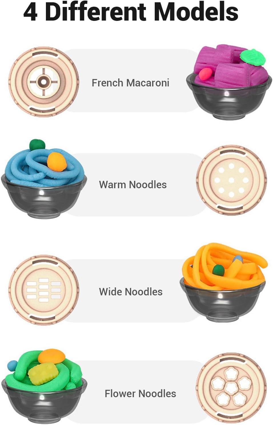 [IMMAGINAZIONE SCINTILLANTE] Alimenta la creatività di tuo figlio con questo esclusivo set di macchine per noodle, che promuove l'espressione e le capacità di coordinazione occhio-mano. [MESS-] La nostra argilla leggera è facile da impastare e modellare, lasciando un disordine minimo e rendendola adatta all'uso dei bambini piccoli. [GIOCO INTERATTIVO] I bambini possono divertirsi a modellare vari disegni di tagliatelle, migliorando le loro capacità motorie e rendendo il tempo di gioco più piacevole. [VARIE FORME] Il set include una varietà di modelli per creare animali, edifici e altro ancora, ispirando la creatività e mantenendo emozionante il tempo di gioco. [MATERIALI SICURI] Realizzati con materiali sicuri, offrono un'esperienza di gioco senza preoccupazioni per i bambini a casa e in ambienti educativi.