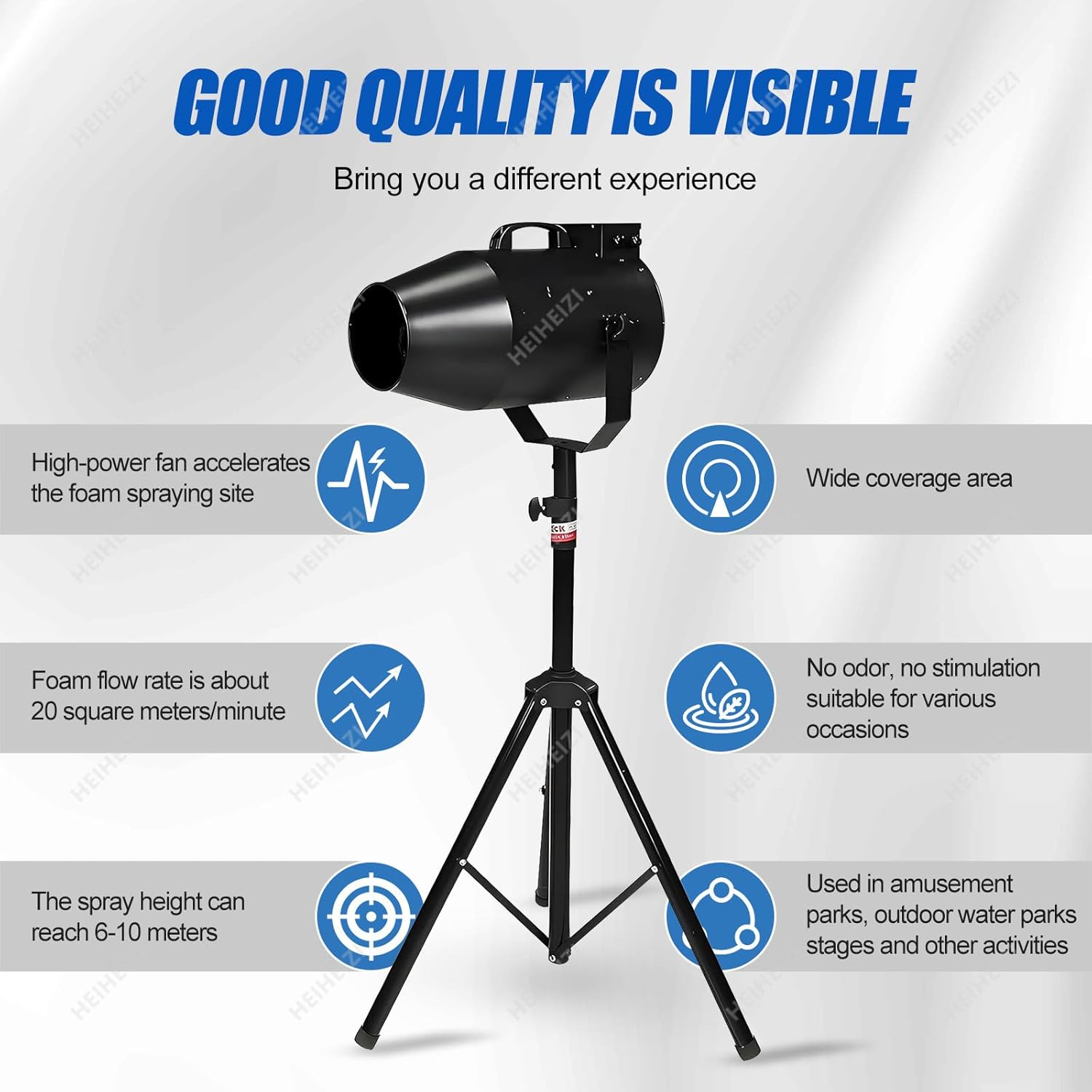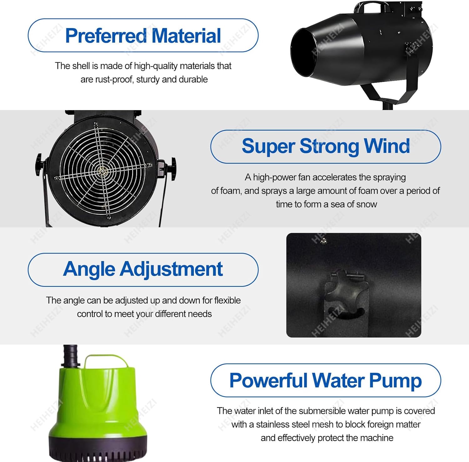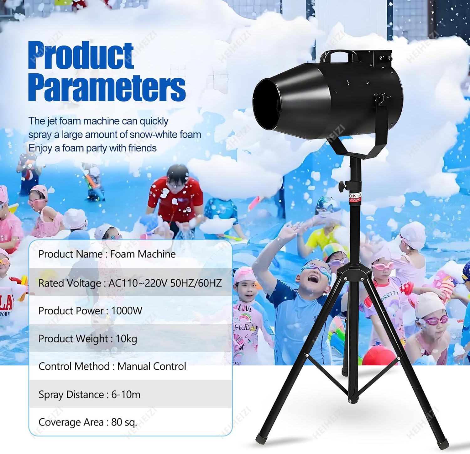 ▶【Output grandangole】Questa macchina spray in schiuma è dotata di ventole importate per migliorare l'applicazione in schiuma, offrendo un'output impressionante di circa 20 metri quadrati al minuto.Con un'altezza di spruzzo di 6-8 metri, garantisce una copertura rapida, mentre il motore da 1000 W consente il controllo dell'angolo regolabile per una maggiore flessibilità. ▶【Materiali di alta qualità】Il cannone in schiuma dispone di una conchiglia premium, robuste staffe di ferro e una base di ferro durevole, tutte a prova di ruggine per resistere agli elementi.Include cuscinetti resistenti ad alta temperatura classificati per 130 ° ed è progettato con ruote di freni per una facile mobilità. ▶【Macchina a gemito a reazione】Questa macchina da schiuma di fase genera un'abbondante quantità di lussuosa schiuma bianca in neve, creando un'atmosfera affascinante.Il tuo spazio si trasformerà in un gelido paese delle meraviglie in pochi minuti per un divertimento frizzante infinito. ▶【Più sicuro】La nostra schiuma è attentamente testata ed è incolore, inodore e non tossico, garantendo un'esperienza sicura senza rischi di irritazione della pelle o degli occhi.Goditi le deliziose bolle senza preoccupazioni, grazie alla sua qualità e alle sue caratteristiche esteticamente piacevoli. ▶【Ampia applicazione】Perfetto per una varietà di eventi, questa macchina in schiuma è ideale per feste di Natale, attività familiari, campi da gioco, parchi idrici all'aperto, nonché promozioni immobiliari, centri commerciali, bar, spettacoli teatrali, sessioni di fotografia e varie celebrazioni.