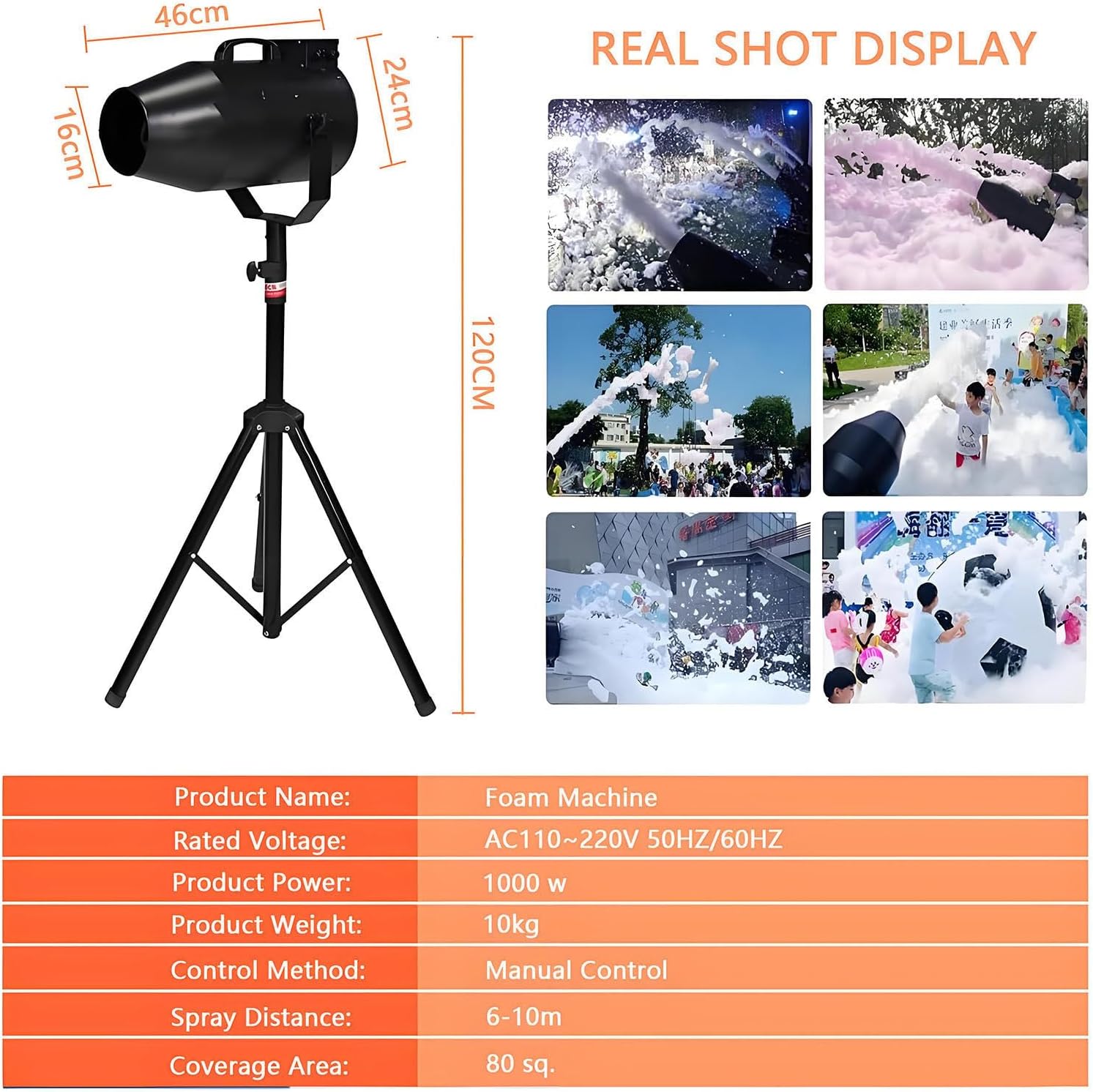 ◑【Macchina per schiuma per feste】: Macchina per schiuma ad alta potenza da 1000 W, in grado di produrre rapidamente una grande quantità di schiuma bianca come la neve in pochi minuti. Offre un'esperienza di schiuma ricca e densa per bambini e adulti alle feste. Che si tratti di attività all'aperto, feste di compleanno o celebrazioni, aggiunge un'atmosfera gioiosa alla scena. ◑【Uscita grandangolare】: Lo spruzzatore di schiuma utilizza ventole importate per accelerare l'area di spruzzatura della schiuma. La portata della schiuma è di circa 20 metri quadrati/minuto, l'altezza di spruzzo può raggiungere i 6-10 m, la macchina per schiuma è facile da usare e consente angoli di spruzzatura e volume di produzione di schiuma regolabili in base alle esigenze per un controllo flessibile. ◑【Sicurezza】: La schiuma è stata rigorosamente testata ed è incolore, inodore, atossica e molto sicura. Non c'è bisogno di preoccuparsi di irritazioni cutanee e oculari, la schiuma verrà spruzzata e non inonderà la macchina. La macchina per la schiuma è realizzata con materiali affidabili e dotata di funzioni di protezione contro le perdite e il surriscaldamento, garantendo la sicurezza durante l'uso. È adatta a bambini e adulti, offrendo tranquillità per le feste in famiglia. ◑【Due modalità di utilizzo】: Questa macchina per la schiuma è compatta e versatile. Può essere utilizzata con un treppiede portatile per un supporto stabile, oppure è possibile posizionarla in modo indipendente per un utilizzo più flessibile. Collegala e sei pronto per goderti il divertimento con la schiuma, ideale per i giochi all'aperto. ◑【Ampia applicazione】: La macchina per la schiuma è adatta per feste di Natale in piscina, feste di compleanno, attività genitori-figli, parchi giochi, parchi acquatici all'aperto, palchi, centri commerciali, bar, spettacoli teatrali, fotografia, feste estive e altre attività. Dopo l'evento, la pulizia è semplice: basta risciacquare la schiuma con acqua.