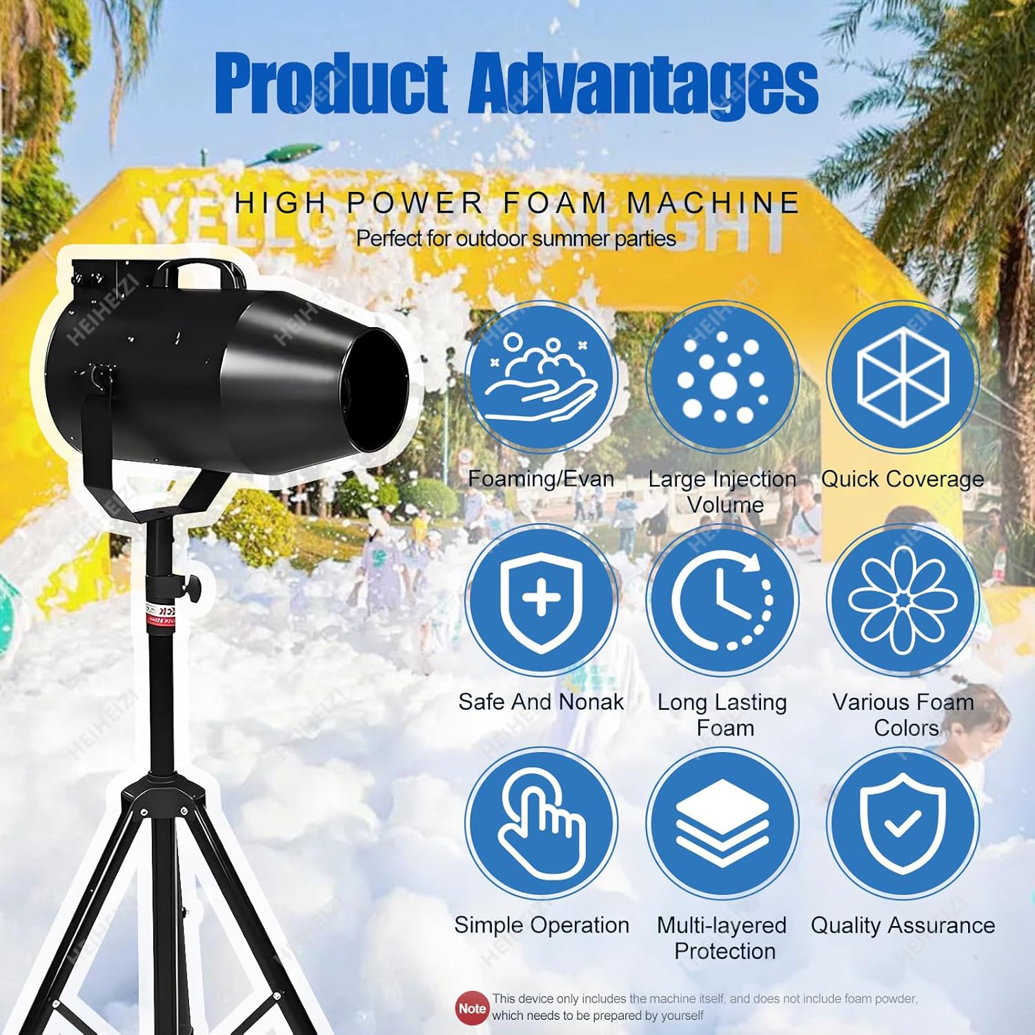 ▶【Output grandangole】Questa macchina spray in schiuma è dotata di ventole importate per migliorare l'applicazione in schiuma, offrendo un'output impressionante di circa 20 metri quadrati al minuto.Con un'altezza di spruzzo di 6-8 metri, garantisce una copertura rapida, mentre il motore da 1000 W consente il controllo dell'angolo regolabile per una maggiore flessibilità. ▶【Materiali di alta qualità】Il cannone in schiuma dispone di una conchiglia premium, robuste staffe di ferro e una base di ferro durevole, tutte a prova di ruggine per resistere agli elementi.Include cuscinetti resistenti ad alta temperatura classificati per 130 ° ed è progettato con ruote di freni per una facile mobilità. ▶【Macchina a gemito a reazione】Questa macchina da schiuma di fase genera un'abbondante quantità di lussuosa schiuma bianca in neve, creando un'atmosfera affascinante.Il tuo spazio si trasformerà in un gelido paese delle meraviglie in pochi minuti per un divertimento frizzante infinito. ▶【Più sicuro】La nostra schiuma è attentamente testata ed è incolore, inodore e non tossico, garantendo un'esperienza sicura senza rischi di irritazione della pelle o degli occhi.Goditi le deliziose bolle senza preoccupazioni, grazie alla sua qualità e alle sue caratteristiche esteticamente piacevoli. ▶【Ampia applicazione】Perfetto per una varietà di eventi, questa macchina in schiuma è ideale per feste di Natale, attività familiari, campi da gioco, parchi idrici all'aperto, nonché promozioni immobiliari, centri commerciali, bar, spettacoli teatrali, sessioni di fotografia e varie celebrazioni.