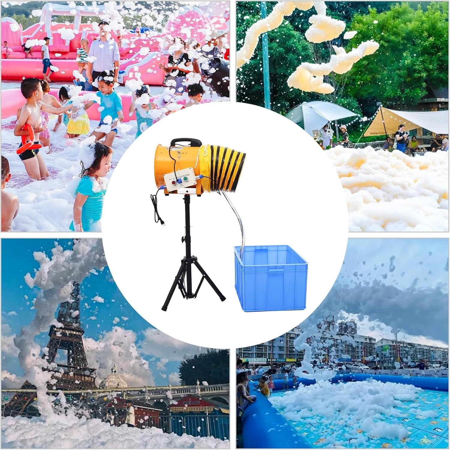 【Set completo per macchina per schiuma】: include una macchina per schiuma grande ad alta potenza da 2000 W, regolatore di potenza, pompa dell'acqua, serbatoio d'acqua da 60 litri, treppiede e manuale utente. Facile da montare, richiede solo pochi minuti. Una volta collegato, sei pronto per goderti la schiuma. 【Potente getto di schiuma】: il motore ad alte prestazioni da 2000 W crea una magica tempesta di bolle in pochi minuti! Il soffiatore a turbina importato può spruzzare schiuma bianca come la neve fino a un'altezza di 6 m, coprendo istantaneamente un'area di 20 metri quadrati. 【Regolazione flessibile】: Viene fornito con un treppiede robusto e portatile per un utilizzo stabile su erba, cemento o bordi piscina. La testa può essere ruotata e il supporto è regolabile in altezza (60-95 cm/23,8-37,2 pollici) in modo da poter spruzzare la schiuma in modo flessibile nel punto desiderato. 【Materiale di alta qualità】: Costruito con robuste staffe e base in ferro antiruggine, questo generatore di schiuma include cuscinetti ad alta temperatura da 130°. La funzione di spegnimento automatico dopo 15 minuti di utilizzo continuo consente la dissipazione del calore, garantendo la longevità della macchina per schiuma. 【Ampia applicazione】: La nostra macchina per schiuma a getto d'acqua con effetto scenico è adatta per feste di Natale in piscina, feste di compleanno, attività genitori-figli, parchi acquatici all'aperto, palchi, centri commerciali, bar, spettacoli teatrali, servizi fotografici, feste estive e altre attività.