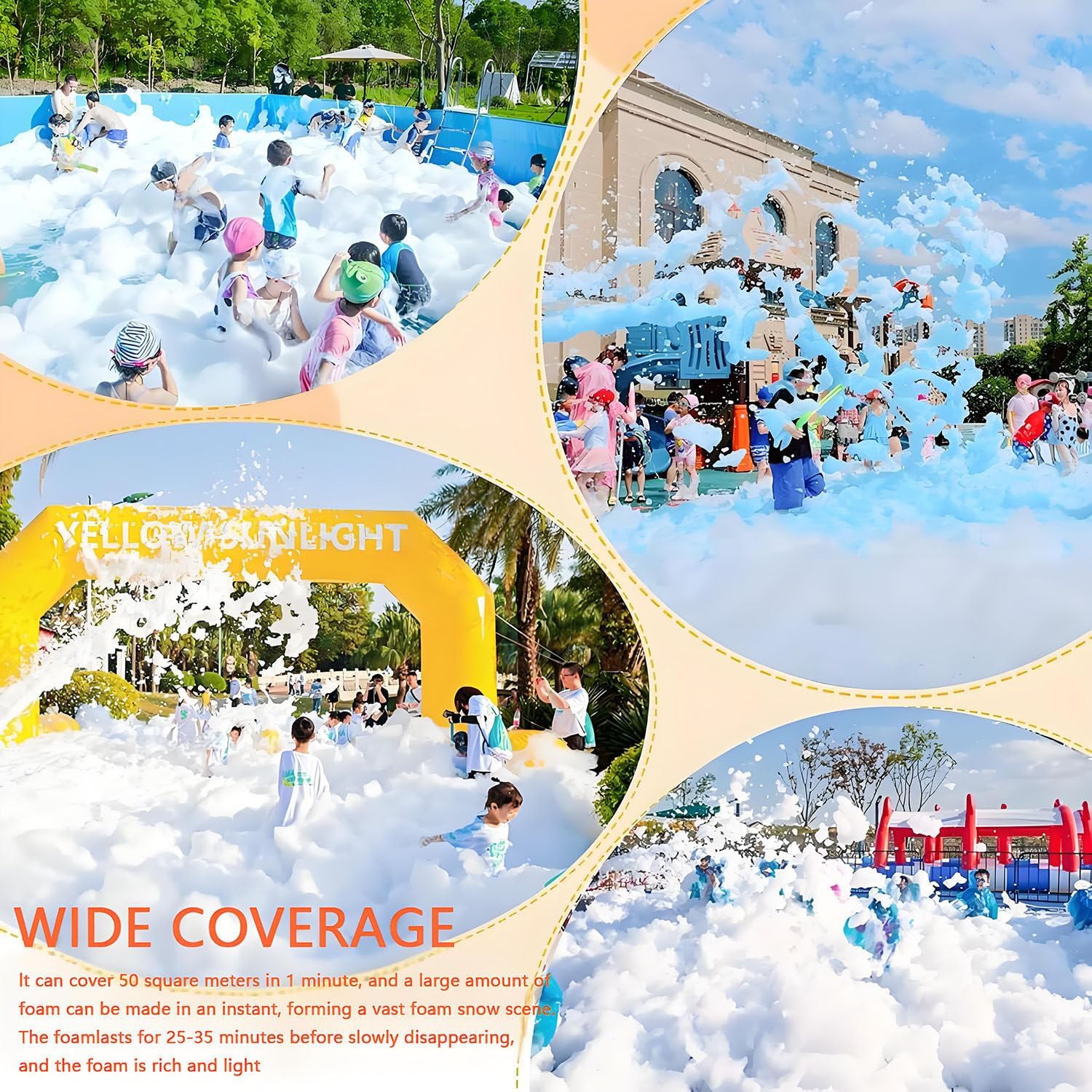 ◑【Macchina per schiuma per feste】: Macchina per schiuma ad alta potenza da 2000 W, in grado di produrre rapidamente una grande quantità di schiuma bianca come la neve in pochi minuti. Offre un'esperienza di schiuma ricca e densa per bambini e adulti alle feste. Che si tratti di attività all'aperto, feste di compleanno o celebrazioni, aggiunge un'atmosfera gioiosa alla scena. ◑【Uscita grandangolare】: Lo spruzzatore di schiuma utilizza ventole importate per accelerare l'area di spruzzatura della schiuma. La portata della schiuma è di circa 20 metri quadrati/minuto, l'altezza di spruzzo può raggiungere i 5-8 m, la macchina per schiuma è facile da usare e consente angoli di spruzzatura e volume di produzione di schiuma regolabili in base alle esigenze per un controllo flessibile. ◑【Sicurezza】: La schiuma è stata rigorosamente testata ed è incolore, inodore, atossica e molto sicura. Non c'è bisogno di preoccuparsi di irritazioni cutanee e oculari, la schiuma verrà spruzzata e non inonderà la macchina. Macchina per schiuma dotata di funzioni di protezione contro le perdite e il surriscaldamento, che garantiscono la sicurezza durante l'uso. È adatta a bambini e adulti, offrendo tranquillità per le feste in famiglia. ◑【Materiali di alta qualità】: Il cannone per schiuma ha selezionato un guscio di alta qualità, staffe in ferro e materiali di base in ferro antiruggine, robusti e durevoli, cuscinetti integrati resistenti alle alte temperature di 130° e ruote con freno, così puoi spostarla ovunque. ◑【Ampia applicazione】: La macchina per schiuma è adatta per feste di Natale in piscina, feste di compleanno, attività genitori-figli, parchi giochi, parchi acquatici all'aperto, palchi, centri commerciali, bar, spettacoli teatrali, servizi fotografici, feste estive e altre attività. Dopo l'evento, la pulizia è semplice: basta risciacquare la schiuma con acqua.