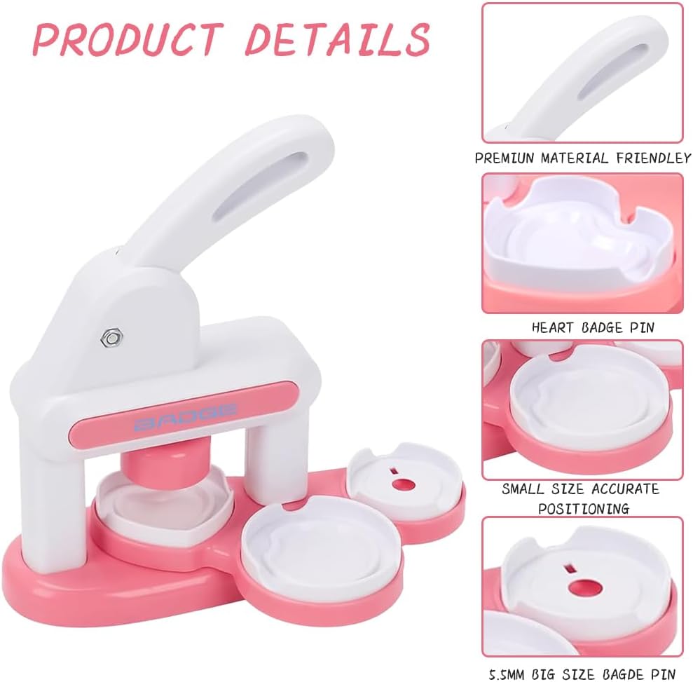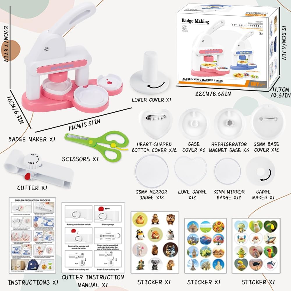Set per la creazione di bottoni: Questo macchina per spille include 12 set di spille da 55 mm, 12 set di spille a forma di cuore, 6 set di spille da 35 mm, 6 set di adesivi per frigorifero da 35 mm, 6 set di portachiavi, un manuale di istruzioni e altri accessori. Soddisfa tutte le tue esigenze fai da te; non sono richiesti acquisti aggiuntivi. Nuovissimo aggiornamento: Questo macchina per spille adotta un corpo macchina integrato, consentendo un posizionamento migliore e aumentando l'efficienza e la precisione. Il nostro kit per la creazione di bottoni fai da te aggiornato è dotato di fustelle intercambiabili che ti consentono di creare bottoni personalizzati di varie dimensioni, esercitando appieno le tue capacità manuali. Materiali di alta qualità: Il nostro macchina per spille non solo ha un aspetto accattivante, ma è anche realizzato in plastica robusta, che lo rende leggero, portatile e resistente. Il suo innovativo meccanismo di rotazione semplifica l'utilizzo, risparmiando tempo e fatica e rendendo il fai da te sicuro e semplice. Facile da usare: Questo macchina per spille è facile da usare; puoi utilizzarlo facilmente con solo uno o due tentativi. Tutto ciò che devi fare è inserire i pezzi della spilla, il disegno e il tappo nella macchina uno alla volta, allinearli e premere con decisione, permettendo ai bambini di imparare rapidamente. Regalo perfetto: Questa macchina per spille è un regalo fantastico per i bambini che li sorprenderà e li ispirerà. I bambini possono creare le proprie spille con diversi motivi, sviluppando la loro immaginazione, creatività e destrezza manuale. È ideale per creare spille per attività scolastiche, bomboniere personalizzate e un regalo unico per familiari e amici.