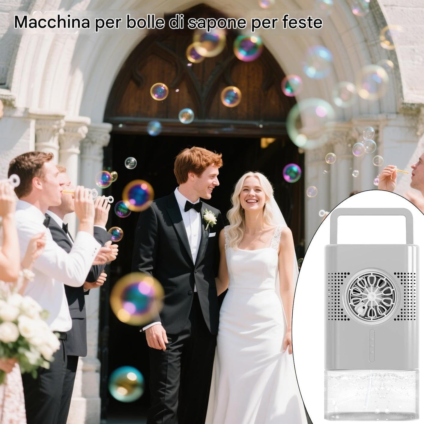 Design Robusto e Portatile: Costruito per migliorare gli eventi all'aperto, la forma compatta e l'adattabilità a più situazioni lo rendono facile da trasportare, garantendo divertimento con le bolle ovunque tu scelga di andare con performance costante Tecnologia Antigoccia: Serbatoio impermeabile da 400ml e progettazione avanzata assicurano prestazioni affidabili per ore di divertimento continuo Flusso Bolle Costante: Meccanica di funzionamento e rilascio continuo sfruttano presa d'aria grande diametro per produzione stabile e distribuzione uniforme di bolle per maggior intrattenimento Esperienza Intuitiva: Creazione istantanea di atmosfera festosa con setup veloce e produzione copiosa di bolle, attivata da un solo pulsante per godimento immediato in ogni occasione sociale Effetti visivi dinamici: Dispositivo con modulo LED integrato produce giochi di luce avvincenti che un'esperienza coinvolgente, potenziati da transizioni cromatiche automatiche e comando a pulsante diretto
