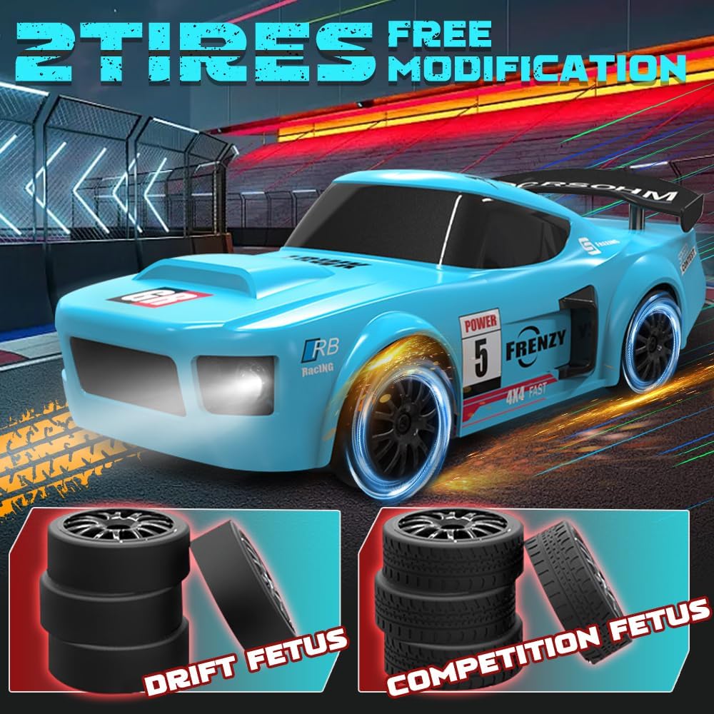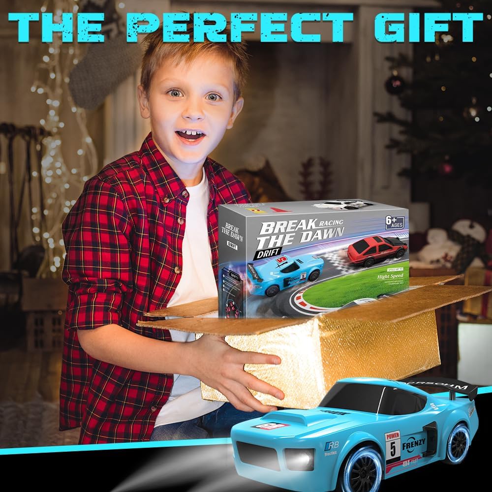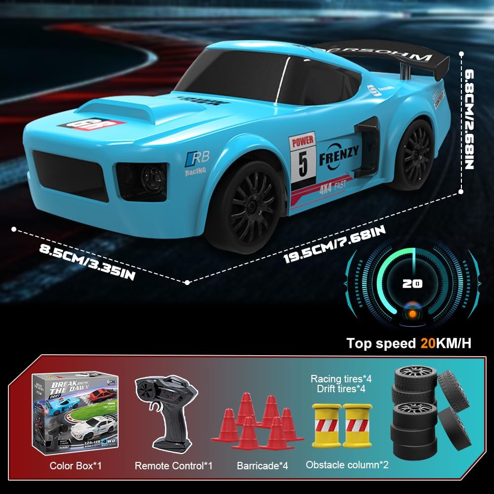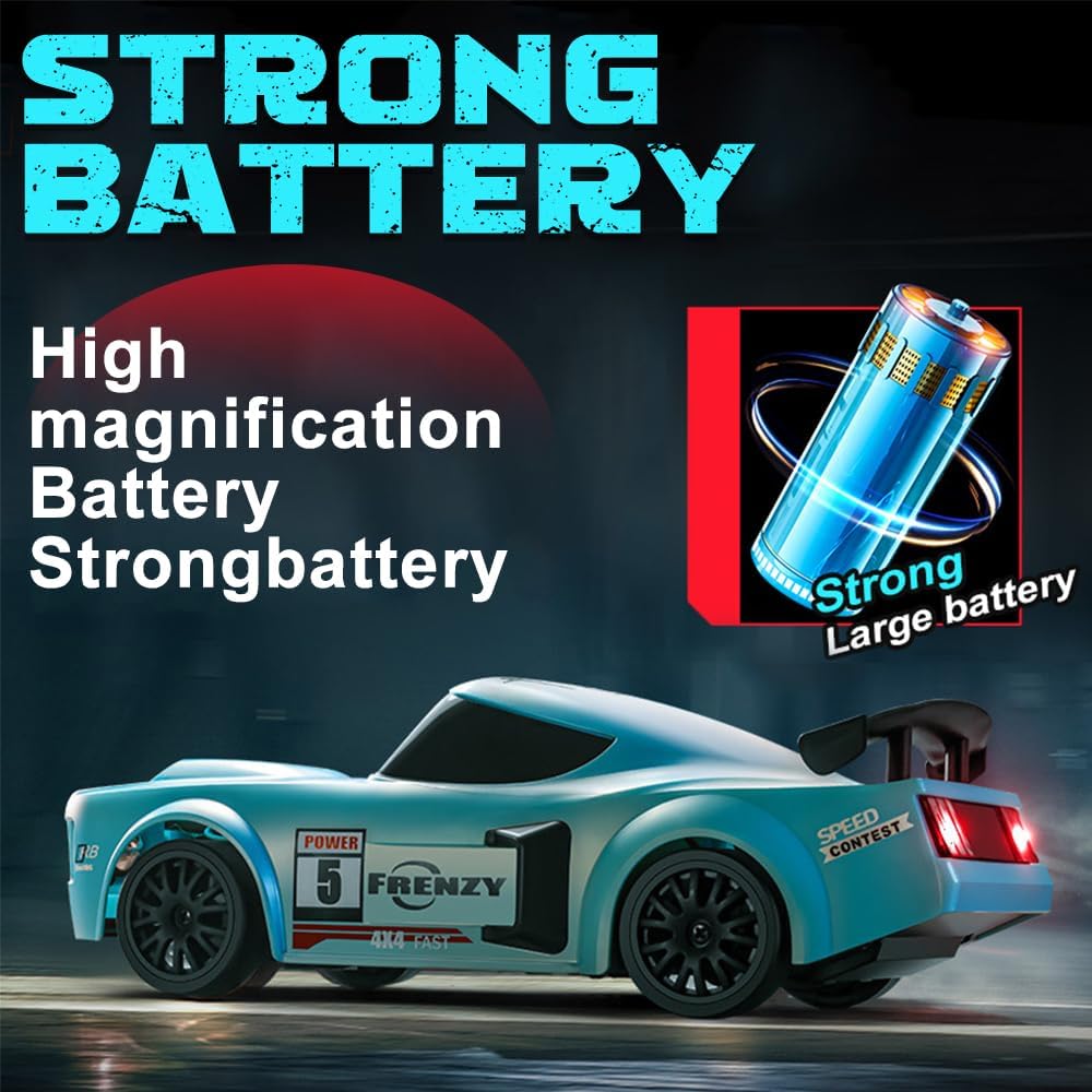 【Design realistico】Questa rc drift car è modellata su un'auto da corsa GTR in scala 1:24 e colpisce per il suo design dettagliato e realistico. Le luci a LED luminose consentono di identificare la posizione e la direzione in qualsiasi momento. Grazie alle luci fredde, è possibile trovare rapidamente l'auto da drift telecomandata anche al buio, mantenendo comunque un'eccellente visibilità 【Trazione integrale】La nostra rc drift car è dotata di trazione integrale e di un motore ad alte prestazioni per drift potenti. La velocità massima è fino a 20 km/h, perfetta per emozionanti gare di drift. Questa mini auto da drift è dotata di una batteria da 3,7 V che può essere caricata per 100 minuti e offre un'autonomia di 18-25 minuti 【Controllo preciso】Questa macchina telecomandata drift utilizza una radiofrequenza a 2,4 GHz, consentendo a più persone di controllarla contemporaneamente senza interferenze reciproche. La portata è fino a 50 metri. Il telecomando richiede due batterie AA non ricaricabili da 1,5 V (non incluse) 【Sistema di illuminazione a LED】 La nostra rc car è dotata di illuminazione a LED, inclusi fari anteriori, luci del telaio e fanali posteriori, particolarmente alla moda e che creano un look accattivante di notte 【Facile da usare】 La velocità e la direzione dell'auto da drift possono essere facilmente controllate con il telecomando a 2,4 GHz. L'macchina telecomandata drift può procedere avanti e indietro, frenare e girare a sinistra e a destra: è incredibilmente facile da usare. È un'auto giocattolo per adulti e bambini