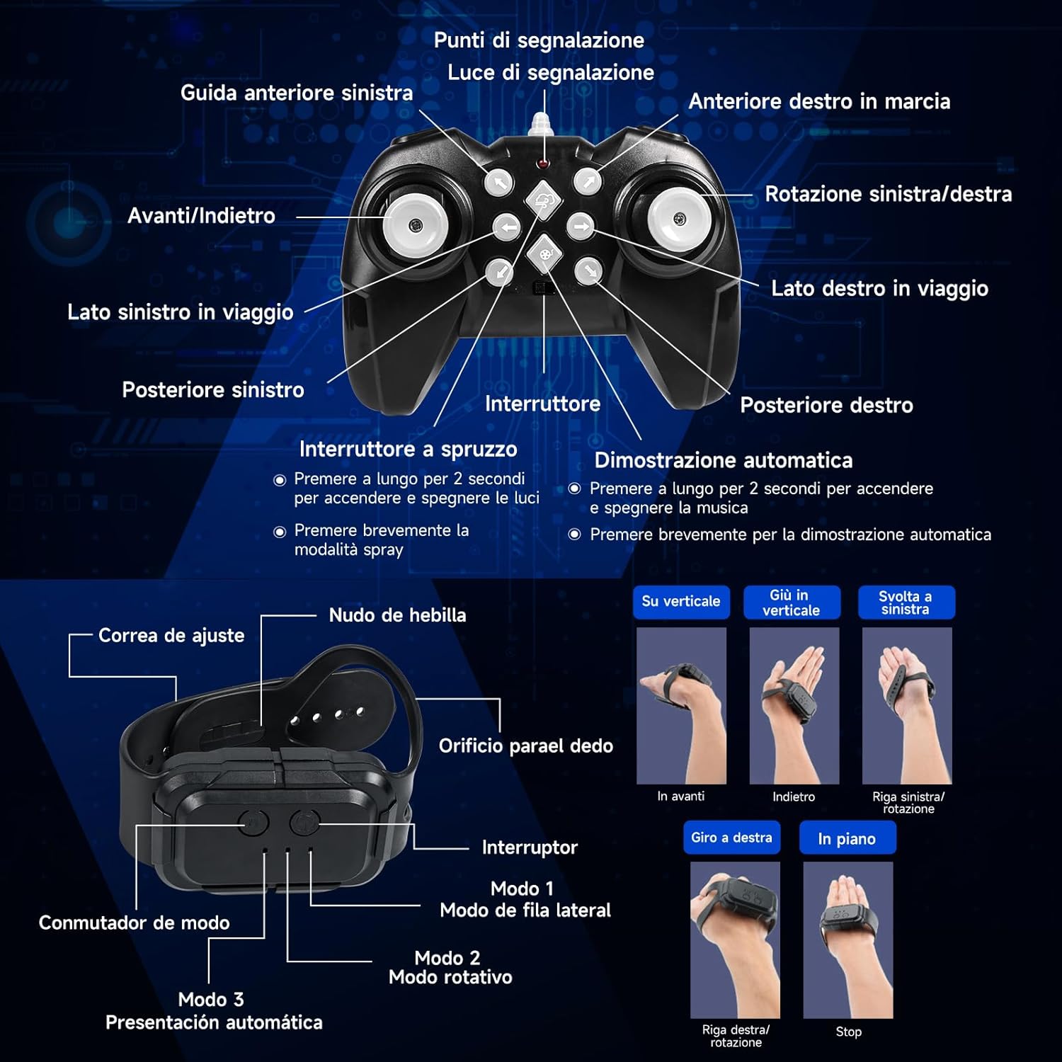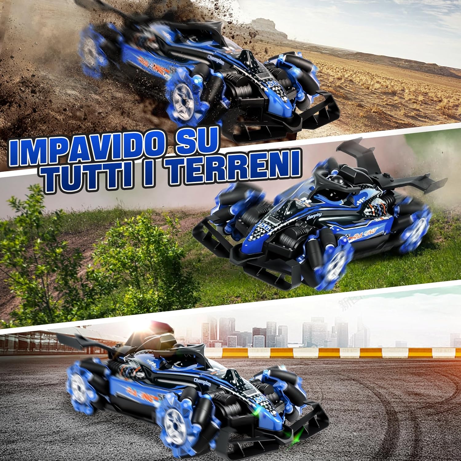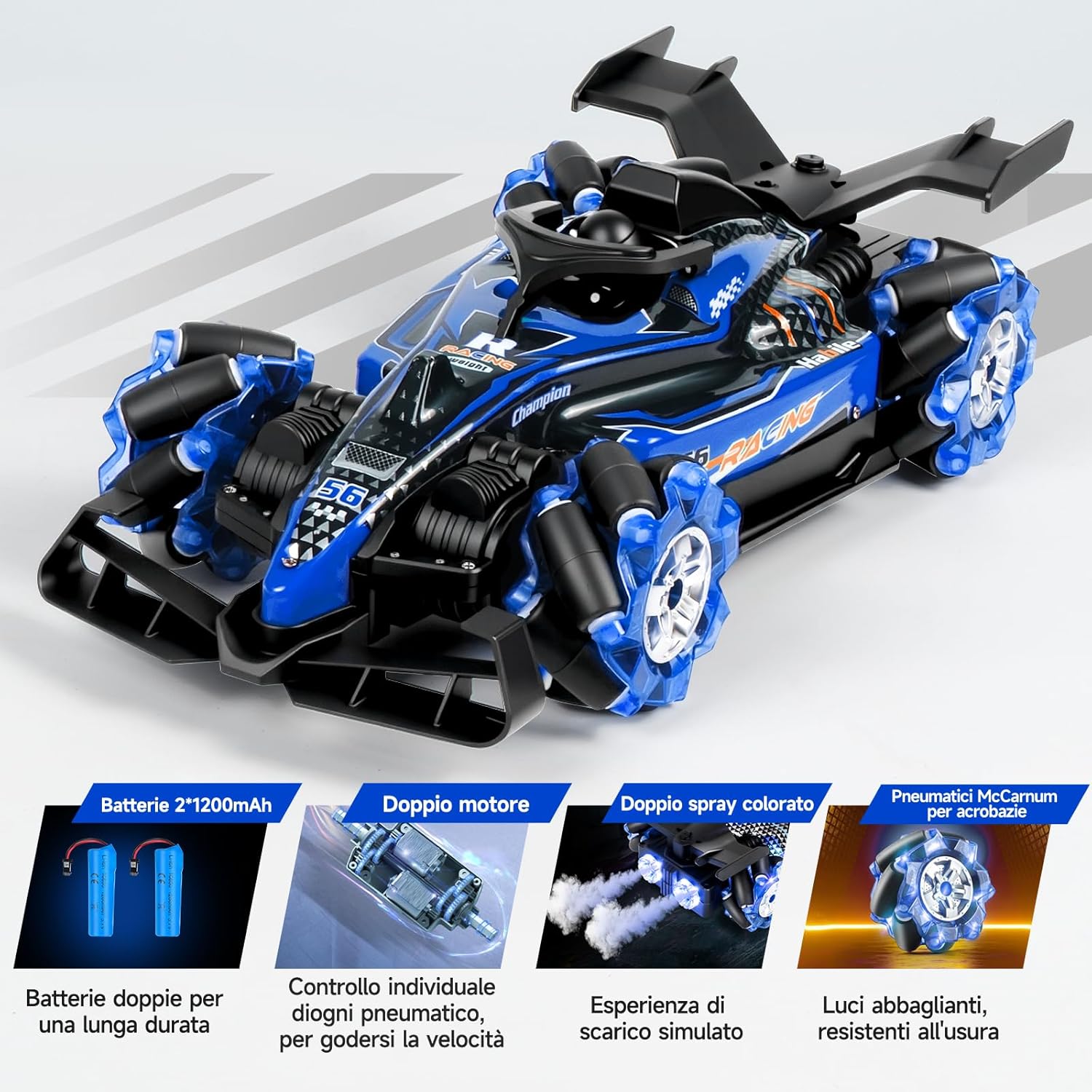 🚗 【Due Modalità Di Controllo】Questa macchina radiocomandata RC Stunt Car è dotata di un telecomando 2,4 GHz ad alta precisione e di un orologio con controllo gestuale innovativo, con un’impressionante portata fino a 50 metri. Può eseguire rotazioni a 360°, movimenti avanti e indietro e manovre di drift complesse. Più macchine radiocomandate possono correre contemporaneamente senza interferenze, permettendo gare emozionanti con famiglia e amici. Il controllo intuitivo tramite l’orologio da polso consente a bambini e adulti di guidare facilmente e con divertimento. 💨 【Effetto Doppio Spruzzo Aggiornato】Il design moderno a doppio ugello crea una nebbia di spruzzo realistica e fine, attiva per circa 10 secondi con arresto automatico per proteggere il motore dal surriscaldamento. La nebbia esce delicatamente dalla parte posteriore della macchina, combinata con luci LED multicolori sulla carrozzeria e sulle ruote, facendo sembrare la macchina una vera auto da corsa su una pista notturna. Questo spettacolo visivo rende ogni gara dinamica ed emozionante, ideale per chi ama l’azione e gli effetti spettacolari, sia bambini che adulti. ⚡ 【Motore Potente 4WD】La carrozzeria robusta in ABS ecologico garantisce durata e stabilità. Dotata di ruote anteriori e posteriori ammortizzate, affronta in sicurezza diversi terreni come erba, sabbia, asfalto o superfici irregolari. Il potente motore doppio consente di raggiungere una velocità massima di 25 km/h e offre prestazioni impressionanti, perfette per accelerazioni rapide e superamento di ostacoli. Questa macchina radiocomandata 4WD unisce velocità, potenza e stabilità per un’esperienza di guida impareggiabile. 🎁 【Accessori Completi】Il set include tutto il necessario per divertirsi subito: macchina radiocomandata ×1, telecomando 2,4 GHz ×1, orologio con controllo gestuale ×1, batterie al litio per la macchina ×2, batterie per telecomando ×2, batterie per orologio ×2, iniettore d’acqua ×1, cacciavite ×1, cavo di ricarica USB ×1. Nessun acquisto aggiuntivo richiesto. Basta aprire la confezione, caricare e iniziare subito la gara. 🏁 【Regalo Per Tutte Le Età】Questa macchina radiocomandata Stunt Car entusiasma sia bambini che adulti grazie alle sue funzioni versatili e all’esperienza di guida coinvolgente. È il regalo perfetto per compleanni, festività, feste, Halloween, Capodanno o Natale. Condividi la gioia della velocità, delle derapate precise e della nebbia spettacolare con i tuoi cari e crea momenti indimenticabili pieni di divertimento ed emozioni.
