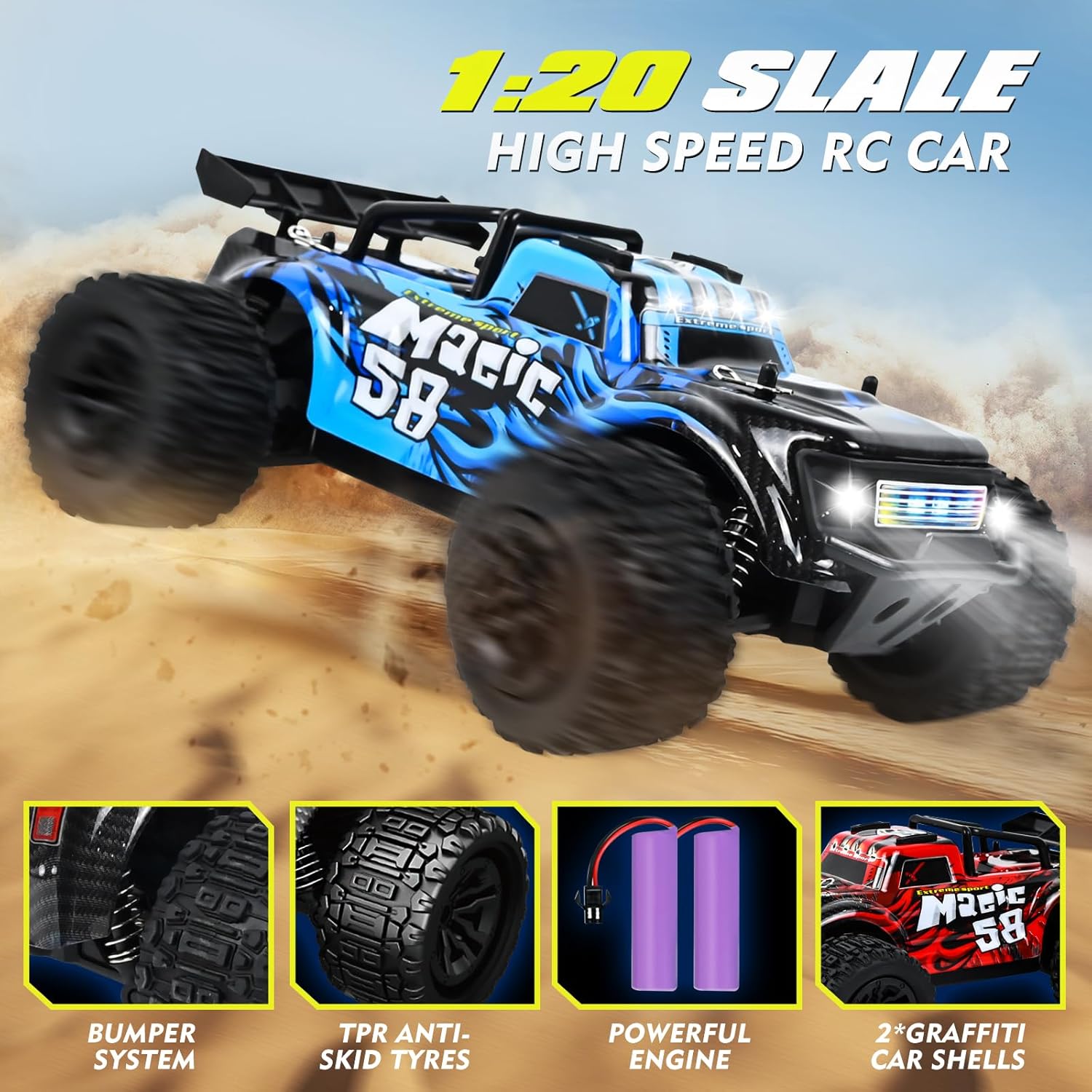 🎨[Design a Doppio Guscio] La nostra auto RC è stata progettata per bambini di età compresa tra 3 e 8 anni ed è dotata di due gusci intercambiabili, ciascuno con un design graffito unico. I bambini possono facilmente passare dai loro colori preferiti e godersi un'esperienza di guida personalizzata. Le due batterie ricaricabili incluse prolungano il tempo di gioco fino a 60 minuti di divertimento senza interruzioni! 🚗[Controllo ad Alta Velocità a 2,4 GHz] Scopri la tecnologia a 2,4 GHz per l'illuminazione della carrozzeria a LED e le luci posteriori, la carrozzeria elegante con luci LED lampeggianti per bambini dai 3 agli 8+ anni e una migliore visibilità durante la guida notturna. Il potente sistema motore per un controllo rapido e preciso rende il monster truck RC la stella più brillante della notte. 💪[Motore Potente] Il motore ad alta velocità garantisce prestazioni elevate al monster truck, che accelera fino a 20 km/h e scala con facilità pendenze di 45 gradi. Pneumatici di alta qualità e gusci in PVC, nonché un sistema antivibrazioni, assicurano che il monster truck RC possa viaggiare ad alta velocità anche su sabbia, erba e strade sconnesse. 🏁[RTR Ready to Play] Con il telaio indipendente di nuova concezione e i robusti paraurti anteriori e posteriori, questo monster truck RC è adatto a qualsiasi terreno. Livello RTR, nessun assemblaggio richiesto, nessuna parte complicata o istruzioni di montaggio. Questa auto RC è un regalo perfetto per bambini e bambine dai 3 agli 8 anni! 🎁[Regalo Perfetto] Il monster truck telecomandato ha un aspetto accattivante ed è costruito in modo robusto, perfetto per i bambini e gli amici come regalo per Natale, Halloween, compleanni e altre festività. Sicuramente porterà tante sorprese ai bambini e offrirà una migliore esperienza introduttiva ai principianti del mondo RC.