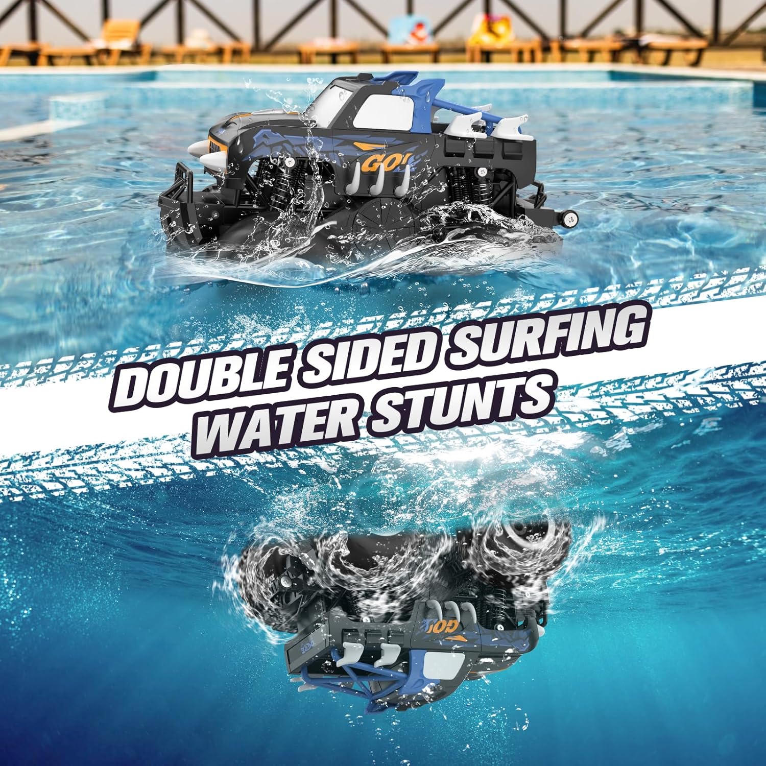 【Impermeabile e pronto per gli schizzi!】Tuffati nel divertimento acquatico su due fronti! Questa incredibile auto RC anfibia scivola senza sforzo sulla schiena o sulle ruote, facendo schizzi in piscine, stagni o persino pozzanghere. Il design in gomma sigillata impedisce all'acqua di entrare nell'auto, ma ricorda che il telecomando non è impermeabile, quindi tienilo all'asciutto! 【Conquista qualsiasi avventura】Dall'erba alla sabbia, dalla neve ai ruscelli poco profondi: questa auto RC fuoristrada 4WD va praticamente ovunque! Sfreccia nel fango, gira di 360° sull'acqua o sulla terraferma e guardala sfrecciare sulla spiaggia come un mini monster truck. Non è solo un veicolo fuoristrada, è anche un fantastico giocattolo acquatico perfetto per le feste in piscina e le giornate al lago! 【Sicuro, resistente e facile da pulire】Realizzato con plastica di alta qualità, atossica ed elettronica sicura, questo RC car è sicuro per i bambini e pronto per l'avventura. Decine di viti rinforzate mantengono tutto al suo posto. Suggerimento: dopo aver giocato in acqua salata, basta sciacquarlo con acqua dolce per proteggere le viti e le parti. 【Il regalo di un divertimento senza fine】Cerchi un regalo per un compleanno, una festa o semplicemente perché sì? Questa auto RC offre un divertimento di guida emozionante sia sulla terraferma che sull'acqua! È un successo per i bambini dai 3 ai 14 anni e rende ogni festa, dal Natale ad Halloween, ancora più speciale. 【Oltre 35 minuti di gioco】Accendi la batteria ricaricabile e preparati per oltre mezz'ora di azione senza sosta! Assicurati solo che la batteria e il coperchio siano posizionati correttamente prima di partire all'avventura.