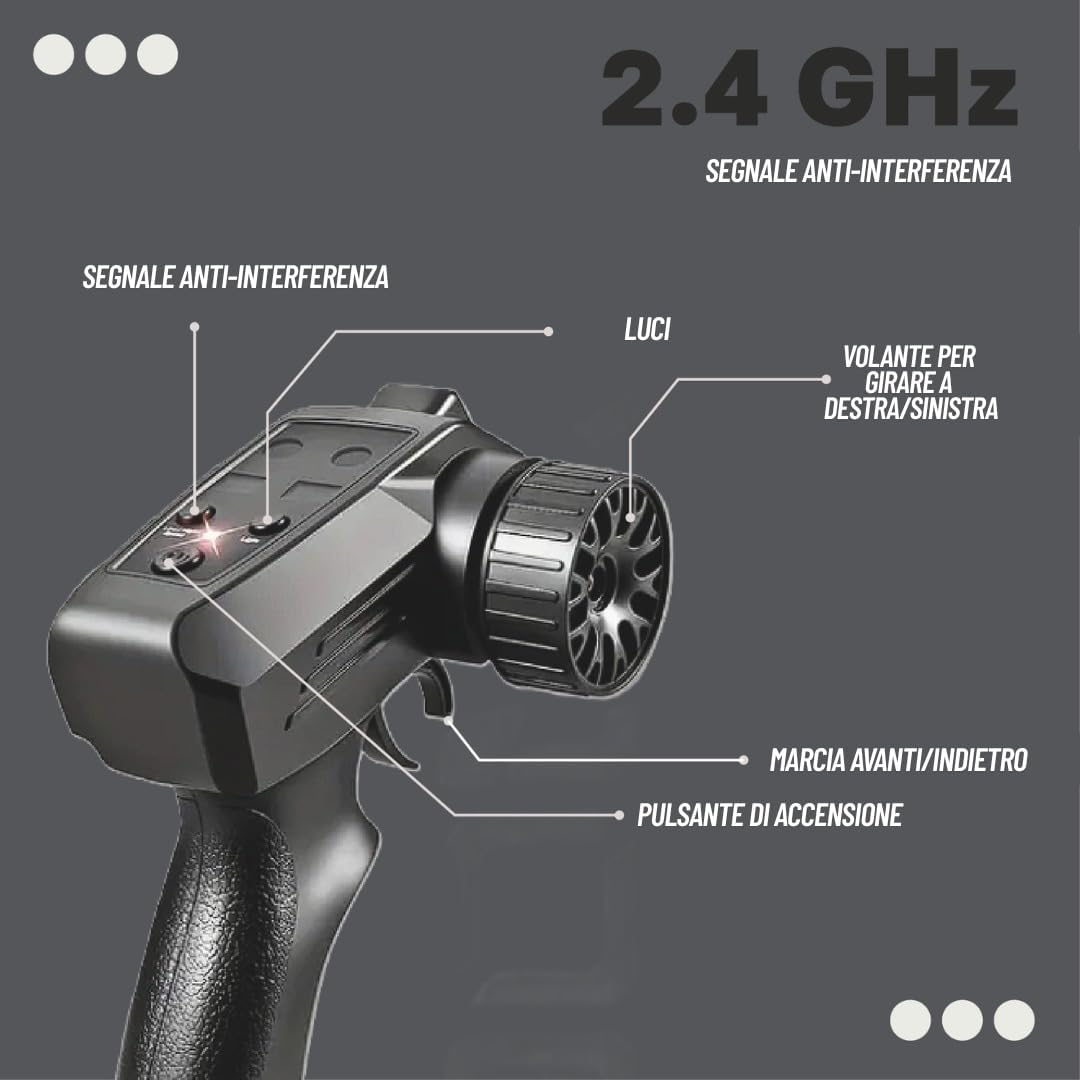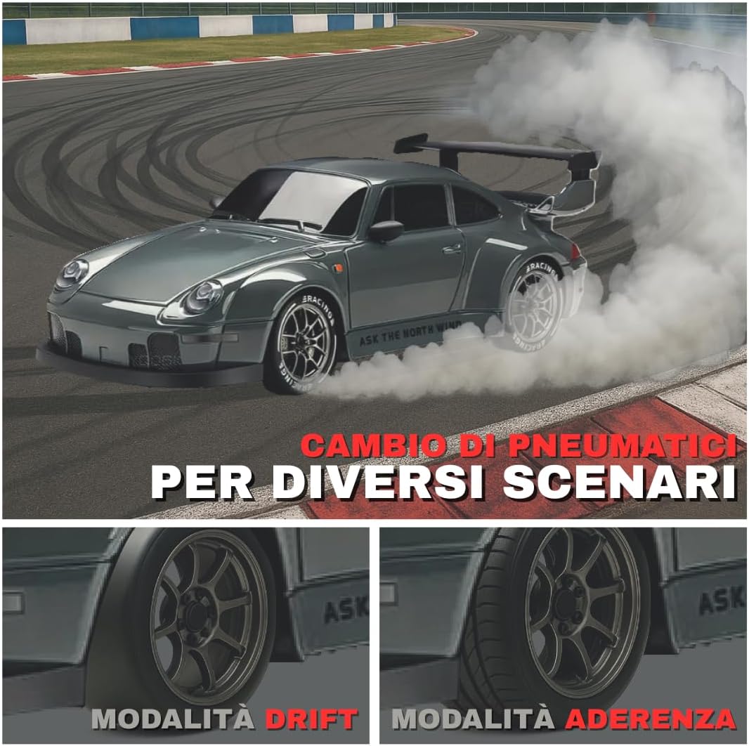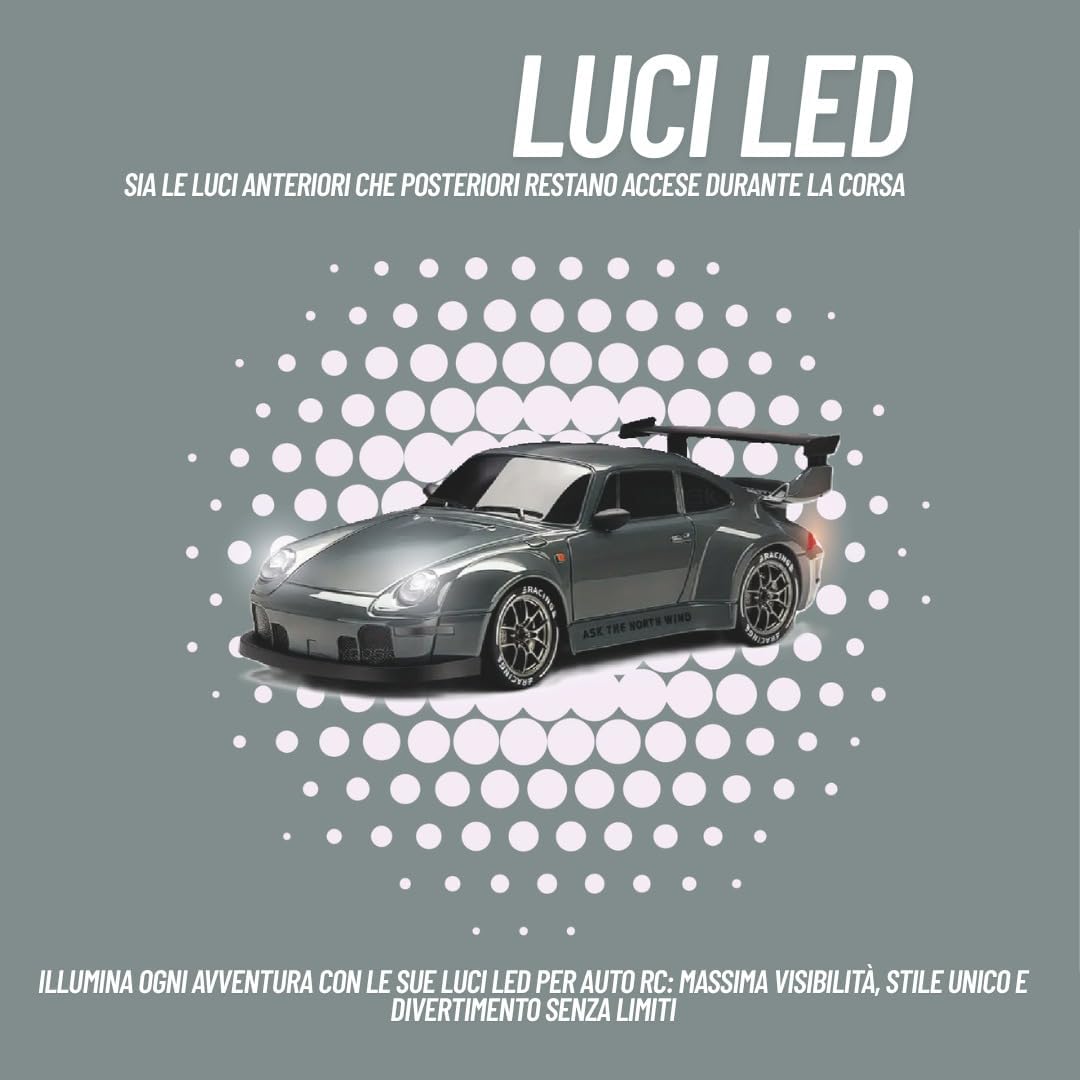 🚗 Scatena la Velocità e il macchina telecomandata! Motore potente 4WD ad alta velocità che garantisce prestazioni eccezionali e un'accelerazione rapida e incredibile. Quattro ruote motrici che distribuisce la pontenza durante la forma per una derapata fluida. noltre, puoi controllare l'auto senza interferenze, con totale stabilità per una guida fluida ed emozionante su diverse superfici. 🚗 Telecomando ergonomico e wireless a 2,4 GHz. Assicura una connessione stabile, con una portata fino a 50 metri, permettendo un'ampia area di gioco senza perdita di segnale. lunga durata. Goditi ore di gioco continuo con una sola carica (500 mAh) Struttura resistente e design curato. Progettata per resistere a gare intense e urti, garantendo una lunga durata grazie al materiale ABS di alta qualità. Dotata di pneumatici ad alta aderenza e color grigio elegante che le conferisce un aspetto moderno e realistico. Perfetta per drifting su diverse superfici, con un’aderenza eccezionale e grande stabilità. ✨ Illuminazione realistica e dettagli sorprendenti. Illumina le tue gare notturne con luci LED anteriori e posteriori integrate, che aggiungono realismo e stile alla tua auto. Aggiungi sfide personalizzate con le barriere stradali incluse per un’esperienza di gioco ancora più completa. Auto telecomanda drift dotato di fari, luci posteriori e luci sottoscocca. ¡Migliora di notte! 🛠️ Auto drift ad alta velocitá. Dimensioni e scala 1:24. Dimensioni compatte ma dettagliate, perfette per spazi ridotti e facili da maneggiare per i bambini. Circa 20 cm di lunghezza, 10 cm di larghezza e 8 cm di altezza, con un ottimo equilibrio tra maneggevolezza e realismo. Sospensione regolabile per assorbire gli impatti e mantenere stabilità durante i salti e le manovre veloci. 🚗 Funzioni extra. Progettata specificamente per il drifting, consente derapate spettacolari e curve strette. Il controllo della velocità ti permette di adattare la corsa al tuo livello e alle tue preferenze. 🚗 Divertimento e intrattenimento. Ore di divertimento attivo, lunga durata, telecomando intuitivo, design ecologico ed ergonomico. Il regalo perfetto per ogni occasione, ideale per bambini appassionati di tecnologia e velocità. 🎁 Il regalo perfetto per piccoli avventurieri. Macchina Telecomandata RC Drift per Bambini e bambine dagli 8 anni in su. Favorisce la coordinazione, le abilità motorie e la creatività. Perfetto per compleanni, Natale o Halloween.