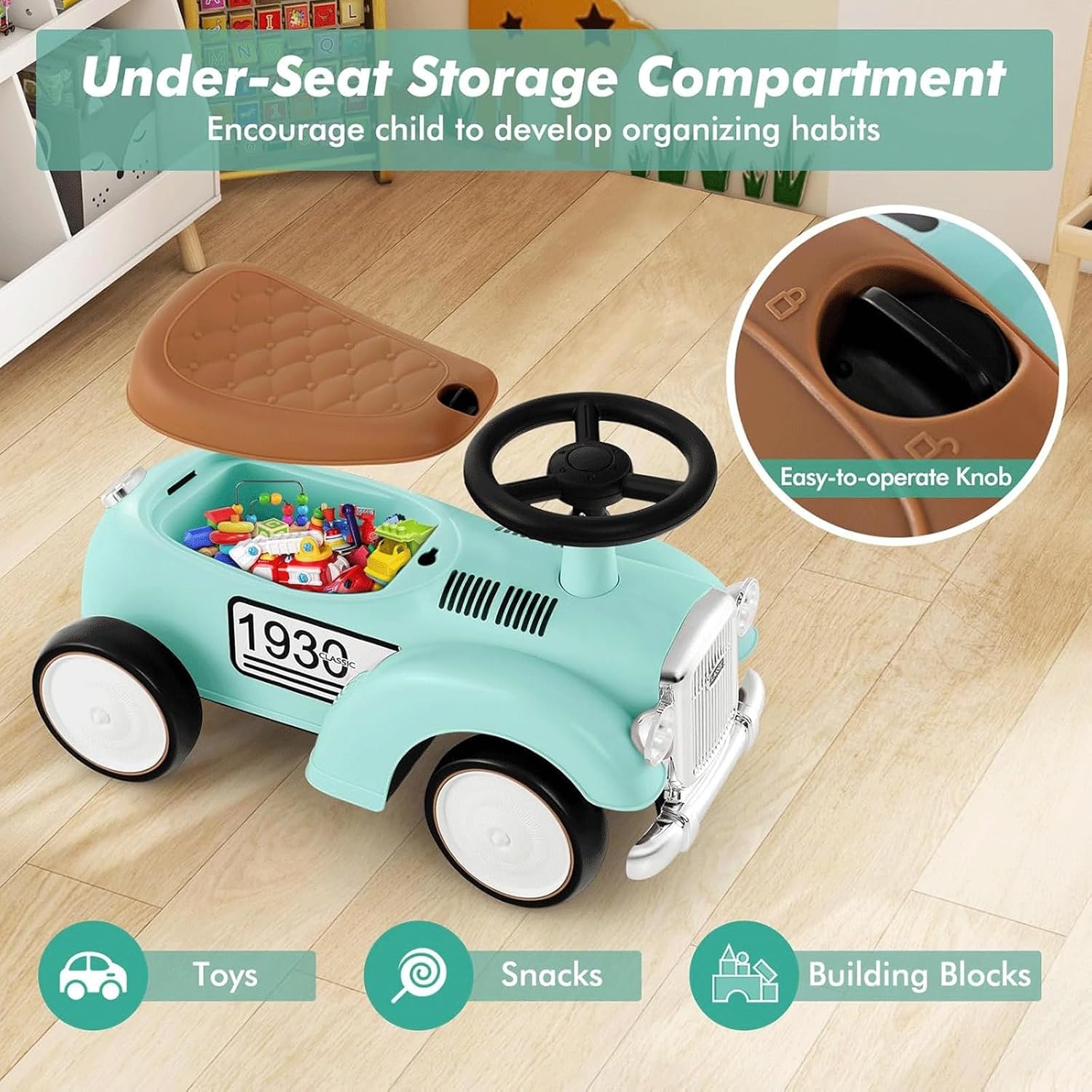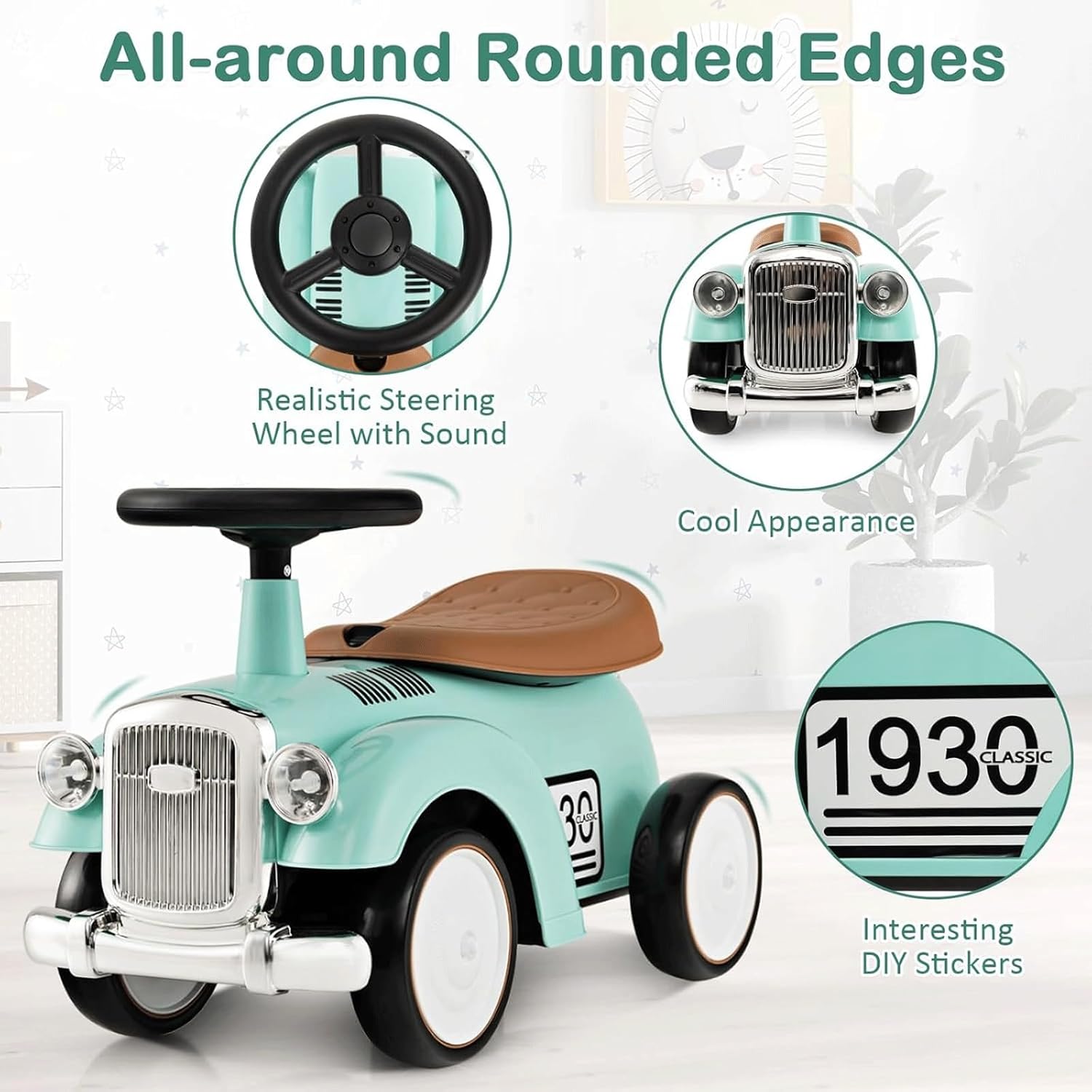Questa bicicletta, appositamente progettata per i bambini, non richiede controlli complicati. I bambini possono controllare il movimento in avanti e all'indietro inclinando naturalmente il corpo e sterzare in modo flessibile con una semplice rotazione del piede. È semplice come un gioco e suscita immediatamente il loro interesse per il ciclismo. Questo giocattolo cavalcabile ha un look classico e un clacson sul volante per un divertimento senza fine per i bambini. Il passeggino è dotato di volante di sicurezza a 40° per evitare cadute laterali e garantire la sicurezza del tuo bambino. Può trasportare un peso massimo di 25 kg. Questo passeggino è dotato di uno spazio nascosto sotto il sedile dove puoi riporre i giocattoli e gli snack dei bambini, lasciando le mani libere quando esci. Questo giocattolo per sedersi e scivolare per bambini è dotato di 4 ruote allargate e silenziose, antiscivolo, resistenti all'usura e delicate sul pavimento. I bambini possono usarlo all'interno o all'esterno. Questa macchinina cavalcabile può aiutare i bambini a sviluppare la coordinazione, il senso dell'orientamento e l'equilibrio durante il gioco, esercitando il corpo ed è divertente.