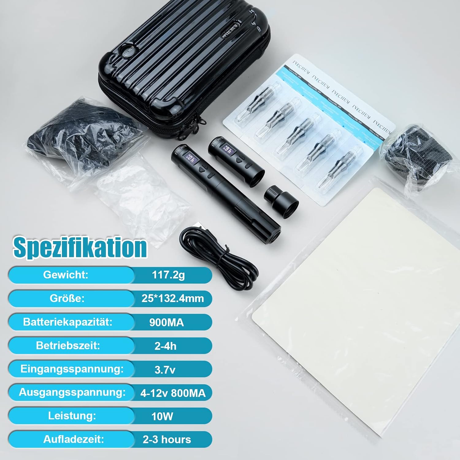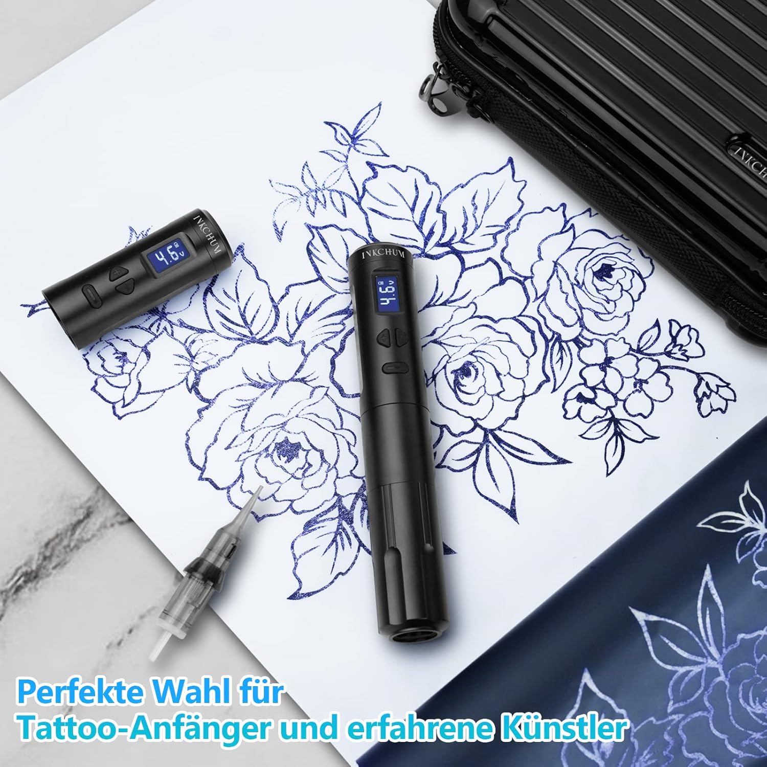 【K6003 Tattoo Machine】Per sviluppare un motore a tazza cava più adatto a questa macchina, che migliora la sua durata di 4 volte.12V max 10000 Rpm, alta velocità, basso rumore, lavoro stabile, basso consumo energetico, alta potenza, bassa perdita di pelle, colorazione veloce, nessun calore per lavorare a lungo. 【Macchina Tatuaggi Kit Completo】Con una lunghezza di corsa standard di 3,5 mm per tutti gli aghi a cartuccia standard, questa macchina a batteria soddisferà tutte le vostre esigenze di lavoro. Il corpo misura solo 2.5*13.24 cm e pesa 117.2 g. 【Modalità Cablata e Senza Fili】Questa penna è dotata di 2 batterie ricaricabili da 900 mAh con un'autonomia da 4 a 8 ore. Inoltre, può essere sostituita dalla batteria portatile RCA inclusa nella confezione. Con o senza cavo dipende da voi. 【Materiali di Qualità】Il nostro starter kit è realizzato in alluminio aeronautico, design ergonomico, design antiscivolo, seguire la bellezza e il comfort, rendere l'artista tenere la penna più confortevole, portare migliore esperienza di utilizzo. 【Facile da Usare】La macchina senza fili ha un display OLED visibile che mostra chiaramente la tensione di lavoro, il tempo di lavoro e la corrente, tensione regolabile 4V-12V, regolazione della tensione singola 0,2v, uscita stabile. 【Contenuto della Confezione】1* penna, 2* batteria, 1* connettore RCA, 1* cavo USB-C, 5* ago a cartuccia 0803RL e 5* ago a cartuccia 0801RL, 20* tazze di pigmento, 2* guanti neri, 1* pelle sintetica, 1* custodia antiscivolo, 1* scatola.