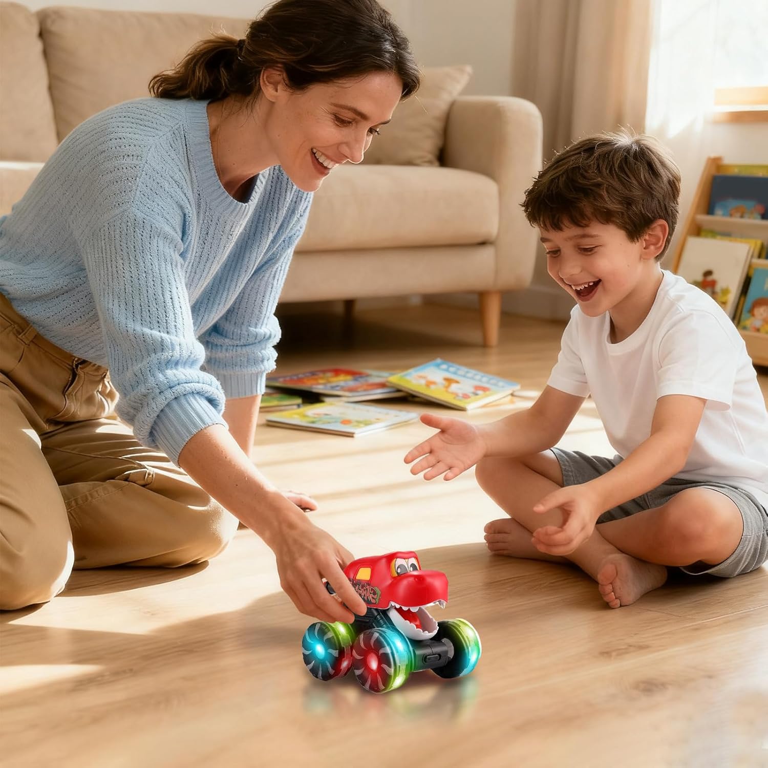 Giocattolo universale per tutti: i camion dei dinosauri offrono un'ampia compatibilità con l'età e incoraggiano il gioco fantasioso nei bambini piccoli, negli adolescenti e negli adulti. Stimolano la curiosità e migliorano le capacità di coordinazione attraverso attività interattive durante feste di compleanno o viaggi del fine settimana. Ciò consente a tutti di partecipare facilmente alle avventure dinamiche dei dinosauri e di essere pienamente coinvolti nell'azione per creare esperienze condivise. Prestazioni di luce vivide: il giocattolo dell'auto dinosauro integra vivaci luci multicolori delle ruote che producono straordinari effetti di luce e ombra. Questo spettacolo di luci cattura l'attenzione dei bambini e stimola i loro sensi durante le attività indoor e in condizioni di scarsa illuminazione, ideali per momenti di gioco creativi dopo il tramonto. Gli accattivanti effetti visivi arricchiscono l'esperienza sensoriale e assicurano un intrattenimento duraturo nelle situazioni di gioco serali. Questo giocattolo supporta un regalo natalizio che scalda il cuore: un giocattolo con camion di dinosauro che funge da regalo affettuoso per i bambini e offre eccitazione in occasione di compleanni, vacanze o celebrazioni annuali. I propri cari possono dimostrare attenzione attraverso il gioco significativo, che porta sorrisi e gioia condivisa in occasione di eventi orientati alla famiglia e incontri gioiosi, favorendo esperienze di legame nei momenti sociali. Auto dei dinosauri con controllo a spinta: l'auto giocattolo dei dinosauri ha una funzione di spinta e controllo che imita i ruggiti dei dinosauri. Coinvolge i bambini nelle esigenze di gioco di ruolo e sviluppa la coordinazione occhio-mano attraverso trigger di feedback tattili. Ciò rende il tempo di gioco sia educativo che divertente con attività indoor o outdoor. Costruzione stabile delle ruote: la costruzione stabile delle ruote di queste auto dei dinosauri garantisce prestazioni affidabili anche in intensi scenari di collisione visiva e movimenti di potenza energici. Questa struttura robusta costituisce la base per emozionanti giochi di avventura simulati in una varietà di ambienti, dove i bambini possono godersi in tutta sicurezza ore di intrattenimento a tema, fornendo un'esperienza di gioco duratura e sicura su una varietà di superfici