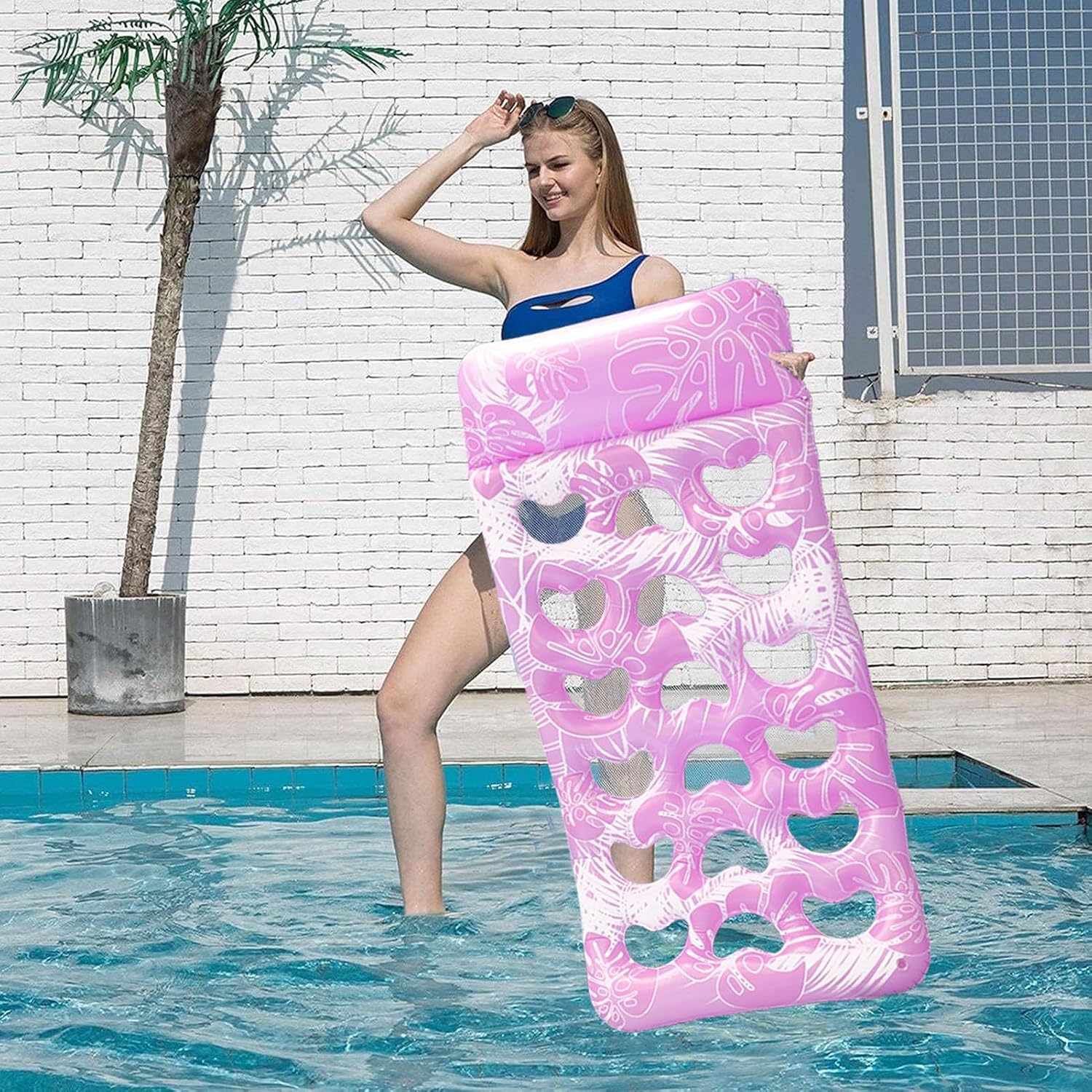 Massimizzare il comfort durante il rilassamento 'acqua con una prestito al supporto ergonomico, incluso schienale ben progettato e un angolo di inclinazione che riducono la tensione sul collo e sulla schiena mentre galleggia senza sforzo Questa piscina float fonde modelli eleganti con un tema foglia tropicale di ispirazione estiva, creando un rilassante ed evocando la caratteristica di una vacanza esotica Con materiale in PVC robusto e resistente ai raggi idrici e UV, questo robusto galleggiante di piscina offre prestazioni durature, soddisfacendo perfettamente gli utenti adulti che cercano comfort e affidabilità Dotato di un portabicchieri ben posizionato, questo galleggiante in piscina assicura che le bevande rinfrescanti siano spesso nelle vicinanze, combinando la praticità con stabilità per prevenire le fuoriuscite e mantenere le bevande saldamente in posizione in ogni momento Adatto alle piscine e ideale per spiagge o laghi, questo galleggiante gonfiabile si adatta perfettamente a varie località garantendo più divertimento in ambienti d'acqua con buona stabilità e comfort