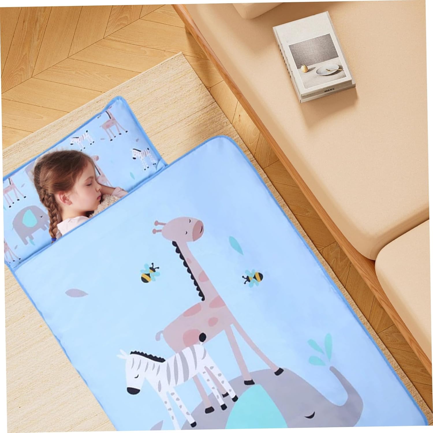 Facile da pulire e mantenere: il materiale liscio in fibra sintetica è semplice da pulire o lavarsi in lavatrice, aiutando i genitori a mantenere il tappetino fresco e igienico con uno sforzo minimo. Piegabile e portatile: il sacco a pelo da 49x20 pollici si piega in modo compatto per una facile conservazione e trasporto, rendendolo conveniente per viaggi, pigiama party o utilizzo della scuola quotidiana. Studio di animali da cartone animato divertente: adornato con un design di animali da cartone animato giocoso che i bambini amano, aggiungendo un tocco allegro al tempo del pisolino e incoraggiando i bambini a riposare. Design del cuscino incorporato: viene fornito con un cuscino lussuoso e integrato per sostenere la testa e il collo di tuo figlio, garantendo una postura per dormire più comode ed ergonomiche. Tessuto morbido e confortevole: realizzato con delicata fibre sintetica, questo tappetino per bambini offre un'accogliente superficie per dormire che aiuta i bambini a riposare pacificamente a casa, in età prescolare o all'asilo.