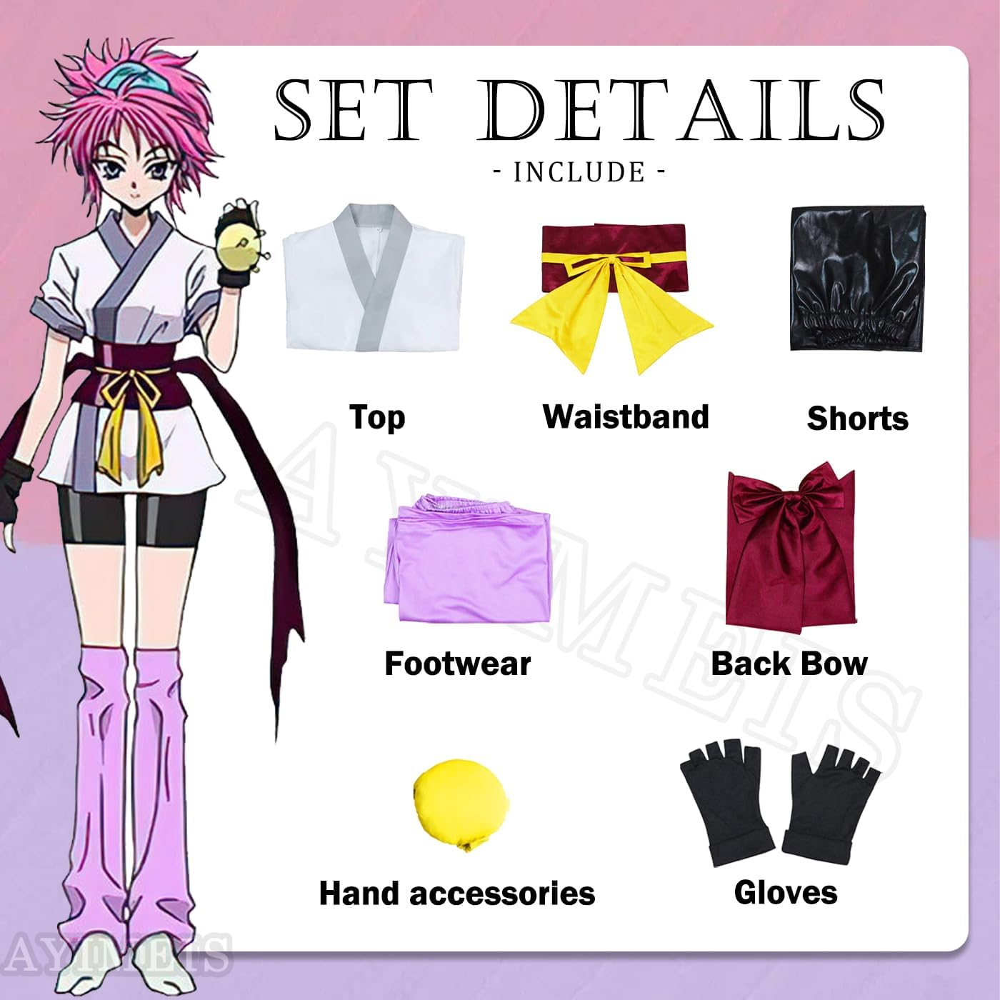 【Il pacchetto include】 - Top *1, Cintura *1, Pantaloncini *1, Copripiedi *2, Nodo posteriore *1, Accessori per le mani *1, Guanti *2 (come mostra l'immagine). 【Materiale principale】 - Poliestere. Realizzato in materiale di alta qualità, morbido, comodo da indossare e abbastanza resistente. 【Caratteristiche dell'abbigliamento】 - Costume Cosplay di Hunter X Hunter Machi, Ripristinando i dettagli dell'abbigliamento di un personaggio animato, con un set completo di accessori, consente di completare facilmente il gioco di ruolo. 【Ampia applicazione】 - Perfetto per feste in costume a tema, festival, Natale, Halloween, carnevali, feste, performance sul palco, fotografia, Comic Con, Cosplay ecc. 【Riferimento taglia】 - Per assicurarti di ottenere una taglia adatta a te, fare riferimento alla nostra tabella delle taglie prima dell'acquisto (ultima foto).