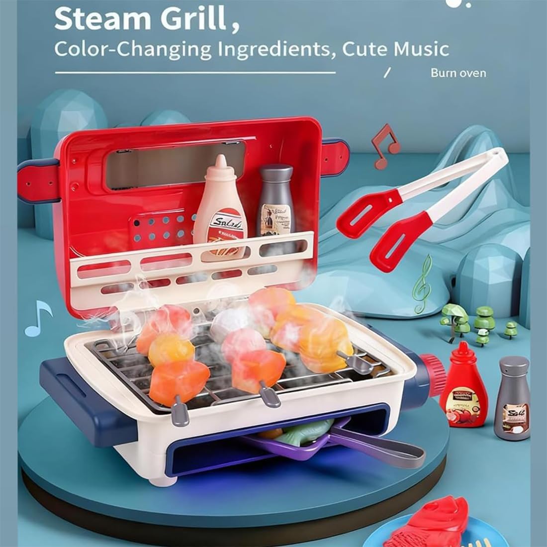 【Lifelike Sensory Experience】Features color-changing food (sausages, fish, chicken wings) that shifts from "raw" to "cooked" with a button press. Plus sizzling sounds, glowing grill lights, and real steam (add water to activate) to mimic a true BBQ cookout 【Easy & Engaging Interaction】Barbecue grill toy set simple one-button operation for lights/sounds, and a drain valve for steam—no complex setup. Kids can flip, grill, and "serve" with included tools, keeping them immersed in hands-on play 【Skill Development】BBQ Grill Toys encourage hands-on exploration, encouraging children to experiment with different cooking techniques and role-play, fostering creativity and problem-solving abilities 【Complete Accessory Set】Includes 30+ pieces—grill tools, baking trays, tongs, plates, skewers, seasonings, color-changing food, and cutting playsets. Offers endless pretend BBQ combinations, ideal as a gift for birthdays, Christmas, or everyday fun 【Creative Gift】Kids Play Kitchen Toys provide an authentic cooking experience, making them an ideal gift for any occasion, including birthdays for both boys and girls