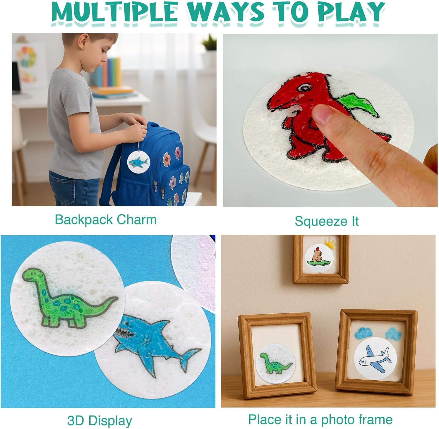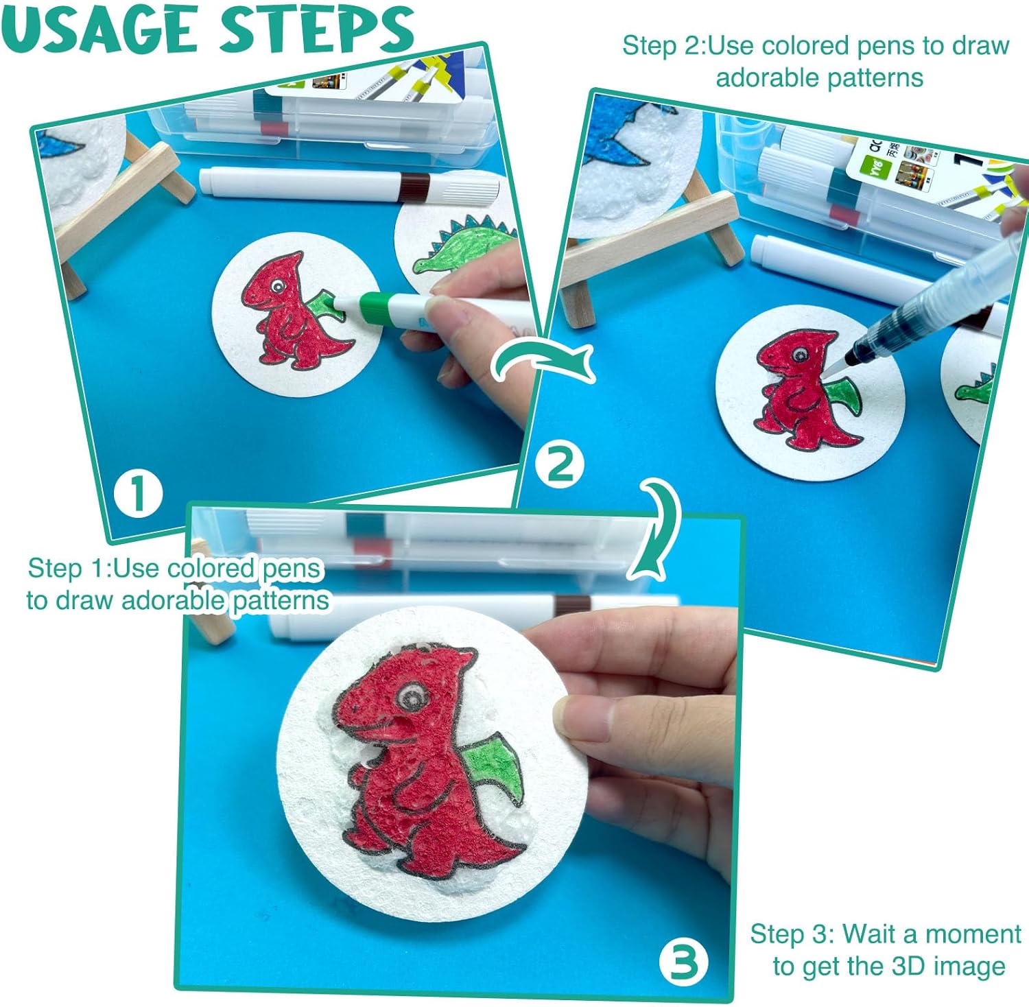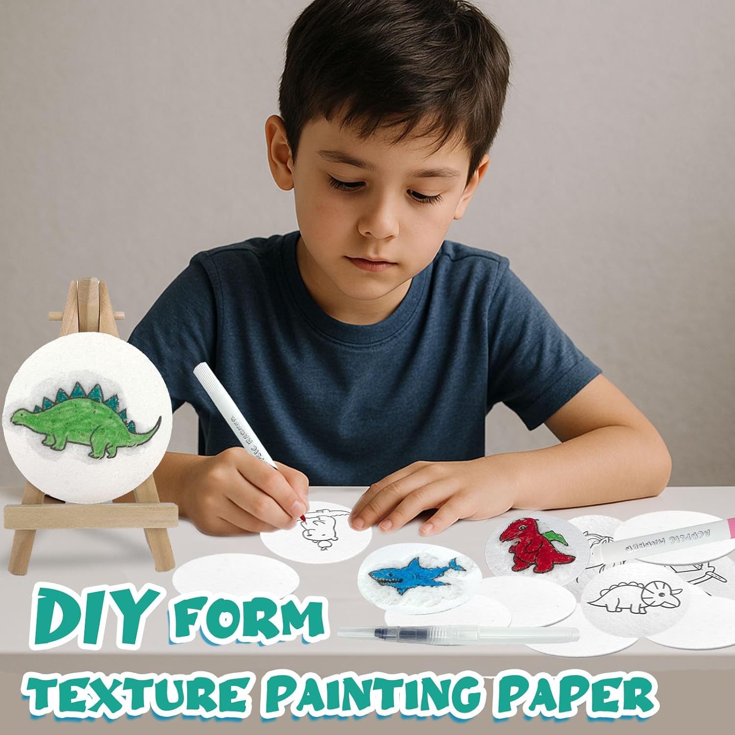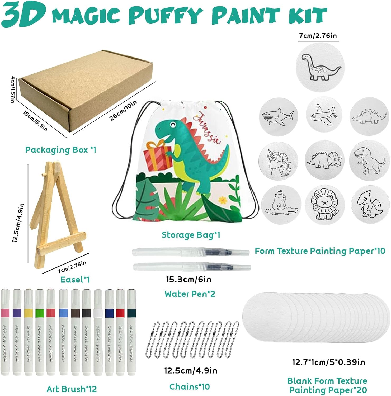 【Magic Puffy Paint】Questa carta è realizzata con una formula unica che trasforma i dipinti piatti in opere 3D rialzate semplicemente disegnando sulla carta e poi lasciando cadere acqua sulla carta soffice strutturata con un pennello d'acqua. I bambini possono creare prodotti finiti unici e vividi in base alla loro immaginazione. Questo incredibile set di vernici è adatto per giochi interni, viaggi, aula, artigianato, biglietti di auguri fai da te, regali o decorazioni per la camera, ecc 【Contenuto del Kit】 Il kit di pittura magico comprende 12 pennelli acrilici, 2 pennelli per l'acqua, 30 fogli rotondi di soffice carta testurizzata (10 modellate e 20 vuoti), 10 catene di perline decorative, 1 mini cavalletto e 1 sacchetto. (Devi aggiungere acqua nella penna da solo) 【Pittura Creativa Illimitata】 Ci sono 10 pezzi di carta a motivi fantasia nel set che possono essere colorati dai bambini stessi e 20 pezzi di carta vuota che possono essere usati dai bambini per disegnare i loro motivi preferiti con la loro immaginazione. Dopo aver disegnato i colori con penne di vernice, è possibile trasformare i motivi piatti in lavori tridimensionali con un pennello leggero del pennello d'acqua 【Interazione per Figli Genitore】 Semplice da usare, i genitori possono facilmente guidare i loro figli a creare, al fine di migliorare le loro capacità di disegno e aumentare l'interazione tra genitori e bambini. La concentrazione dei bambini sul disegno consente loro di ridurre l'uso di prodotti elettronici. Adatto per Natale, Giornata dei bambini, Pasqua, Ringraziamento, compleanno e altri regali per le vacanze speciali 【Materiale Ambientale】 Il set è disponibile in una scatola di cartone vuota, non esiste un motivo stampato sulla scatola di cartone e la borsa per coregne nel set può essere utilizzata più volte per lungo tempo. Questo piccolo design può proteggere meglio il nostro pianeta