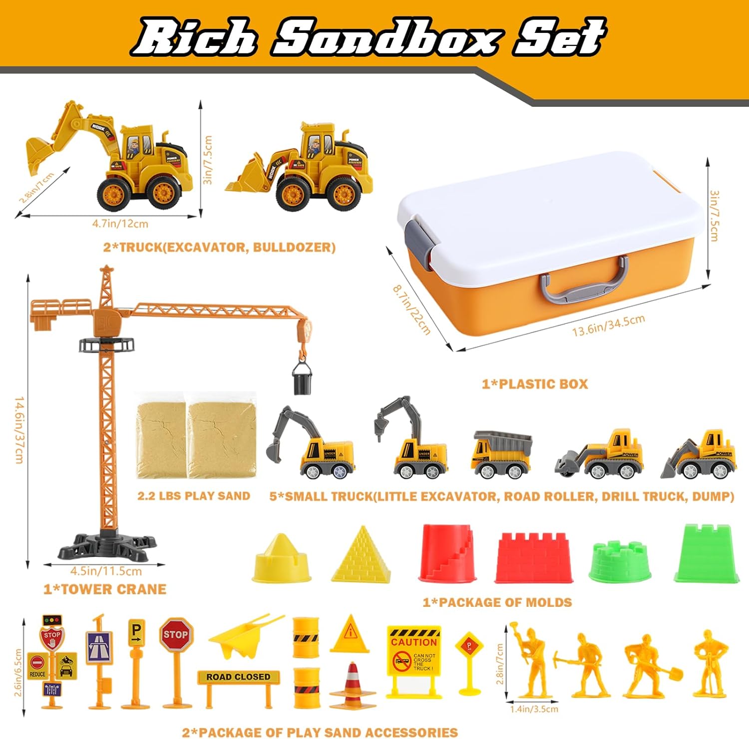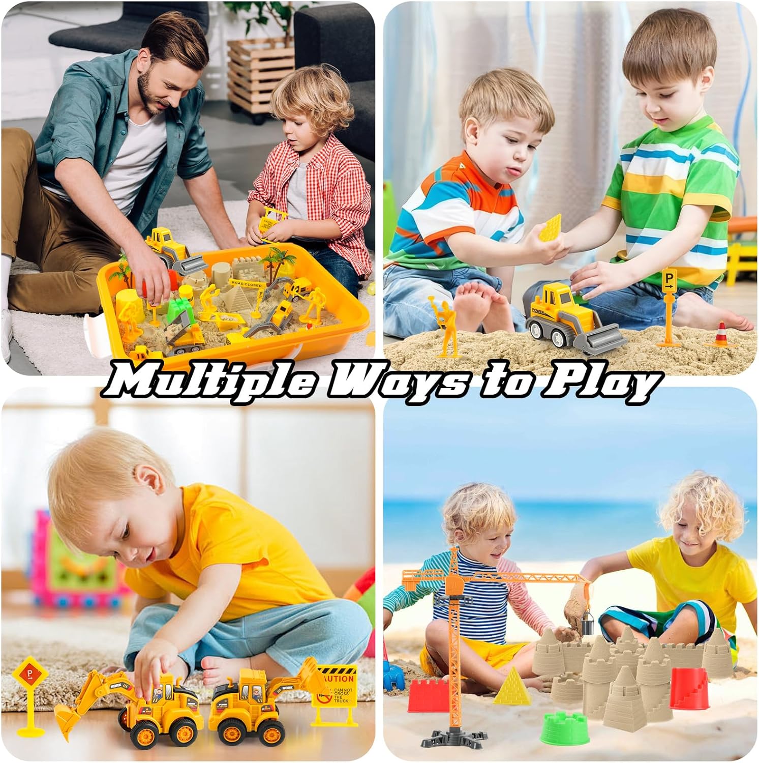 【Tutto in un set】Sembra essere una rovina, ma abbiamo fornito tutto il lavoro e gli strumenti necessari per il cantiere. Credo che i bambini possano sviluppare pienamente la loro immaginazione e comandare ai lavoratori e ai veicoli di costruzione di pianificare e costruire città. Questo giocattolo migliora le sue conoscenze linguistiche, sofisticata motoria, abilità sociali e coordinamento mano-occhio. 【100% rispettoso dell'ambiente e non velenoso】La nostra sabbia è progettata in modo che si incolla, si allunga bene e non aderisca alle vostre mani, in modo che sia facile per i bambini modellarlo. Questa sabbia ha poca polvere ed è ideale per la formazione e lo scavo. Il peso di 990 grammi è sufficiente per i bambini per giocare. Il nostro giocattolo sensuale è dotato di un modello di plastica di grande capacità nella dimensione L: 34,5 * L: 22,5 * H: 7cm. Le scatole di plastica sono molto facili da trasportare. 【Accessori di lusso e realistici】Il corpo dei nostri veicoli da costruzione è composto da plastica ABS e i pneumatici in gomma. Alcuni componenti dei veicoli sono mobili: l’excavatore ruota, il tipper ribalta e la foglia del bulldozer sale. Così i bambini capiscono come funzionano i camion. Le figure e i cartelli dei lavoratori sono realistici, stabili e senza angoli taglienti – adatti ai bambini e sicuri. 【Il regalo DIY perfetto】I nostri giocattoli sensoriali con 2 libbre di sabbia, 2 grossi camion da costruzione (bulldozer, escavatore), 6 piccoli camion da costruzione, statue di lavoratori della costruzione e segnalazioni stradali, 6 forme di castello, 1 pendente, 2 alberi di cocco e una pendente, sono il giocattolo ideale per i giochi all'aperto per bambini che mantengono i vostri bambini occupati per ore! 【Ideal Boys Educational Learning Toy】 È anche un buon giocattolo didattico. I bambini possono giocare il ruolo di lavoratori di costruzione mentre imparano abilità di costruzione. Può migliorare il coordinamento mano-occhio dei bambini, allenare il pensiero, rafforzare la loro fantasia e promuovere il lavoro di squadra dei bambini. Inoltre ridurrà il tempo che i bambini giocano con dispositivi elettronici.