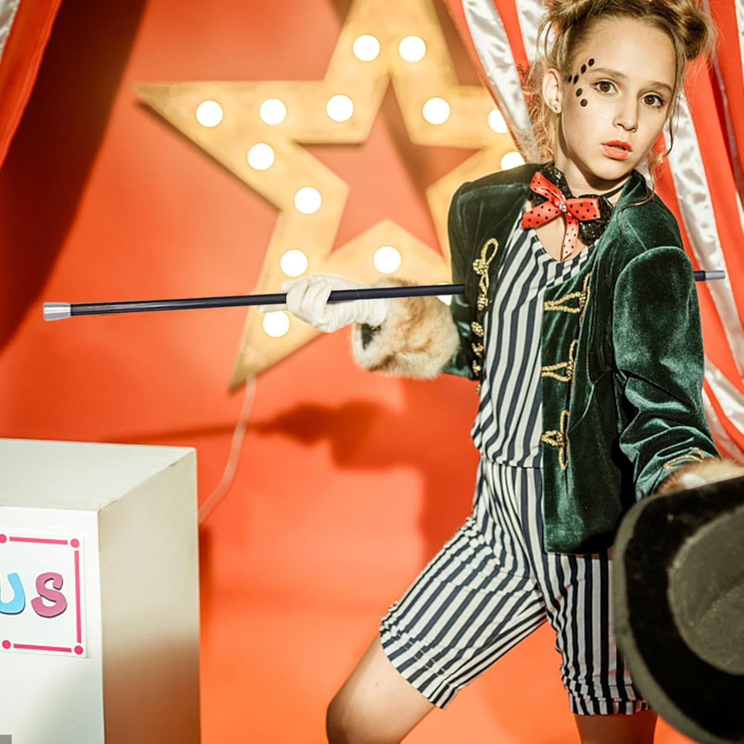 Appello al pubblico: il nostro bastone da ballo a doppia sezione consente a chiunque di eseguire illusioni o far scomparire oggetti, che attireranno il pubblico. Comodo da usare: utilizzando un design staccabile, il nostro bastone magico ti consente di regolare la lunghezza correttamente in base alle tue esigenze. Può farti sentire a tuo agio nell'usarlo. Non facile da rompere: realizzato in lega di alluminio di alta qualità, il nostro bastone magico staccabile è sicuro, durevole, resistente all'usura e non facile da rompere. Ampie applicazioni: La nostra canna da mago nero è ampiamente utilizzata. È adatto per maghi, artisti, artisti circensi, ecc. Non importa quale sia il tuo stato, può funzionare bene con te. Migliora l'effetto del costume: poiché il nostro bastone da ballo può migliorare notevolmente l'effetto del costume, è un ottimo accessorio per costumi. È molto pratico.