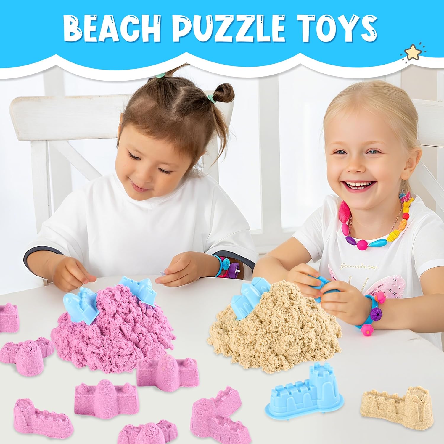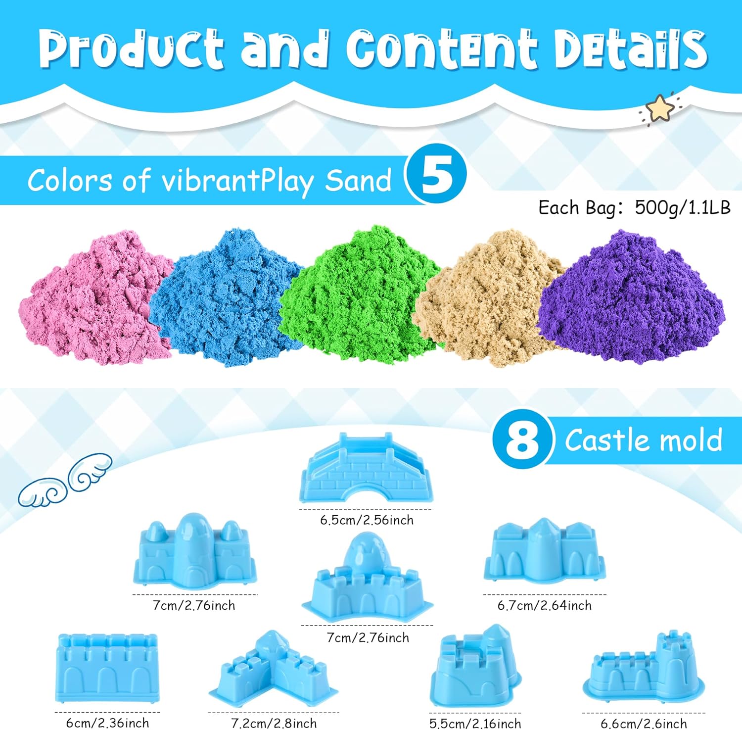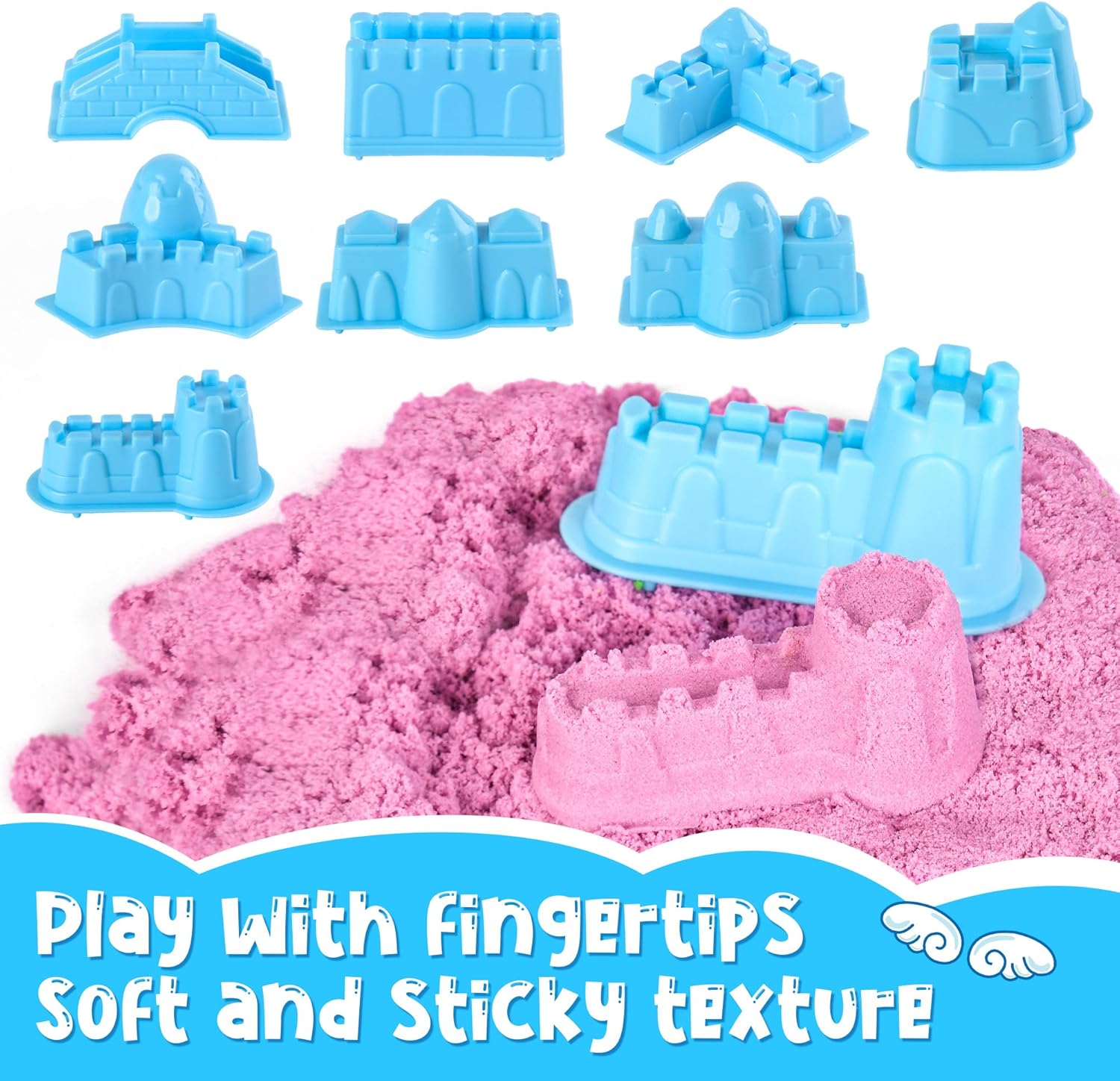 Set completo: 2,5 kg di sabbia magica modellabile in 5 colori vivaci (blu, rosa, viola, verde e sabbia) con 8 forme di castello, perfetta per giochi creativi, sensoriali, arte della sabbia e lezioni QUALITÀ ECCEZIONALE: la formula non adesiva, morbida e inodore facilita la modellatura e rimane pulita e maneggevole Pratico imballaggio: i sacchetti richiudibili mantengono la sabbia fresca e ordinata, quindi è facile da riporre e riutilizzabile TESTURA FORMABILE: l'eccellente mantenimento della forma assicura che le strutture create mantengano la loro forma, perfette per la costruzione di castelli di sabbia ricchi di dettagli SVILUPPO SENSORICO: ideale per promuovere le abilità tattili e la creatività dei bambini dai 3 anni in su attraverso esperienze di gioco pratiche