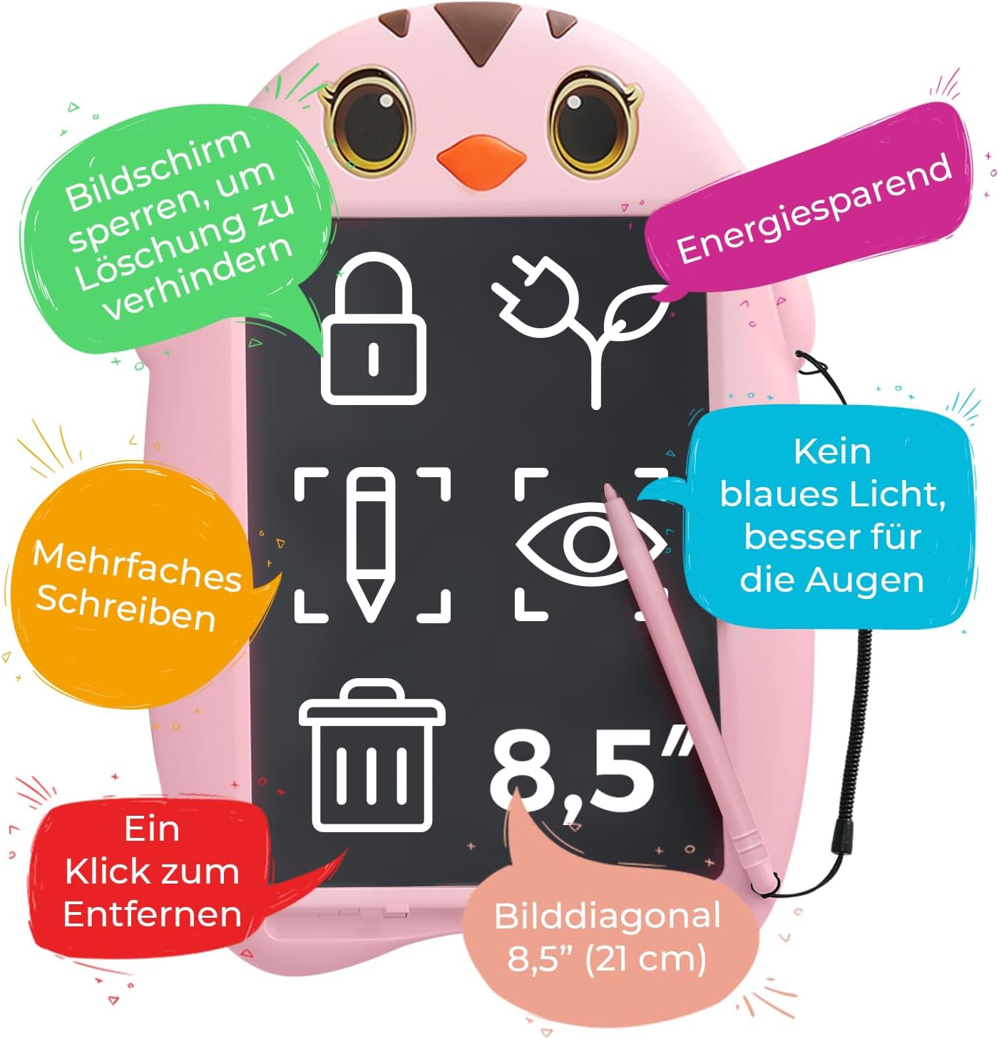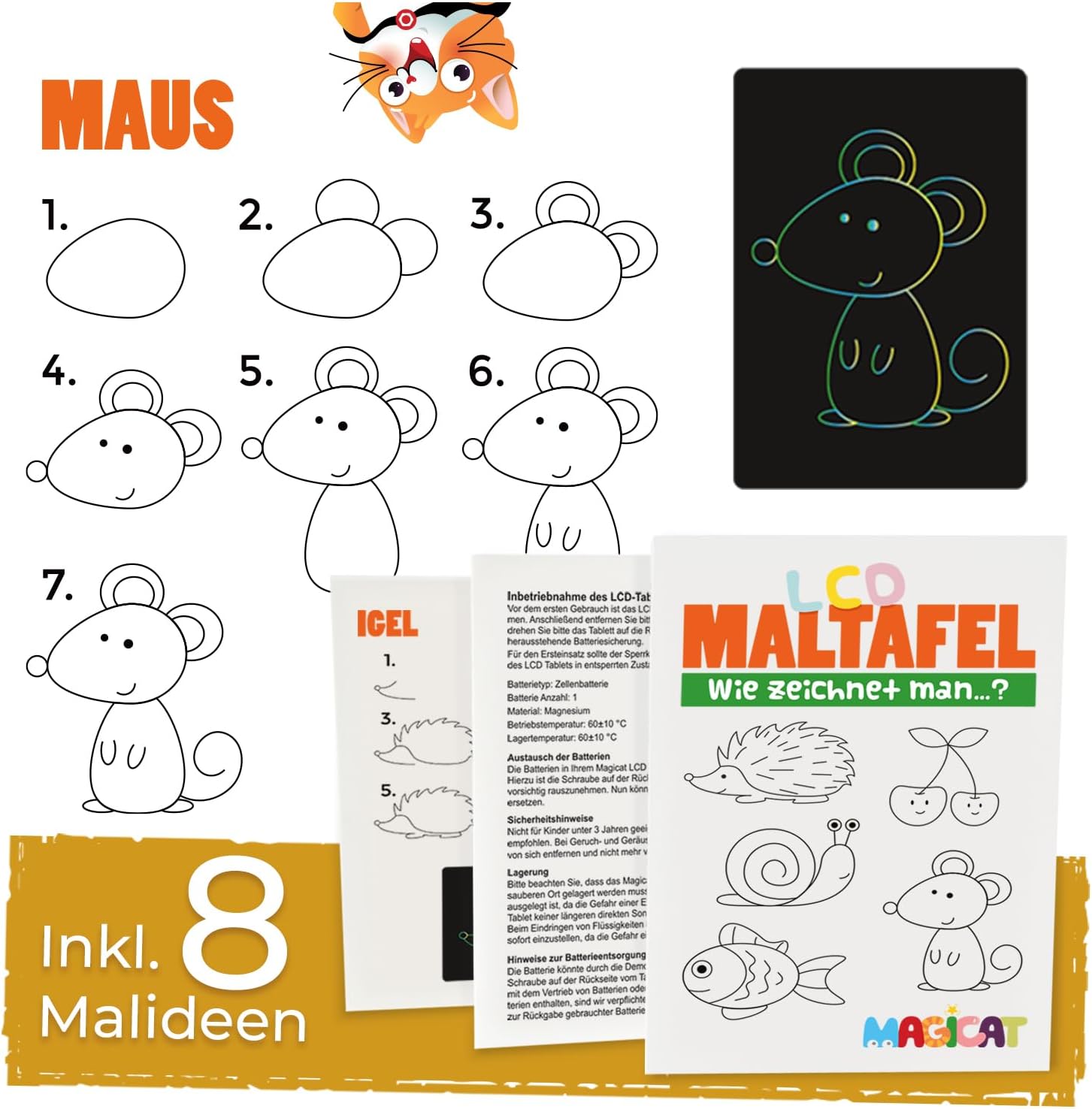 ✈️ Perfetto per i viaggi: a scuola, a casa, in macchina o in treno, la lavagna Magicat è ideale per i viaggi, i viaggi su strada e li intratterrà a lungo in vacanza. Ottimo giocattolo da viaggio: la nostra lavagna LCD è l'ideale per i bambini sugli aerei! Premiato da Warentest Online con valutazione 1.0, garantisce la massima qualità e ore di divertimento. Rispettoso dell'ambiente e della vista: risparmia carta e proteggi gli occhi dei tuoi bambini. Nessuna luce blu e molto efficiente dal punto di vista energetico. Perché qualità e durata sono la nostra più grande risorsa per i bambini Funzionalità interessanti: tuo figlio adorerà la funzione di cancellazione e blocco e lo schermo da 8,5 pollici! È una delle tante vacanze imperdibili per bambini e giochi per lunghi viaggi in macchina Facile per iniziare: abbiamo progettato appositamente 6 pagine da colorare per iniziare. Ottimo come aeroplano giocattolo per bambini, giocattolo per le vacanze dei bambini o regalo per il ritorno a scuola