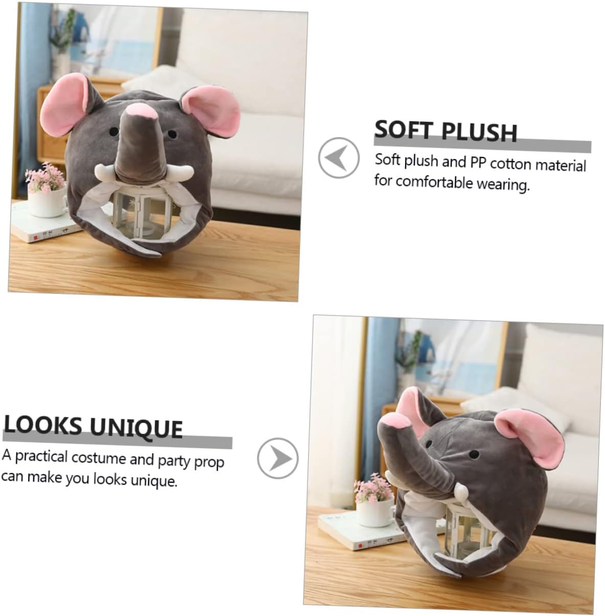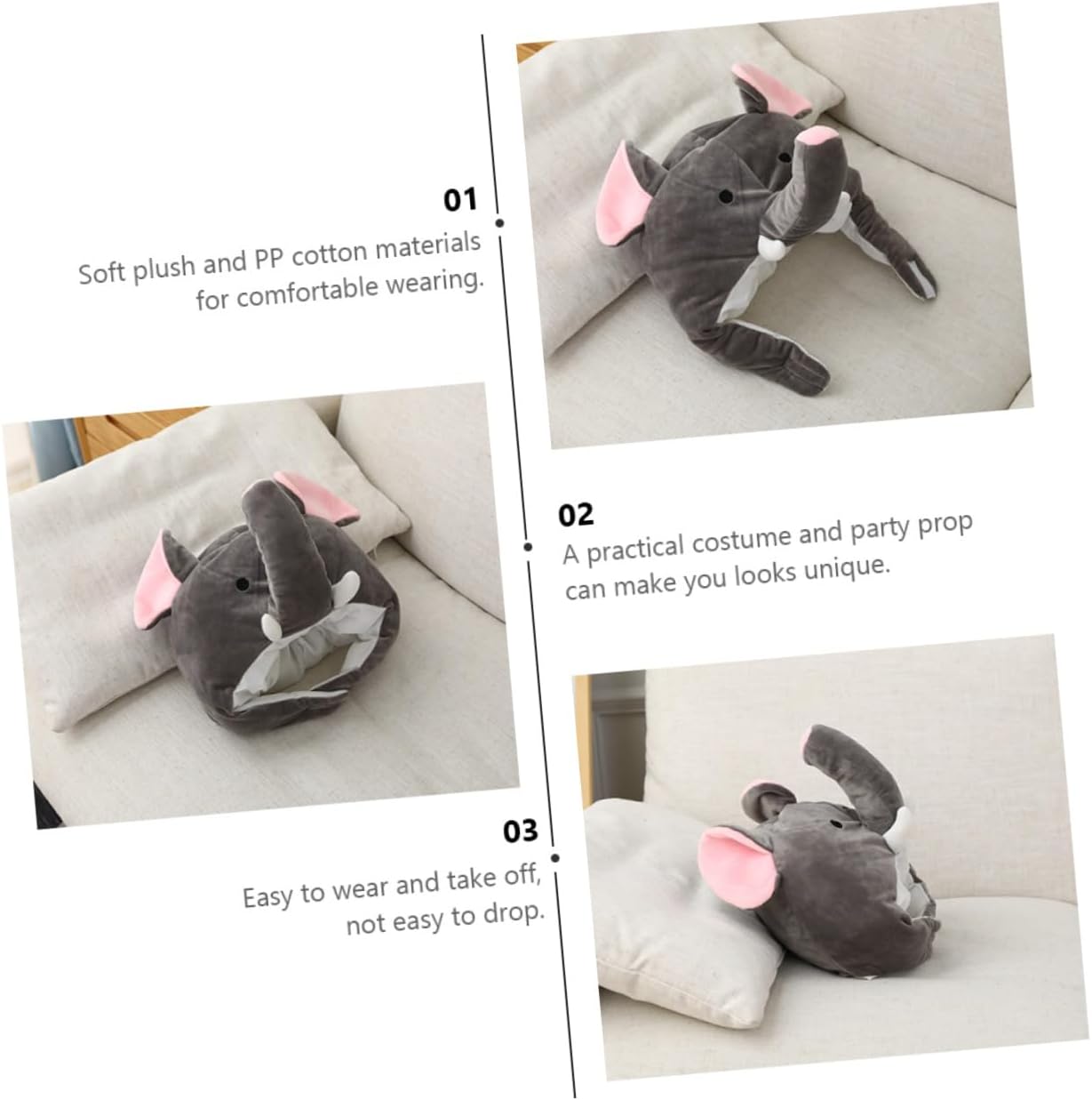 il pacchetto include 1 x cappello caratteristiche - materiale: peluche, oggetti di scena per cosplay in cotone pp. - : berretto da festa grigio. - dimensioni: circa 35,00x30,00x30,00 cm/13,76x11,79x11,79 pollici cappello a forma di elefante. - rendi il tuo cappello di peluche a forma di elefante accattivante, diverso e alla moda. - facile da indossare e da togliere, non da indossare, può essere un ottimo cappello da festa per oggetti fotografici. - morbido peluche e materiale di cotone, comodo da indossare con un giocattolo dalla forma divertente. - Accessori per cappelli dal design vivace, molto alla moda e squisiti a forma di elefante. - come supporto fotografico per rendere le tue foto più accattivanti. descrizione della merce cappello da festa stai ancora cercando un divertente cappello da festa, sei ancora preoccupato che le tue foto non siano accattivanti? il nostro cappello creativo a forma di elefante serve per scattare foto e decorare le feste, può abbellire i tuoi vestiti e farti distinguere dalla massa