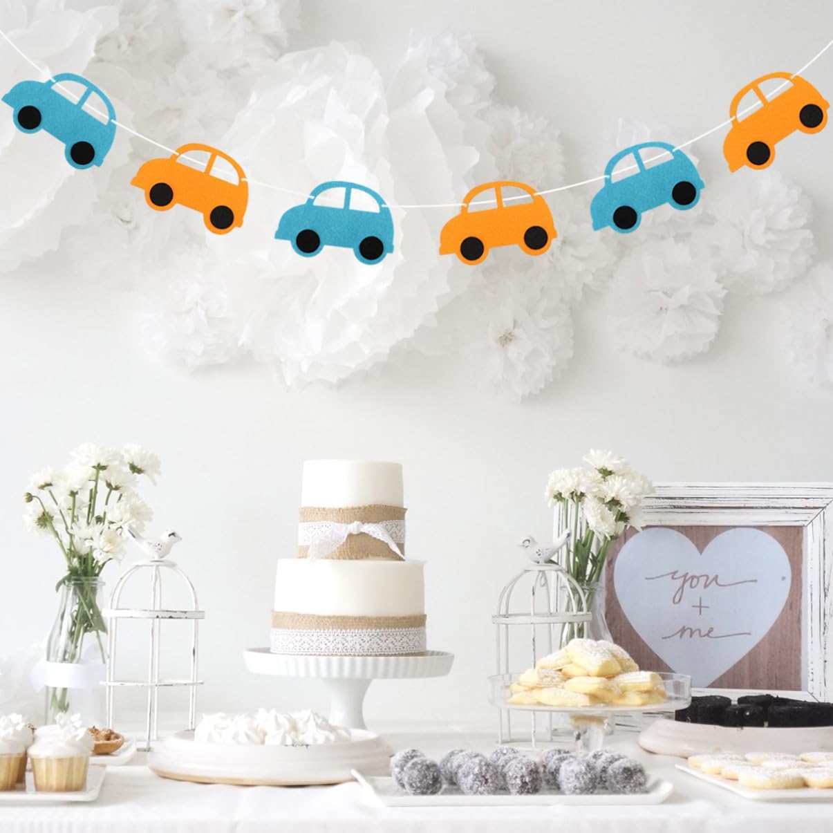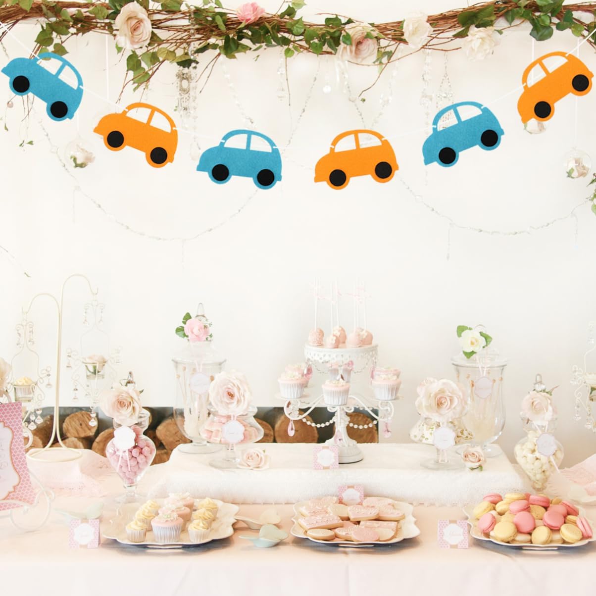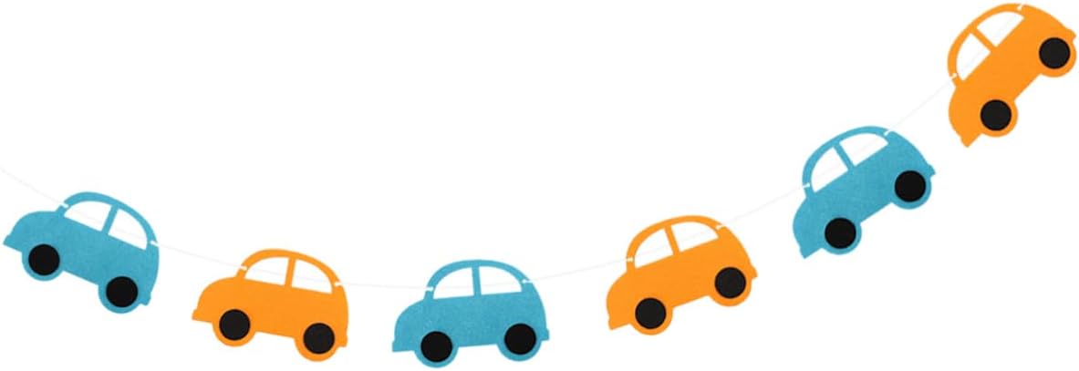 Banner creativo: è adatto a molte occasioni, come feste di compleanno, feste e così via. Bandiera della decorazione della stanza: il simpatico design del modello di auto dei cartoni animati lo rende adatto alla decorazione della festa di compleanno. Ghirlanda non tessuta: realizzata in tessuto non tessuto, la bandiera è di . Bandiere per auto: le usi per decorare le finestre, la stanza dei bambini o sugli alberi.