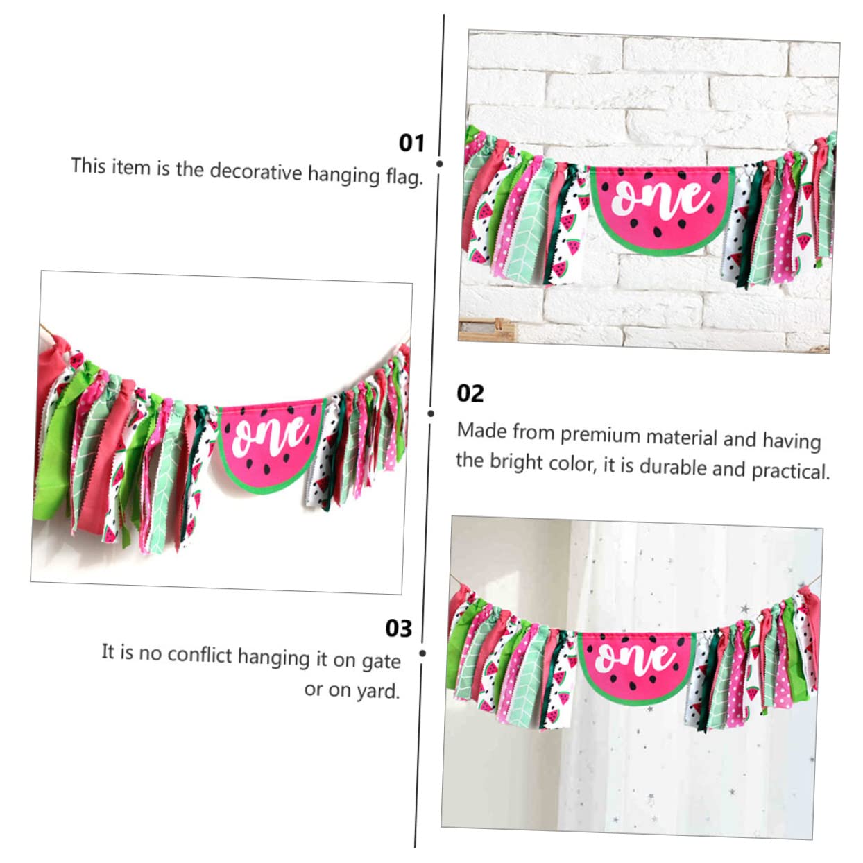 Decorazioni pendenti: usa la bandiera colorata come cortile personale, stadi, scuole, eventi importanti, celebrazioni di festival e così via, decorazioni per striscioni. Festa del primo compleanno: realizzata con pregevole fattura; tessuti colorati, buona sensazione tatto, strisce di stoffa decorative. Ghirlanda per seggiolone: ampio campo di applicazione: banchetti per vacanze/feste/articoli per feste per bambini e altre decorazioni per interni da giardino, decorazioni per seggioloni per il primo primo compleanno. Striscione di compleanno di un anno: la bandiera mette in risalto l'atmosfera della festa a tema, vivace e calda, è una decorazione diversa e speciale per la festa, il primo del primo compleanno. Ornamenti per feste: il design colorato aggiunge più atmosfera festosa alla tua festa, che ti fa trascorrere un meraviglioso festival, striscione del festival.