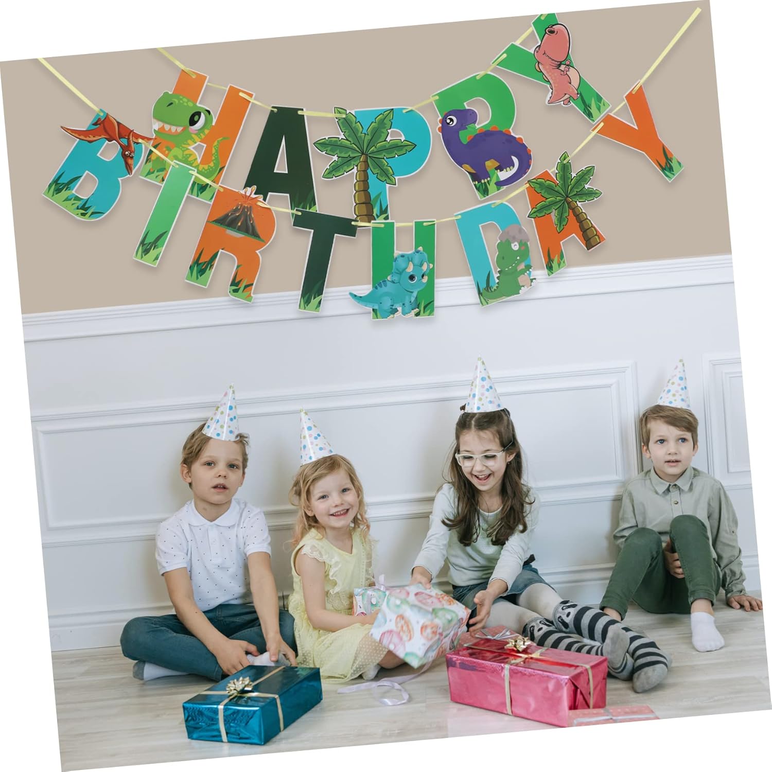 Striscione di compleanno da appendere con animali: aggiungi un'atmosfera alla festa di compleanno a tema dinosauri con queste decorazioni per feste, decorazioni per feste di compleanno con margherite. Banner di dinosauri: realizzato con materiali cartacei, puoi usarli per decorare la tua festa con sicurezza, forniture per feste di compleanno. Sfondo per la festa dei dinosauri: lo striscione può essere appeso ovunque su pareti, finestre, rami, porte, ecc., oggetto di scena per la festa di compleanno dei dinosauri. Pinata a margherita: facile da appendere in qualsiasi luogo per abbellire la tua festa, regalarti un'esperienza piacevole, striscione di compleanno. Banner con lettere: design adorabile e creativo con un piccolo dinosauro, i tuoi must come questi, banner di buon compleanno.