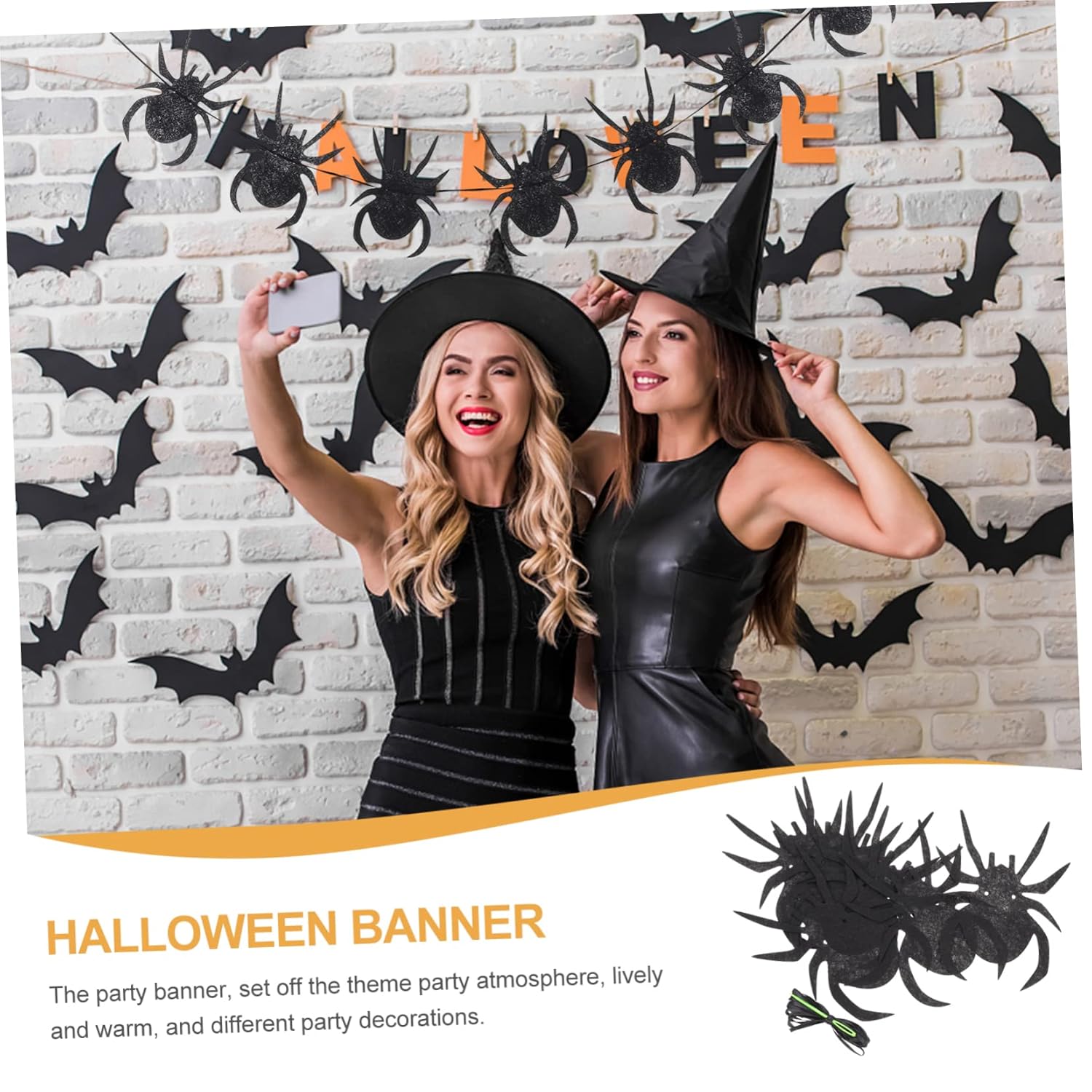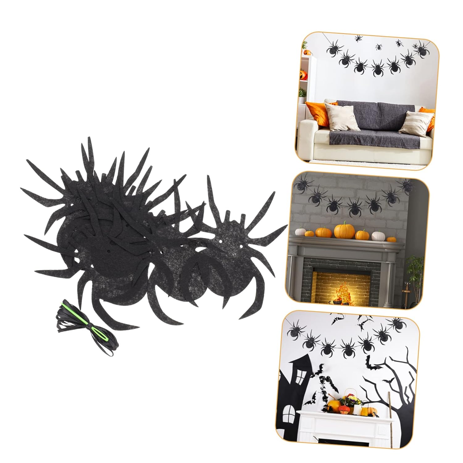 Oggetti di scena decorativi del festival: lo striscione della festa, che esalta l'atmosfera della festa a tema, vivace e calda, e diverse decorazioni per la festa, ornamenti di halloween. Ornamenti neri: questo striscione sarà un successo per il tuo evento o servizio fotografico, striscione sospeso. Banner in feltro di halloween: abbellimento per portare un divertimento avanzato e un extra alla festa, banner ragno. Decorazioni da appendere alla parete: decorazioni per feste in maschera di halloween, interni domestici, porte, pub, uffici, decorazioni di compleanno in ufficio. Oggetti di scena per la casa stregata: questo striscione è riutilizzabile, puoi riciclarli e metterli insieme per il prossimo utilizzo, decorazioni per halloween.