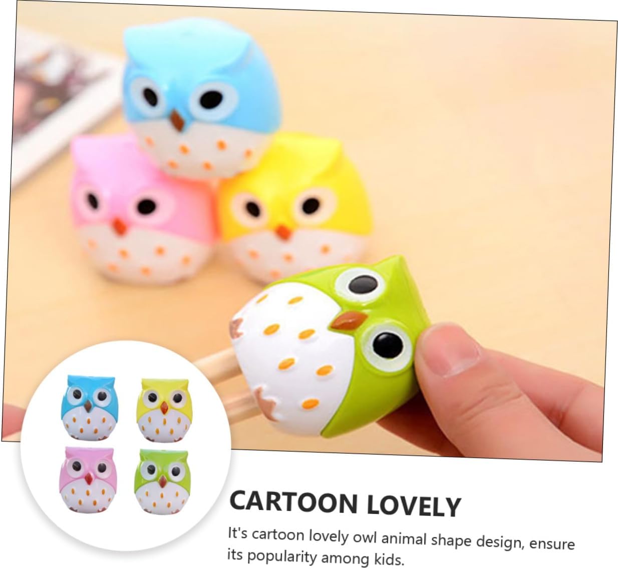 Temperamatite per bambini: insegnanti e genitori possono utilizzare questi temperamatite come ricompensa per raduni o premi di concorsi. Forniture di cancelleria per studenti scolastici: bellissimi regali per bambini e amici all'inizio del semestre o del compleanno. Temperamatite kawaii: * puoi inviarlo ai tuoi amici come di compleanno, di apertura, di capodanno, ecc. Temperino carino: * il suo design a forma di animaletto a forma di gufo adorabile, ne garantisce la popolarità tra . Temperamatite per studenti: ha una struttura in plastica resistente per durare a lungo. dimensioni compatte per il viaggio o lo stoccaggio.