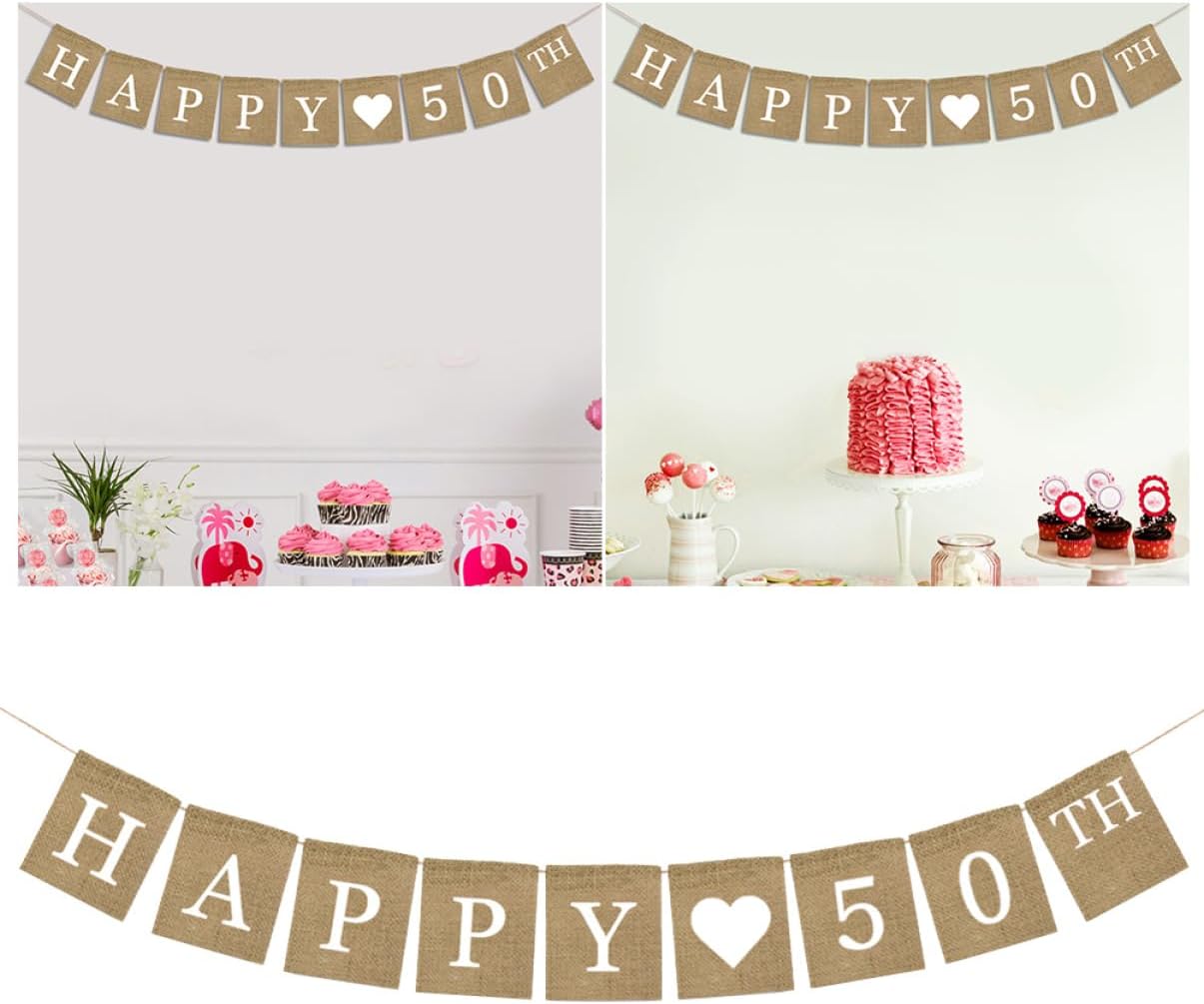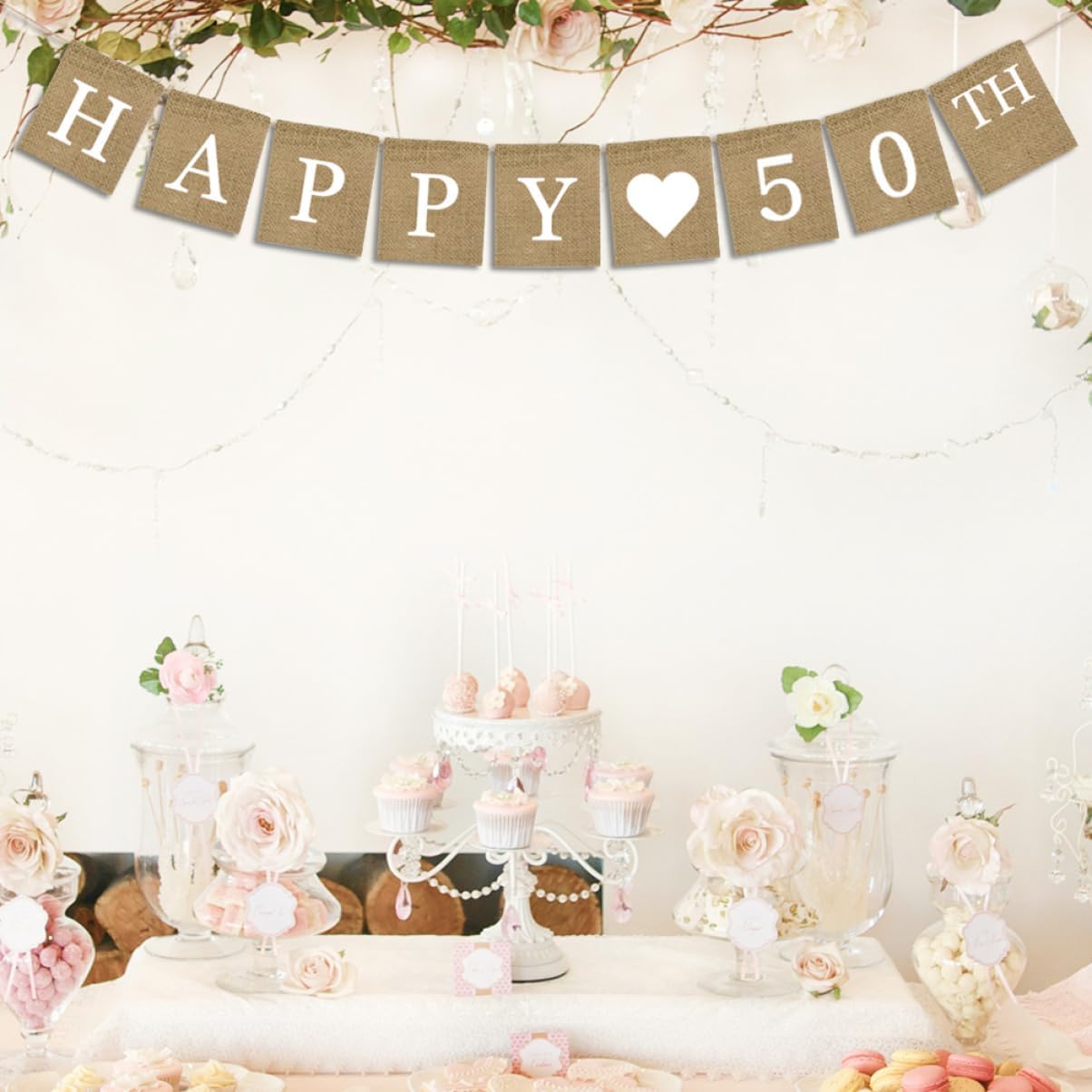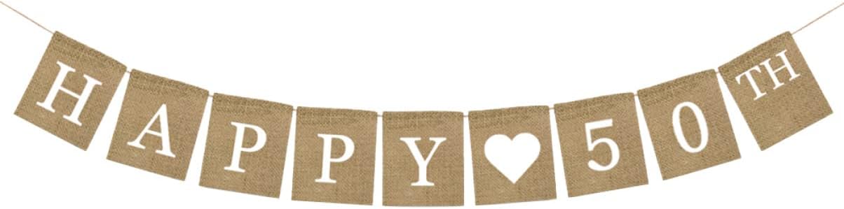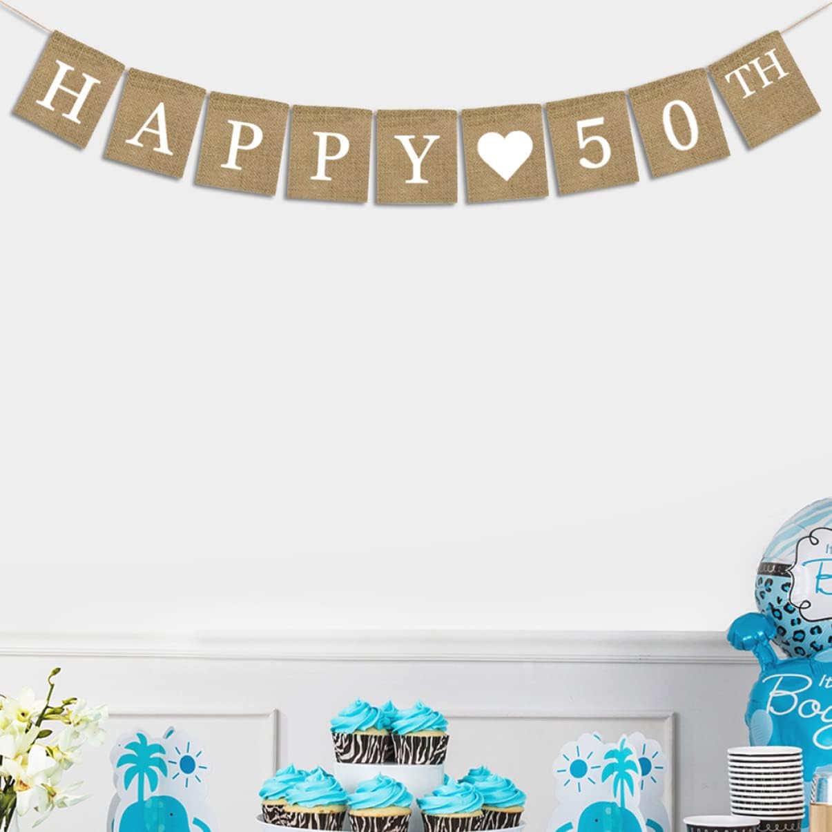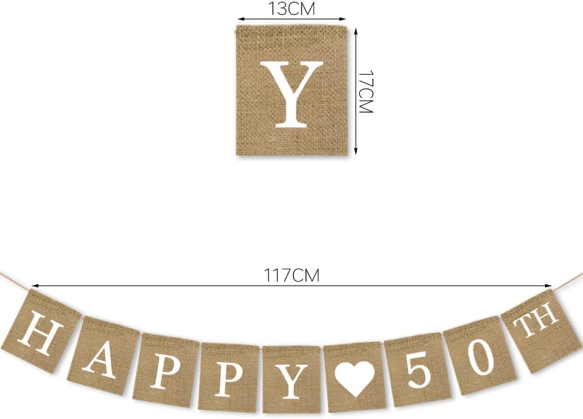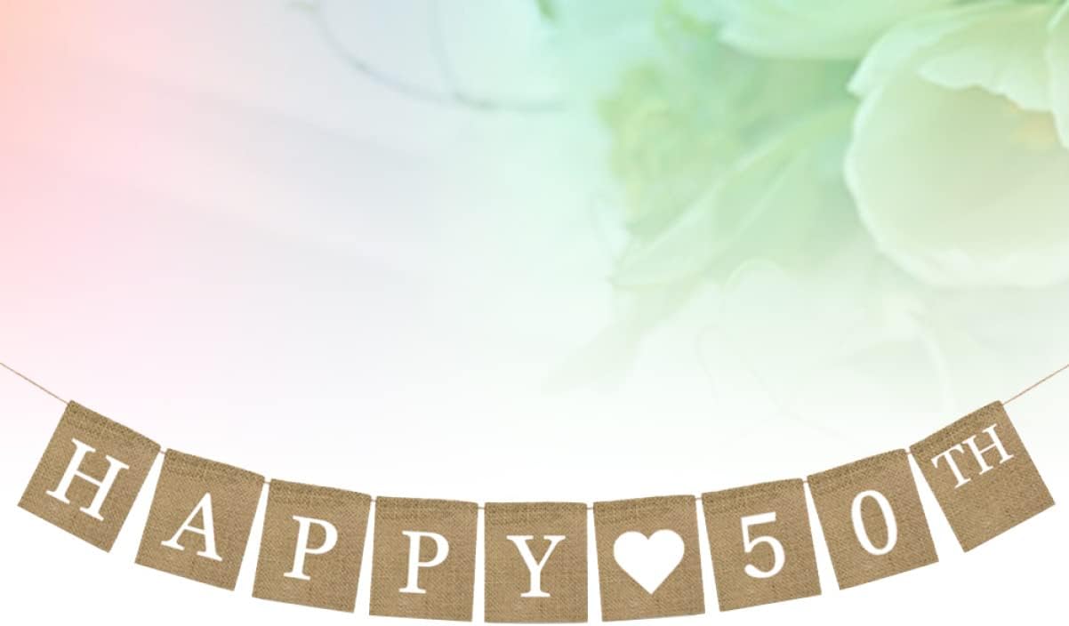 Banner per feste natalizie: la parola scritta "happy 50", mostra completamente il tema della festa: una festa per festeggiare il 50esimo compleanno, bandierine appese per feste. Bandierine per feste di 50 anni: aggiungi un'atmosfera piacevole alla tua festa di 50 anni, striscioni. Decorazione da appendere per compleanno: i bordi della bandiera sono trattati con un processo raffinato per renderli più forti e per evitare lo sfilacciamento, la stamina di buon compleanno. Guirnaldas para: può essere appeso a pareti, finestre, rami di alberi, porte e qualsiasi altro luogo, eccellente decorazione per interni o esterni, bandiera per feste di compleanno. Banner di compleanno a coda di rondine: è una soluzione decorativa per feste di compleanno, feste danzanti, banchetti, carnevale, ghirlande per l'arredamento.