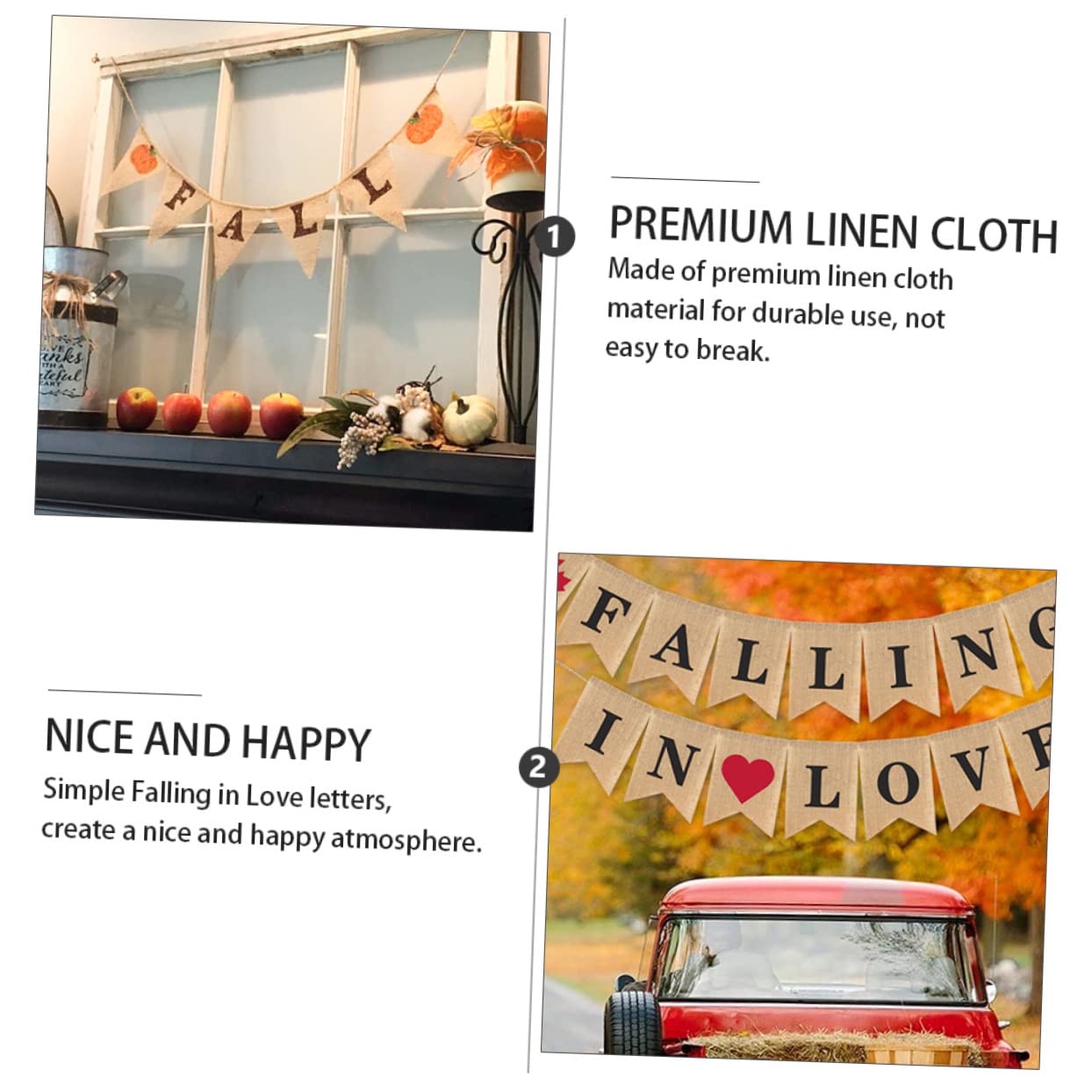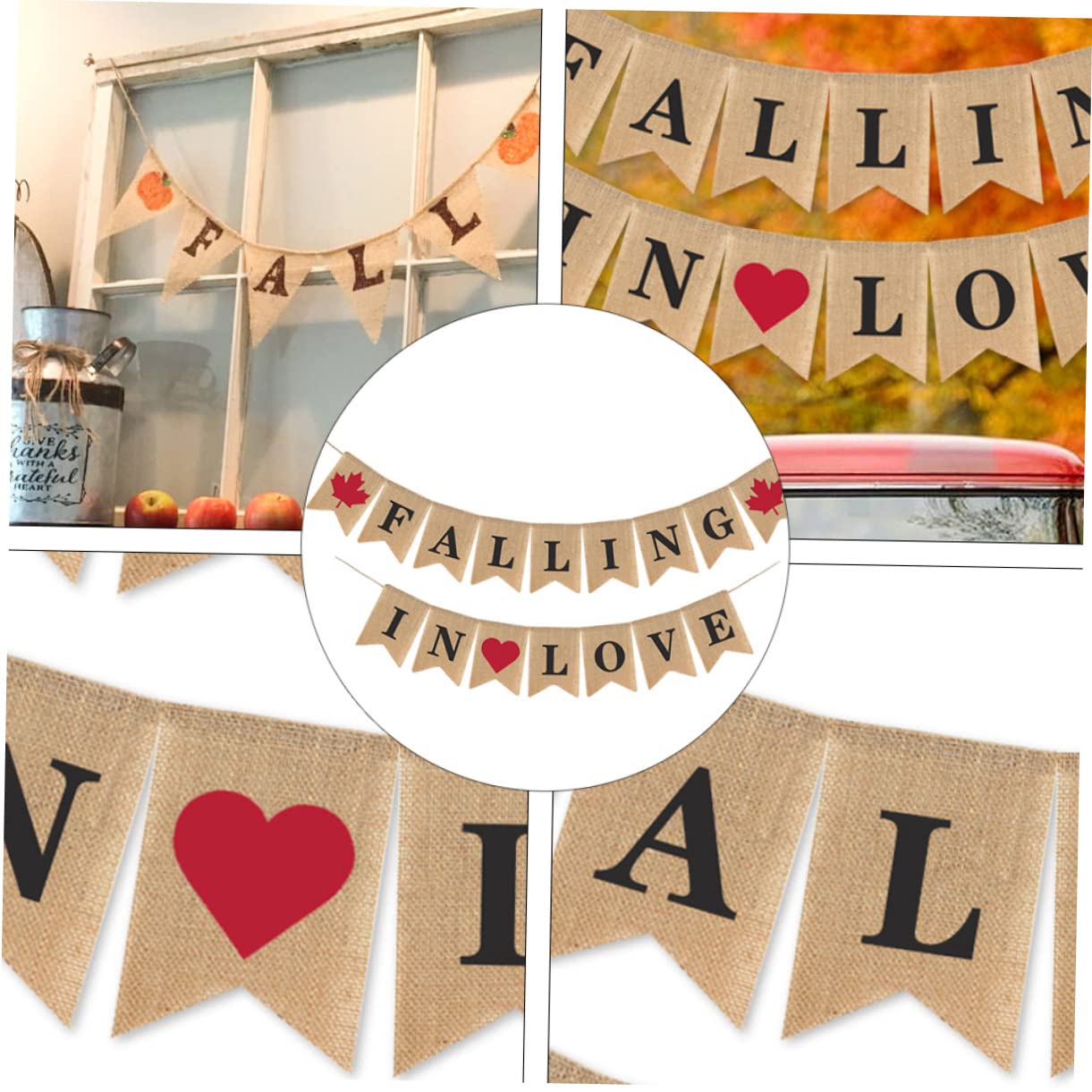 Decorazioni per matrimoni autunnali: semplici e alla moda per il matrimonio, molto fresche e chic per la decorazione, l'arredamento del matrimonio. Ghirlanda di striscioni a cuore: il materiale dello striscione nuziale è addensato e, meravigliosa decorazione per la tua festa di matrimonio, striscioni nuziali in tela. Banner autunnale in lino: realizzato in tessuto di lino di alta qualità per l'uso, non facile da rompere, banner da appendere alla parete del matrimonio. Decorazioni per bandierine nuziali, appositamente per san o decorazioni per feste di matrimonio, striscioni per feste di fidanzamento. Striscione per innamoramento: facile da appendere muro, sopra il tavolo, nel corridoio e sull'albero, ecc., puoi appenderlo sopra il dessert o il tavolo, o sotto il portico, ghirlanda autunnale.