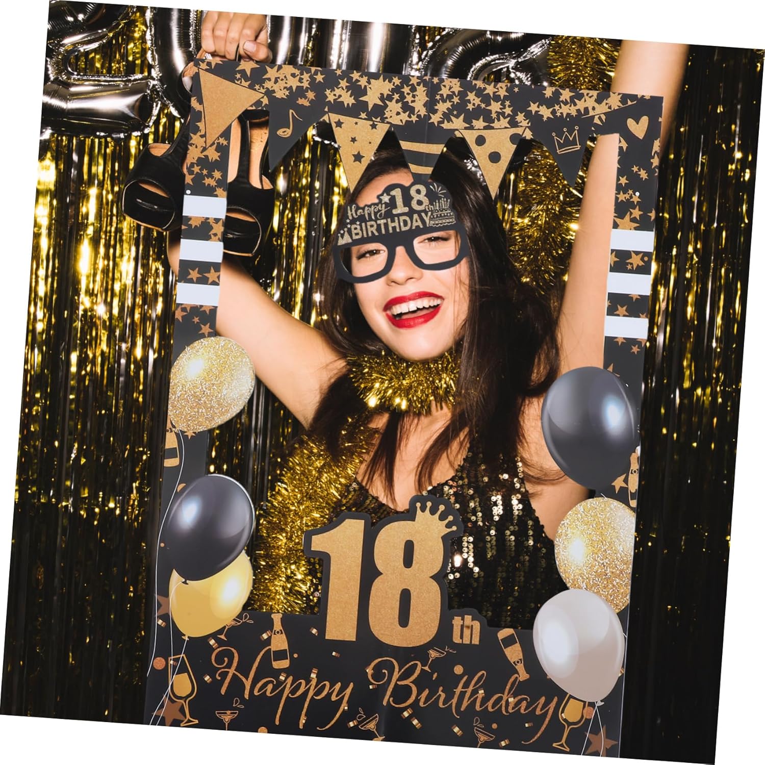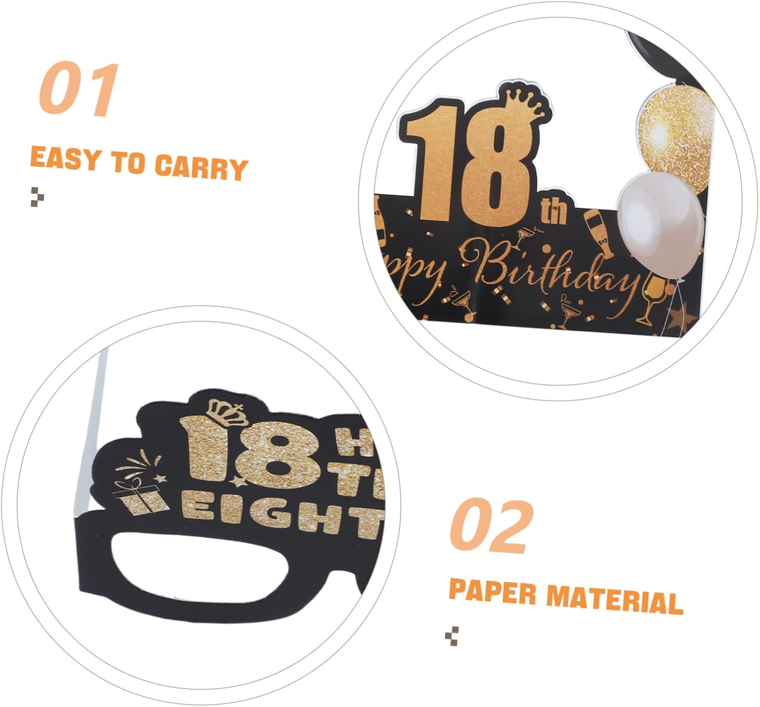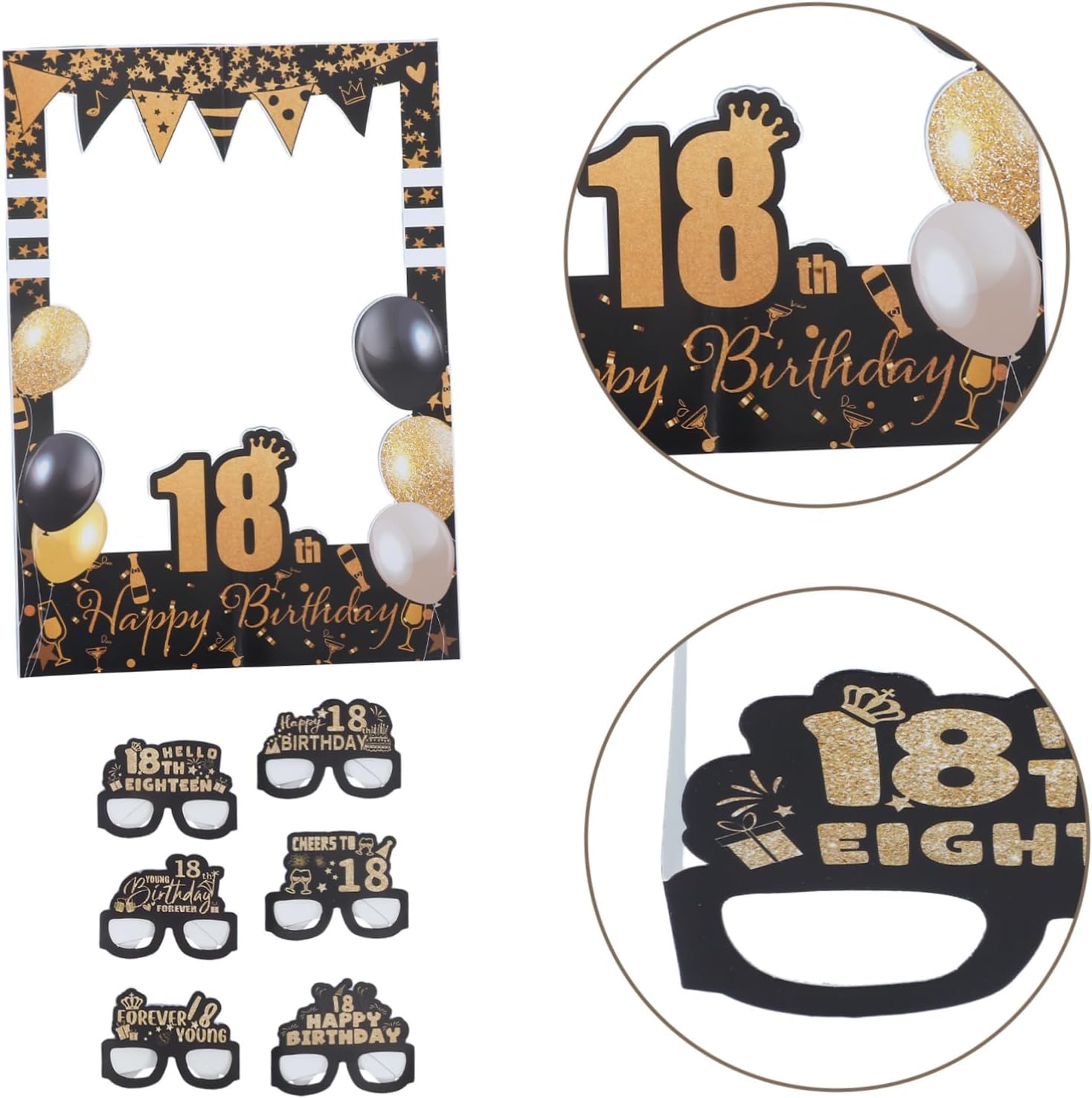 Aspetto sofisticato: il design in carta dorata e nera conferisce a questi oggetti di scena un aspetto sofisticato ed elegante, adatto per aggiungere un tocco di a qualsiasi festa di compleanno, occhiali da sole per feste di compleanno, occhiali da sole per feste di compleanno Design chic: l'elegante design dorato e nero di questi oggetti di carta aggiunge un tocco alla moda a qualsiasi festa di compleanno, rendendoli i preferiti tra i giovani adulti, bicchieri di carta per compleanno, cornice per foto di compleanno E robusti: realizzati in carta, questi oggetti di scena sono robusti e resistenti, garantendo che possano resistere all'eccitazione e al divertimento di qualsiasi festa di compleanno, oggetti di scena per selfie per feste, accessori per cabine fotografiche Adatto per le foto: questi oggetti di scena sono adatti per creare foto divertenti e memorabili, migliorando il divertimento generale della tua festa di compleanno, accessori per la festa del 18° compleanno, cornice per foto del 18° compleanno Migliora l'esperienza fotografica: questi oggetti di scena sono ideali per creare foto divertenti e memorabili, aggiungendo un ulteriore livello di divertimento alla tua festa di compleanno, occhiali per il 18° compleanno, kit per selfie per la festa di compleanno