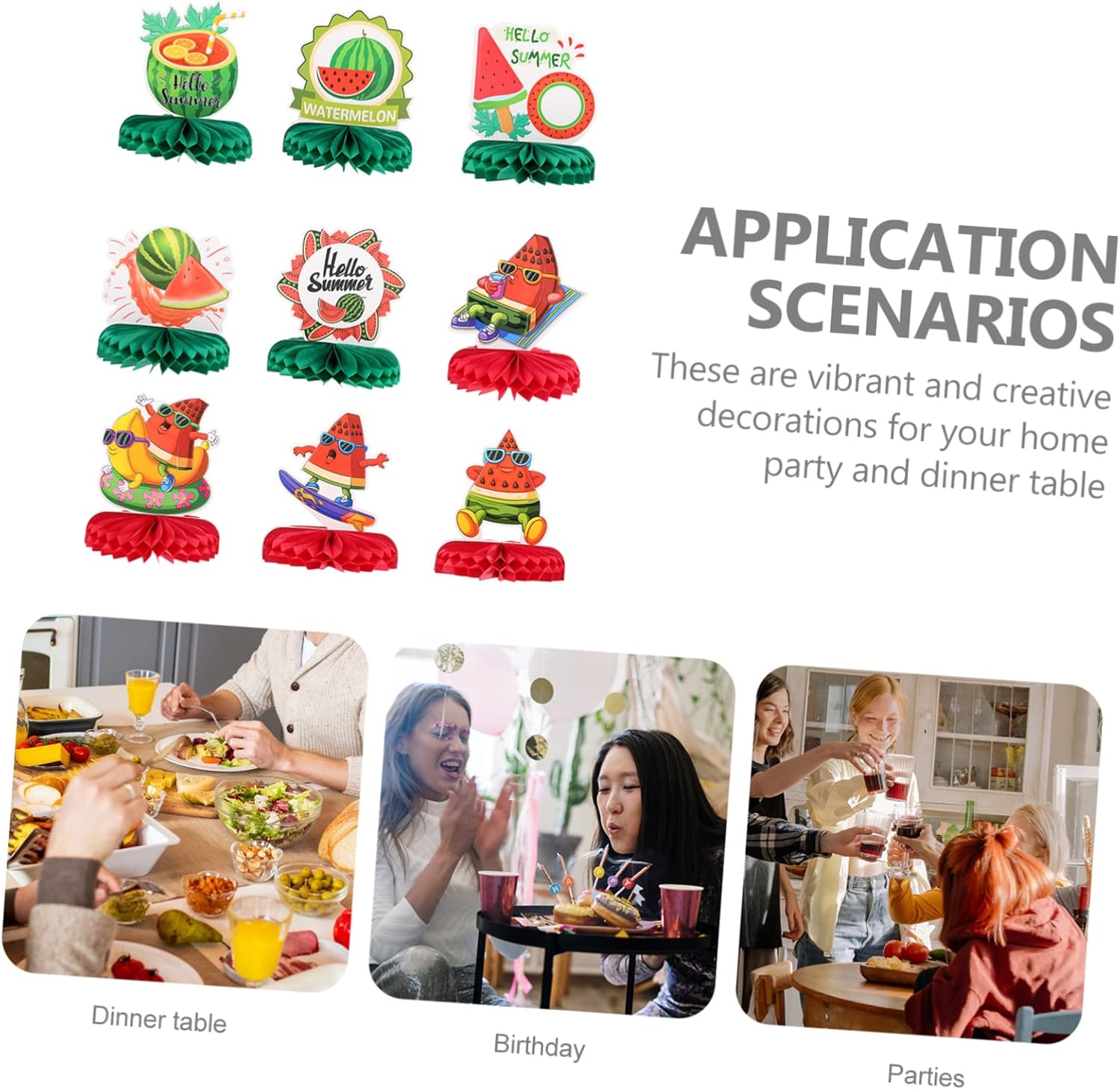 Decorazioni estive a nido d'ape: puoi usarle anche per scattare foto e lasciare momenti indimenticabili, carta per feste a nido d'ape Decorazioni per tovaglie: questo set di decorazioni per feste a nido d'ape di anguria è progettato in vari modelli, che soddisfano i tuoi gusti per la festa, decorazioni a nido d'ape Tema estivo: aggiungi decorazioni al tuo spazio desktop, rendendo la tua tavola più vivace e aggiungendo appetito, ornamento decorativo a nido d'ape Decorazione per feste estive: questa adorabile combinazione può facilmente attirare l'attenzione delle persone, soddisfare le tue esigenze di decorazione, centrotavola da scrivania Decorazioni per feste estive: queste decorazioni possono essere utilizzate per feste a tema estivo, decorazioni per la casa, decorazioni per centri commerciali e così via, decorazioni da tavolo a nido d'ape