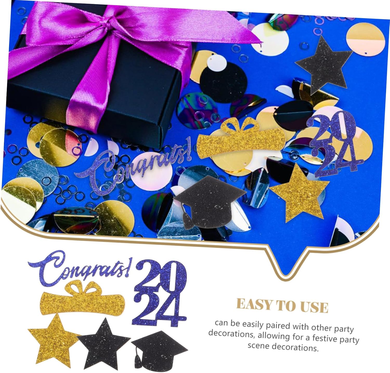 Decorazioni per feste di laurea: questi articoli possono essere distribuiti su decorazioni per la tavola o tovaglie, bicchieri, set fotografico, bacheca, veranda o decorazioni per la tavola delle feste. Scatter per laurea: questi coriandoli scintillanti per la laurea attirano davvero l'attenzione e possono essere utilizzati anche come riempitivi per palloncini, scatole, buste e spargitori per il tavolo della laurea. Decorazioni di laurea: usali sul tavolo della torta, oggetti di scena per foto o decora il tavolo della festa di laurea e accessori per feste di laurea Decorazione per feste di laurea: abbinata al tema della laurea, una per decorare feste di laurea e decorazioni per feste di laurea spargi parti per la decorazione: contiene abbastanza coriandoli, che possono soddisfare perfettamente le tue esigenze pratiche di decorazione per feste di laurea, spargimenti di laurea