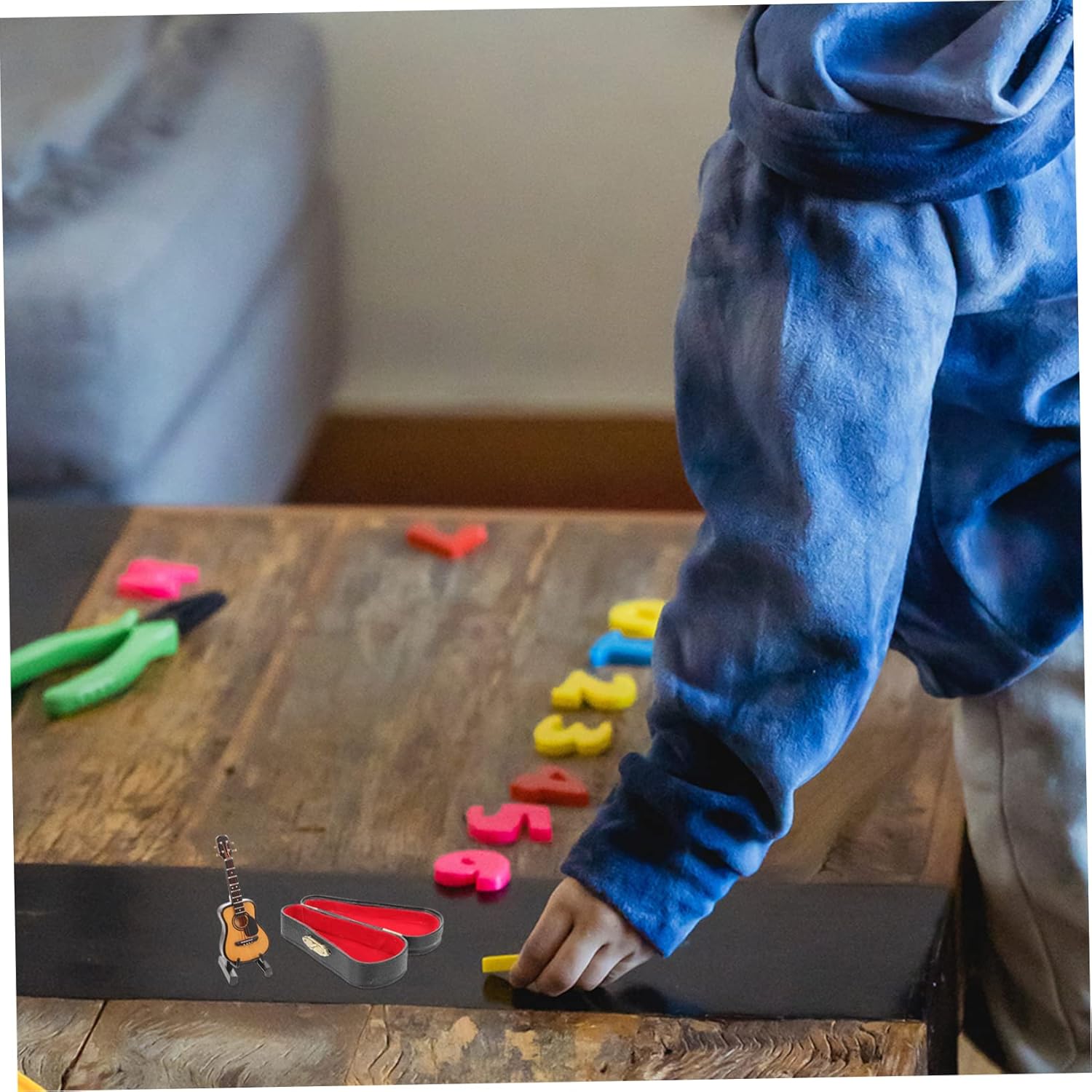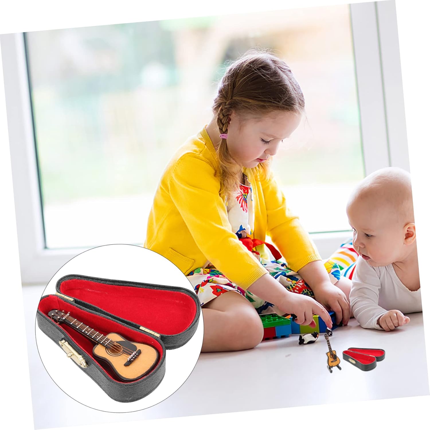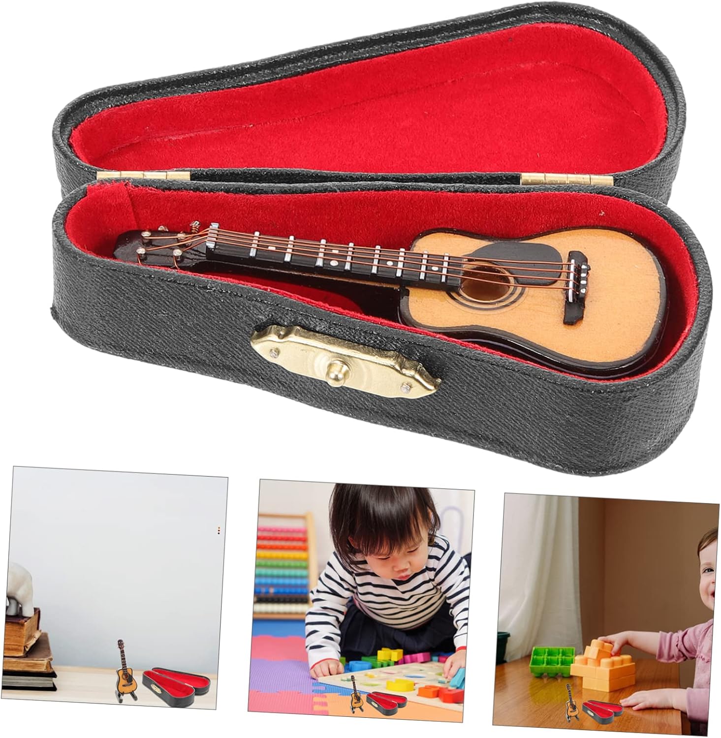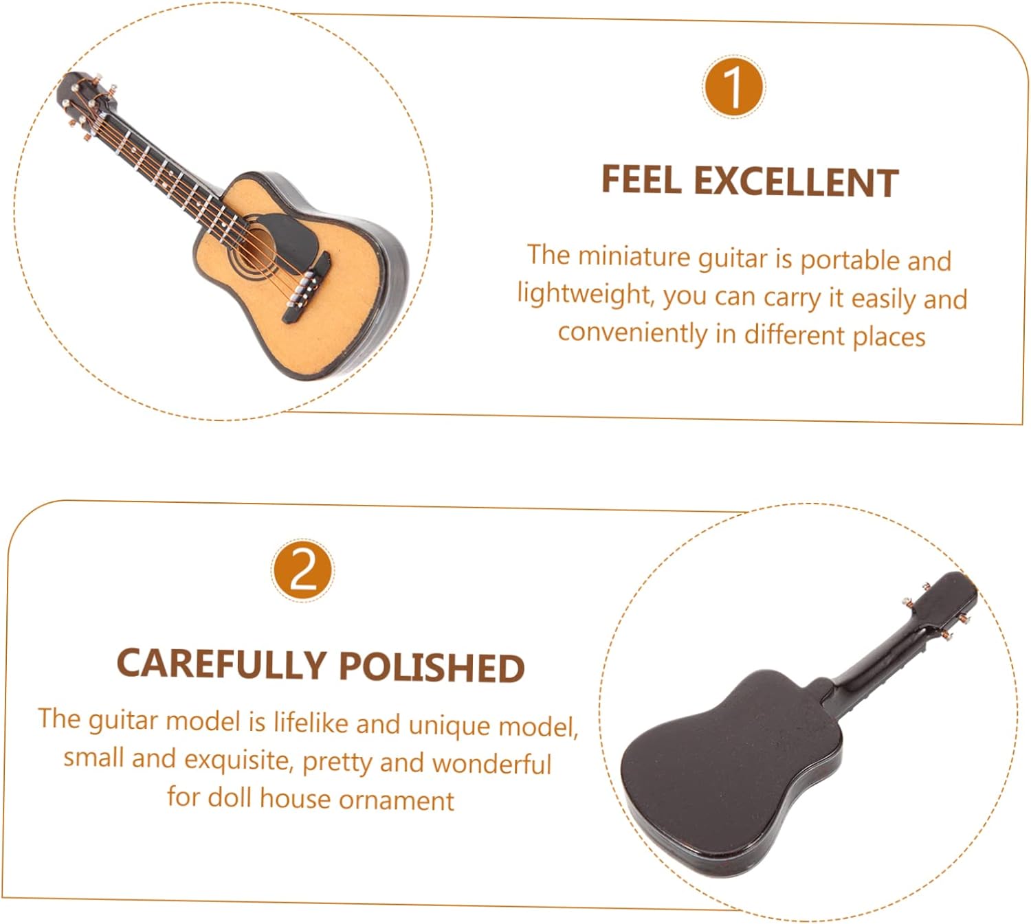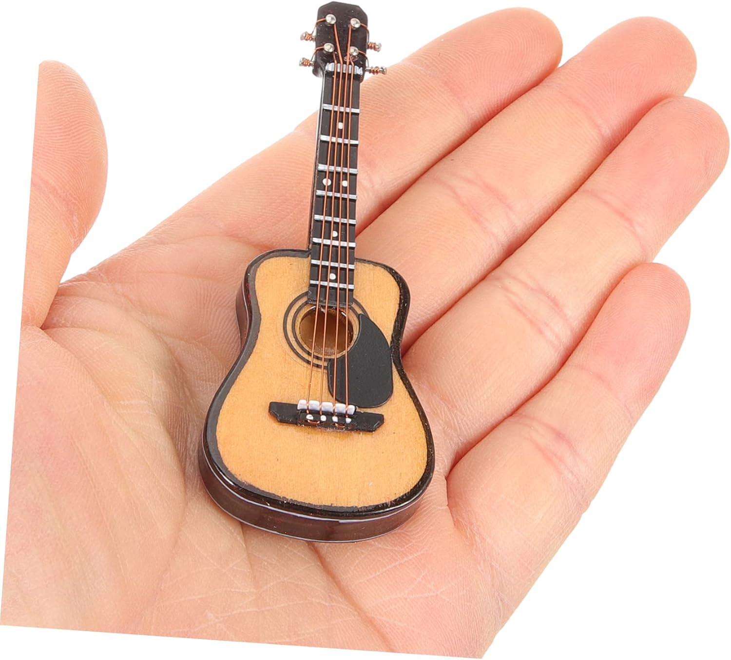Mini di chitarra creativa: questo di chitarra con supporto può sostenere la chitarra in modo stabile per l'uso in esposizione, chitarre giocattolo in miniatura Mini chitarre delle dimensioni di una bambola: il design adorabile della chitarra la rende più attraente e aggiungerà un'atmosfera piacevole al tuo ornamento da scrivania, chitarra per Casa delle bambole in miniatura con chitarra: l'aspetto squisito e speciale può portare bellezza alla tua casa, un buon effetto decorativo, chitarra in miniatura Chitarre in miniatura: la chitarra in legno è compatta, leggera, facile e comoda da trasportare e riporre quando non in uso, senza alcuno sforzo Mini chitarra per : puoi inviarla come ai tuoi amici e familiari e sicuramente la adoreranno, mini chitarra giocattolo in miniatura