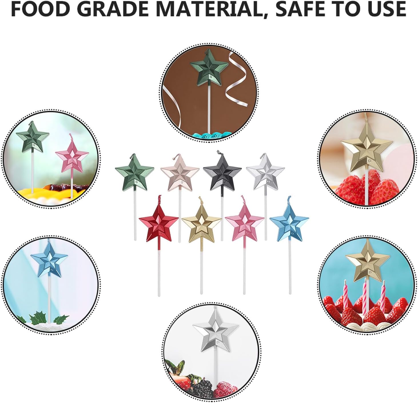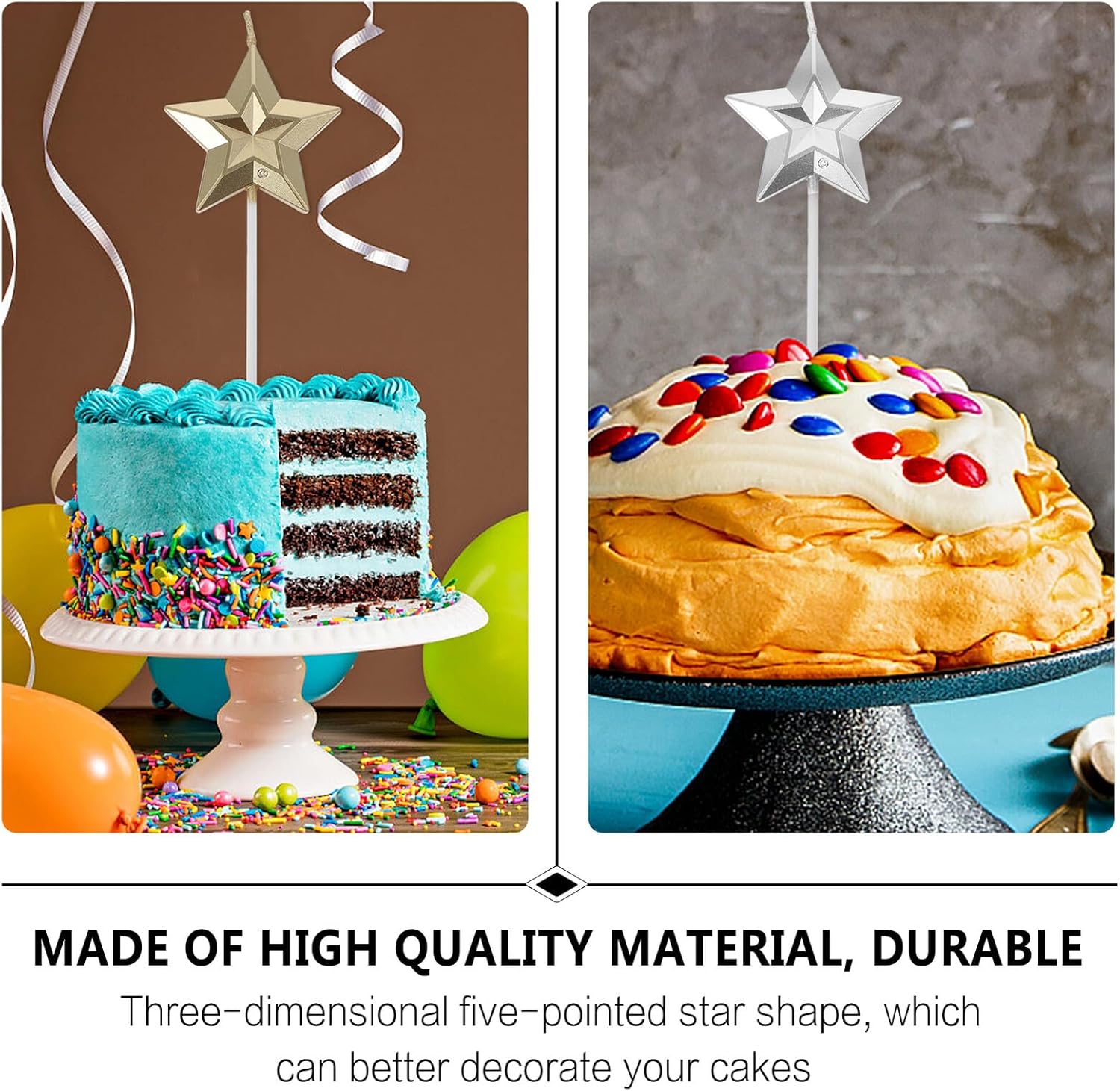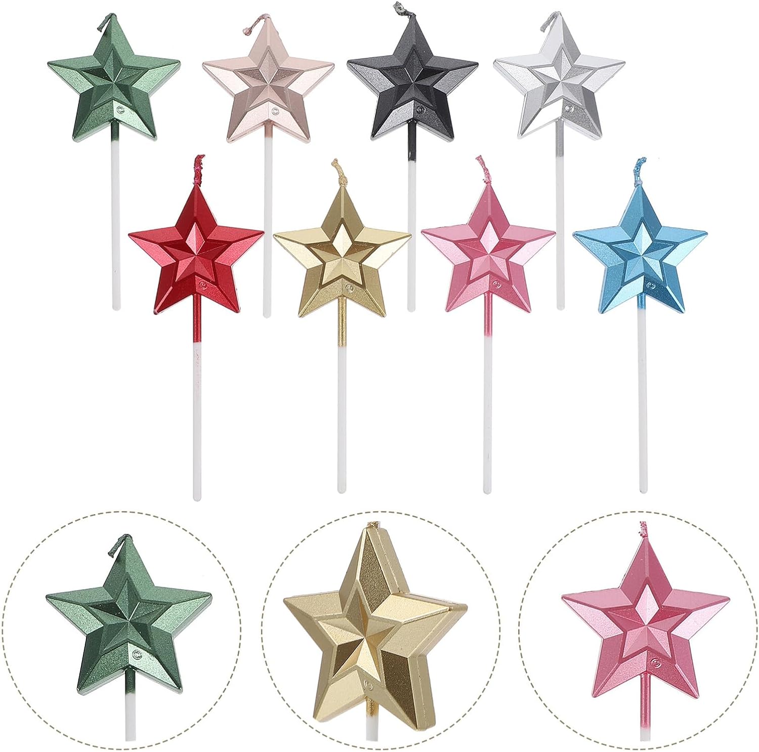 Candeline decorative per torta: facili da inserire nelle torte e tenerle saldamente, qualsiasi torta, candele 3D a forma di stella Accessori per torte di compleanno: adatti per decorazioni domestiche, feste all'aperto, ristoranti, matrimoni, San Valentino, ecc., decorazioni per torte Decorazioni creative per torte: materiali ecocompatibili, bruciano senza, possono essere utilizzati con, bellissime candeline per torte Candele per torte a forma di stella: usale per creare un'atmosfera calda e luminosa per feste di compleanno e accessori per feste di compleanno per creare decorazioni per feste di compleanno: forma a stella 3D, rendi le tue torte più belle, accessori per torte