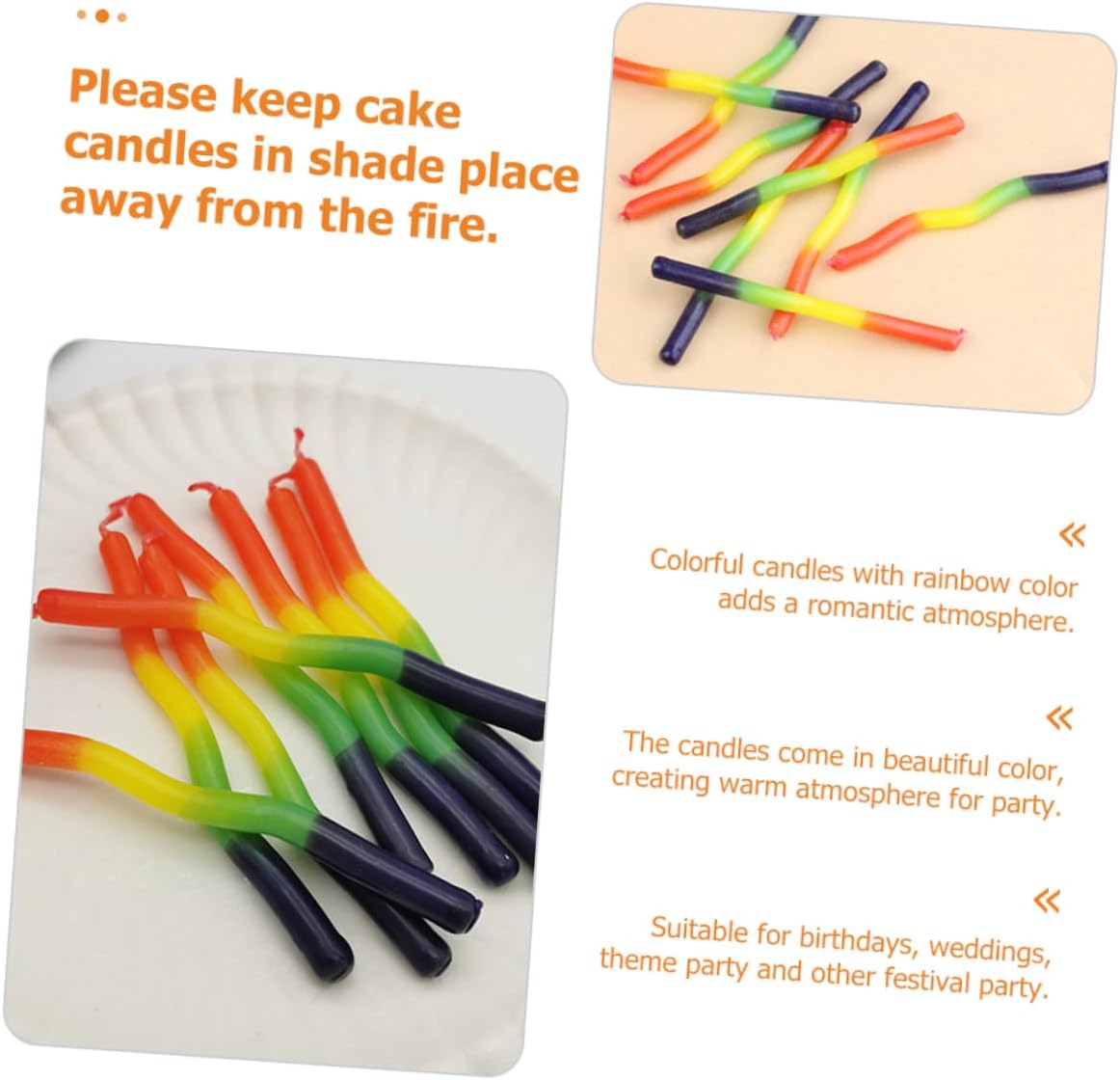 Per feste: le candele sono disponibili in bellissimi colori, creando un'atmosfera calda per la festa, candele colorate Di compleanno: prega di tenere le candeline della torta in un luogo ombreggiato dal e non permettere bambino di toccarle quando la è accesa, decorazione Candele a spirale: queste candeline a spirale per torta adattano a molte occasioni con una torta come feste di compleanno, matrimoni, eventi aziendali, celebrazioni e proposte, ecc., decorazioni per candele di compleanno Da tavolo da pranzo: adatta per compleanni, matrimoni, feste a tema e altre feste, candele arcobaleno Bomboniere per feste di compleanno: il design a forma di spirale lo rende più bello e attraente per le persone, decorazione con candele