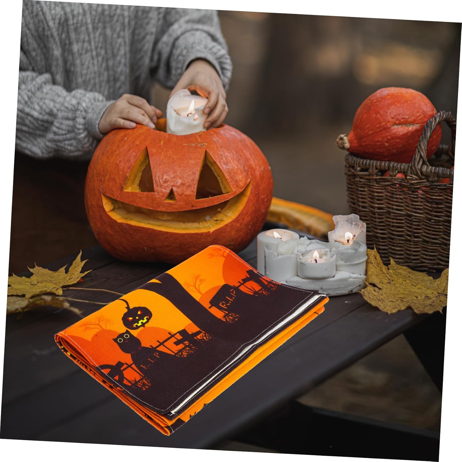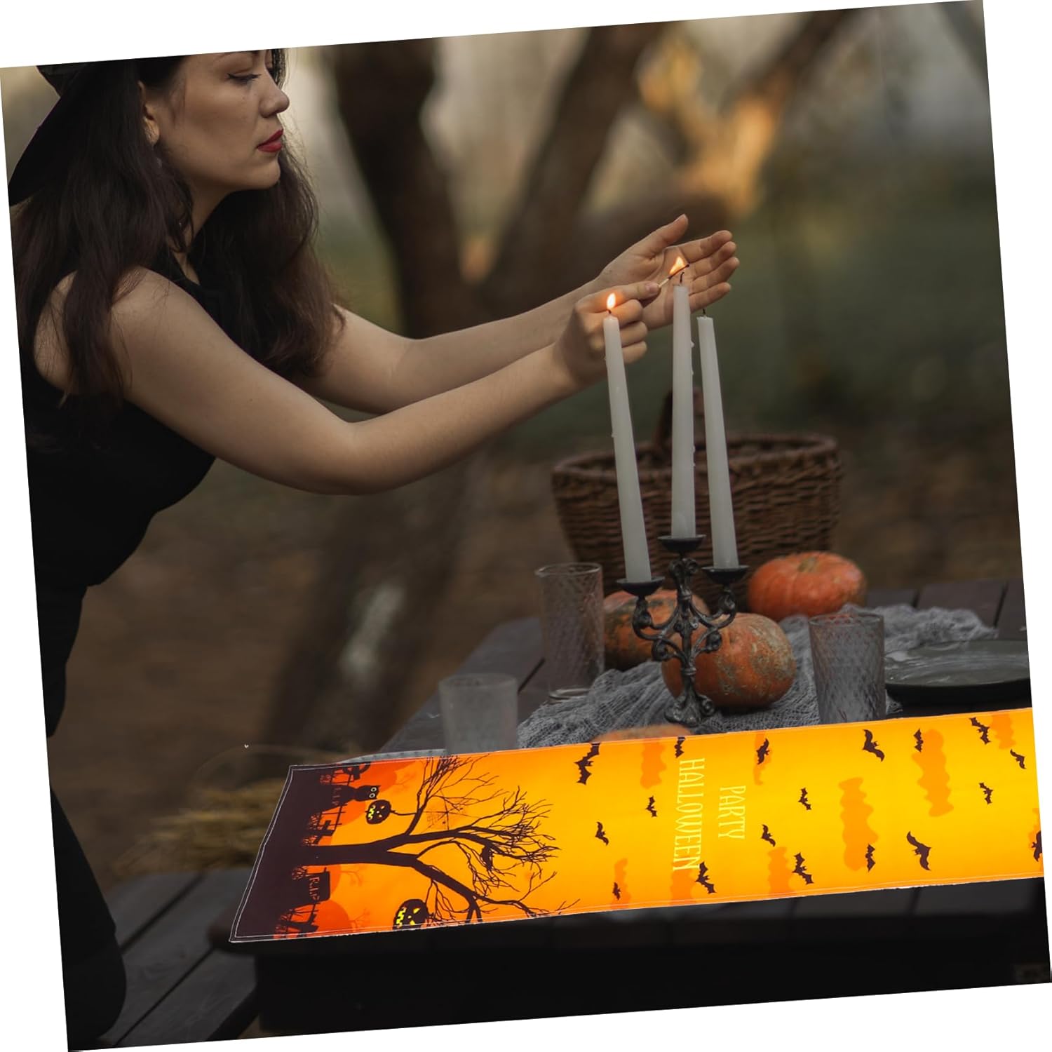 Decorazione di Halloween - tinta unita, processo di stampa, il runner da tavolo non sbiadisce facilmente, decorativo e caldo, decorazione della tavola di Halloween Runner da tavolo in lino di Halloween - ottimo per Halloween, con motivi Halloween per creare un'atmosfera festosa, tovaglia Runner da tavolo di Halloween - lascia un'impressione chic e creativa sui tuoi ospiti alla festa di Halloween, decorazione della tavola di lino Tovaglia di lino - motivo a tema Halloween, pieno di elementi di Halloween, crea un'atmosfera festosa, runner da tavolo decorativo Regali per feste di Halloween - riutilizzabile, facile da pulire e resistente alle macchie, si adatta alla maggior parte delle scrivanie, tovaglietta decorativa