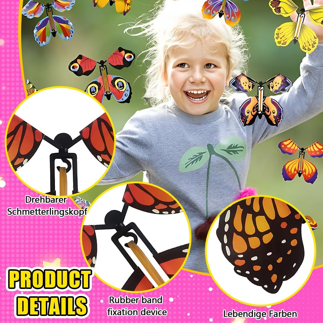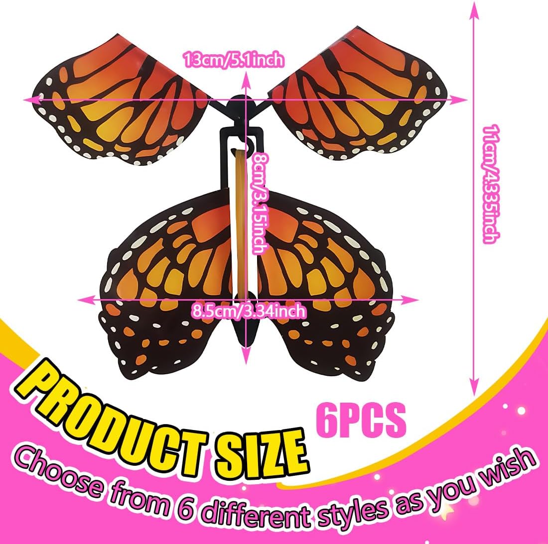 PACCHETTO SUPER CONVENIENTE: riceverai 6 adorabili farfalle che volano magicamente in diversi stili e colori vivaci che imitano perfettamente l'eleganza delle vere farfalle. Materiali di alta qualità: le ali della farfalla sono realizzate in cartone ecologico, il corpo della farfalla è in plastica di alta qualità e il centro della farfalla è un elastico. Semplice e facile da giocare: tieni la coda della farfalla con una mano e gira delicatamente la testa della farfalla 30-50 volte con l'altra mano. Lascia andare le mani e osserva le farfalle volare in direzioni diverse. Design carino: questa farfalla magica sembra bellissima e ha colori vivaci. Le ali di farfalla sono tutte disponibili in diversi colori e modelli, il che le rende molto attraenti, divertenti e carine. REGALO A SORPRESA PERFETTO: puoi sostituire il cinturino in rete e inserirlo in un libro o in un biglietto. Decorazione per biglietti di auguri, perfetta come regalo di compleanno per fidanzate, bambini e famiglia.