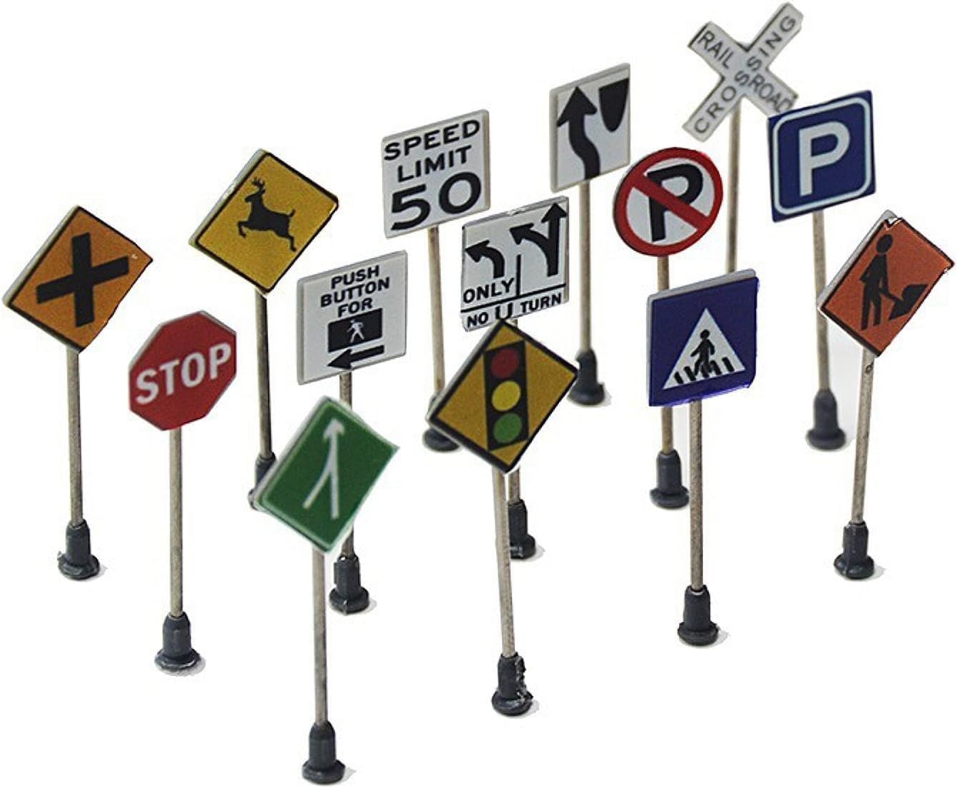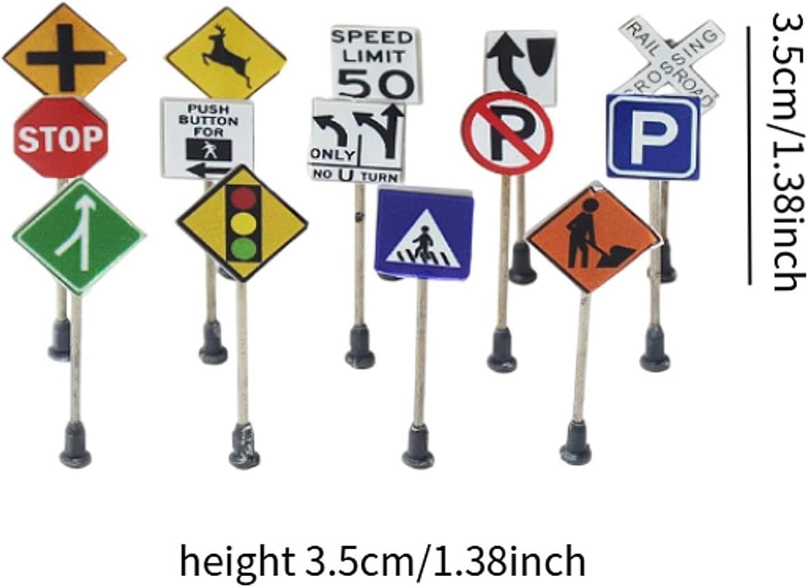 Segnali stradali in miniatura realistici: questo set include 14 modelli di segnali stradali, non solo per la scala 1:87, ma adatti anche per la scala 1:150/1:100 Fine Crafted: targhette identificative per modelli realizzate a mano, effetto di simulazione elevato, fatte a mano, ideali per valorizzare i tuoi paesaggi in miniatura o le configurazioni di modellini di treni. Affidabile: segnali stradali sono realizzati in materiale PP di alta qualità, garantendo longevità e stabilità nelle scene di visualizzazione. Aggiunta scenica versatile: modelli di semafori giocattolo sono ideali per creare scenari stradali diversi e realistici nella tua configurazione di scena in miniatura Ampia applicazione: modelli di segnali stradali simulati in scala 1:87 HO per decorazioni di autostrade e scene di strada, modelli di tavoli da sabbia, modelli di treni, modelli di giocattoli, decorazioni di micro paesaggi