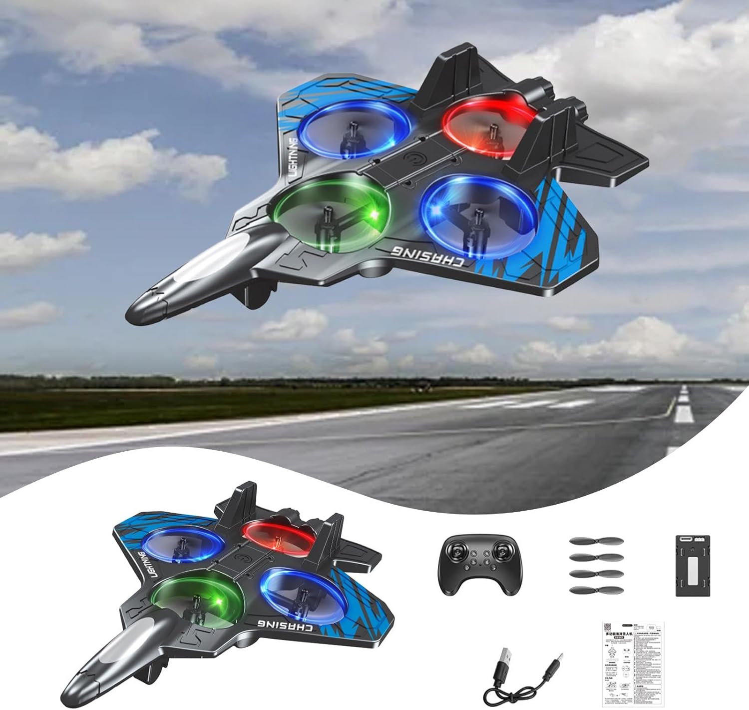【Costruzione robusta】: realizzato in schiuma EVA leggera, questo acrobatico telecomandato vanta una buona resistenza, consentendogli di resistere a cadute su superfici dure senza danneggiarsi facilmente 【Acrobazie a 360° stazionario intelligente】Esegui emozionanti capovolte a 360°, circolari immersive e decollo/atterraggio con un solo tocco. Il mantenimento intelligente dell'altitudine mantiene l'aereo stabile a mezz'aria, mentre 3 modalità di velocità si adattano al tuo livello di abilità. 【Potente design Turbofan】 migliorate aumentano la spinta del 20% e il a 4 motori offre una forte portanza per manovre dinamiche come rollio, laterali ed emergenze 【Volo notturno illuminato】: dotato di luci LED colorate, questo RC diventa spettacolo accattivante durante notturno, migliorando la visibilità e l'eccitazione 【Ottimo regalo per tutte le età】: questo modello di aeroplano volante è adatto sia ai bambini che agli adulti appassionati di aviazione, rendendolo una scelta regalo ideale per ogni occasione